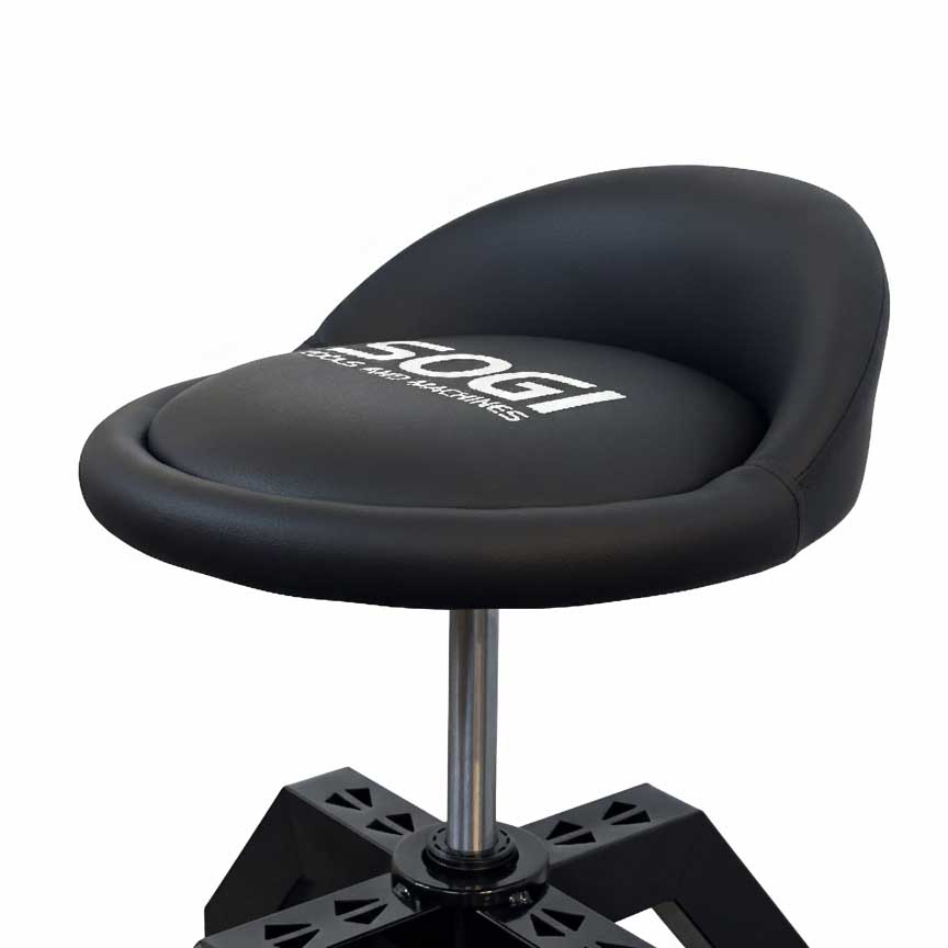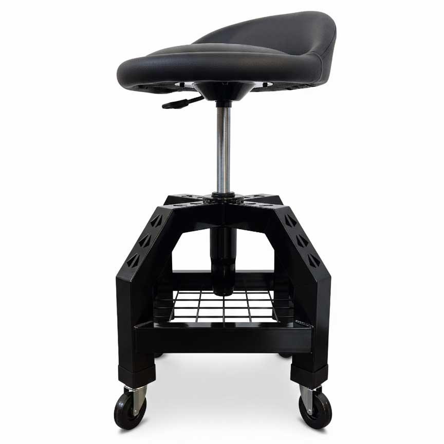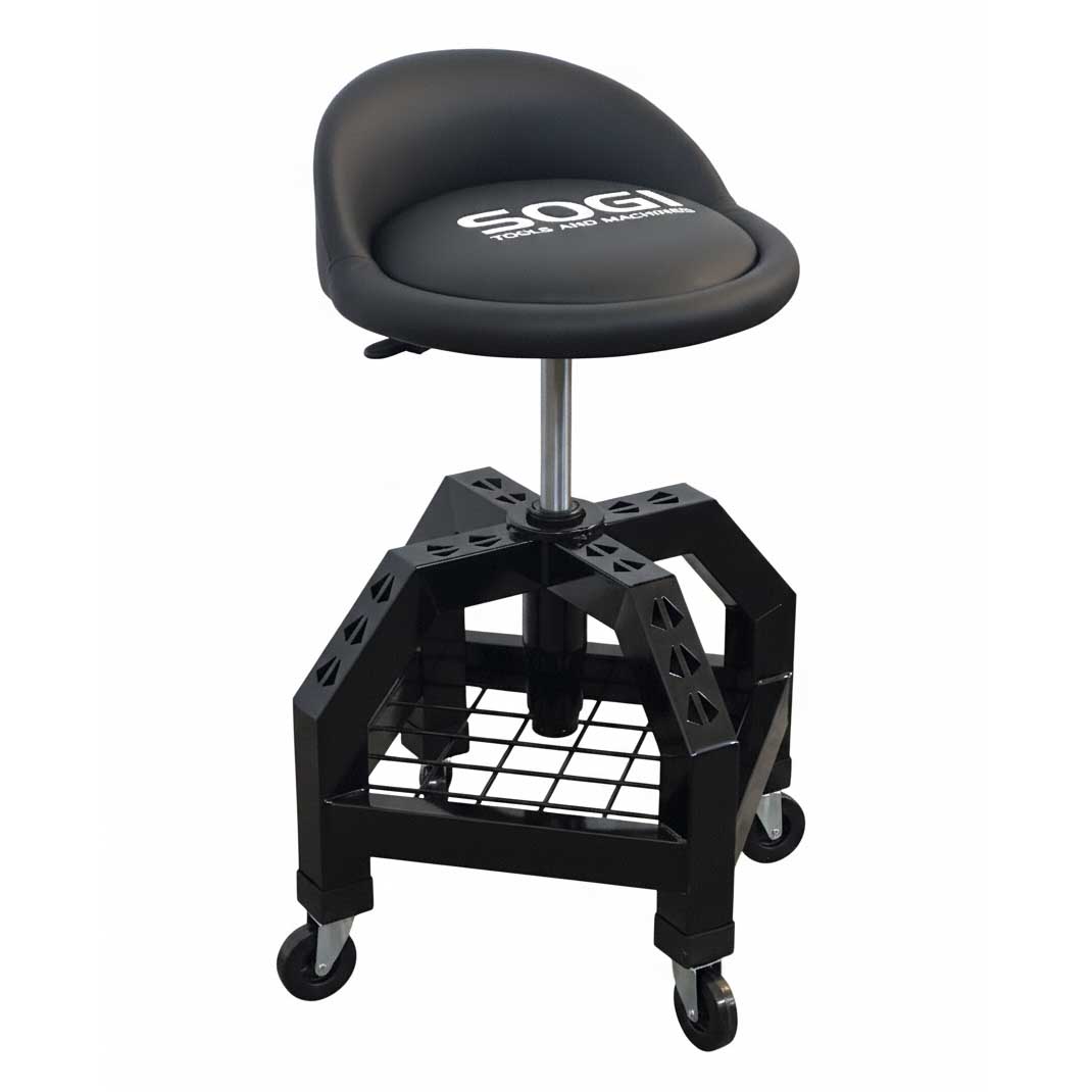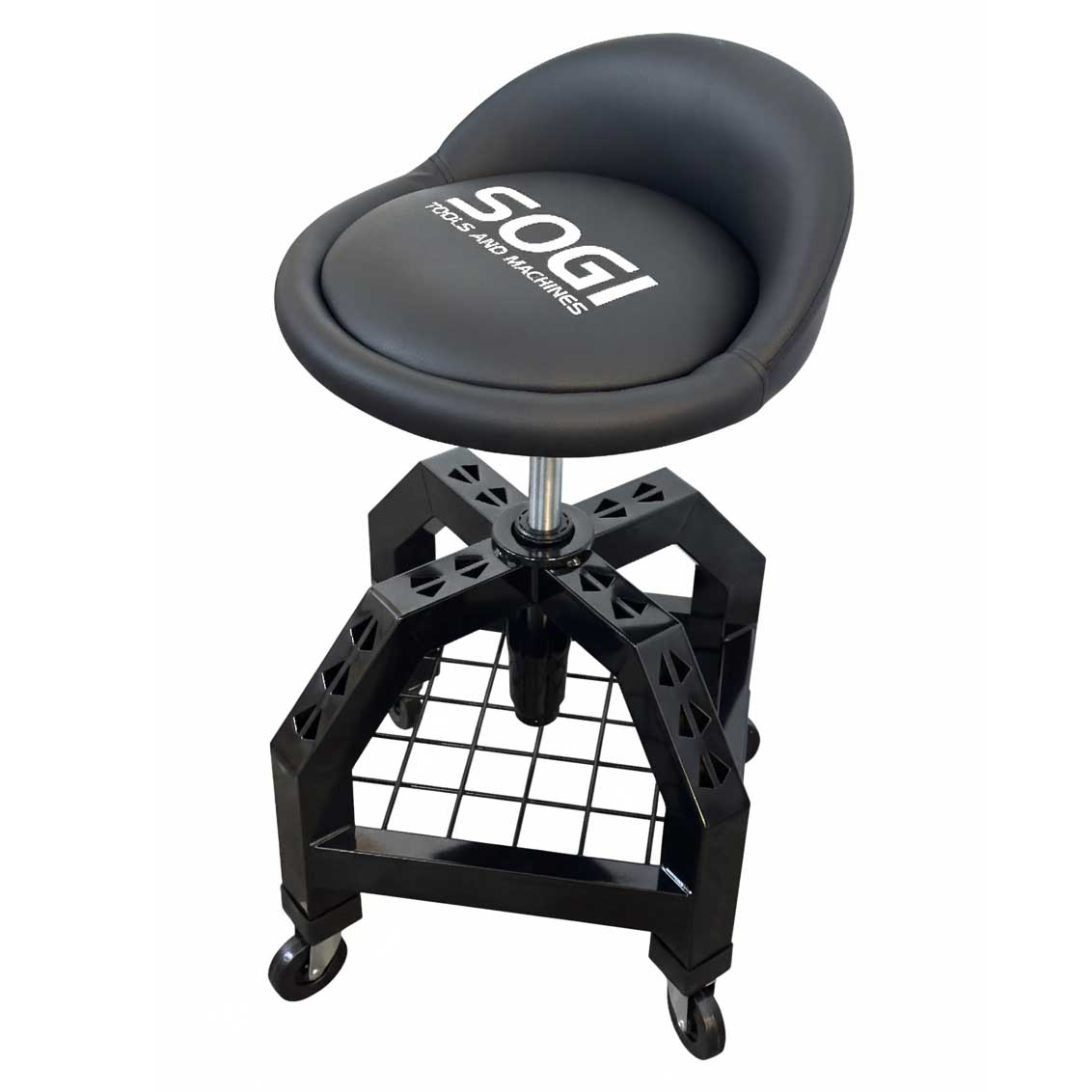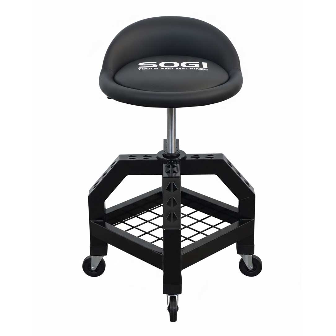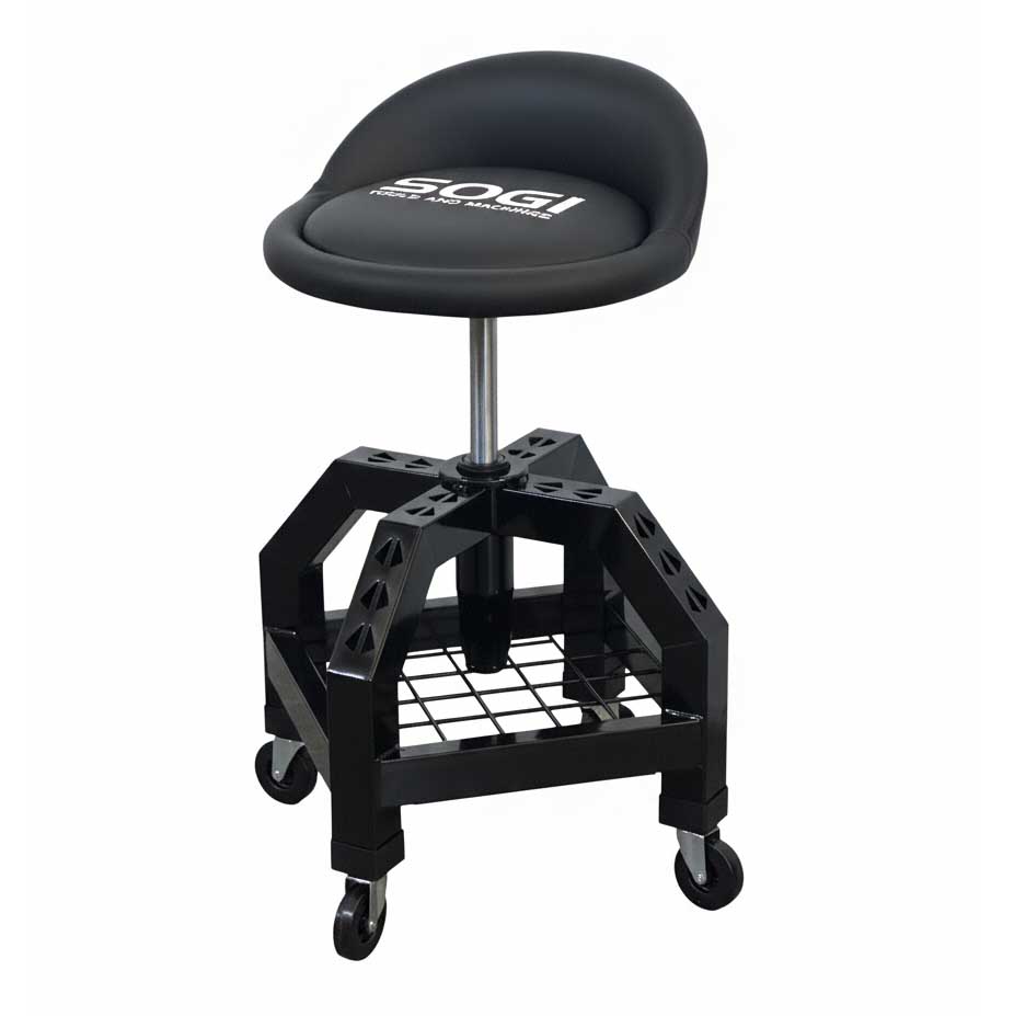 Sgabello con ruote da officina SOGI X4-19 - portata 150 kg - seduta regolabile in altezza - griglia forata - nero