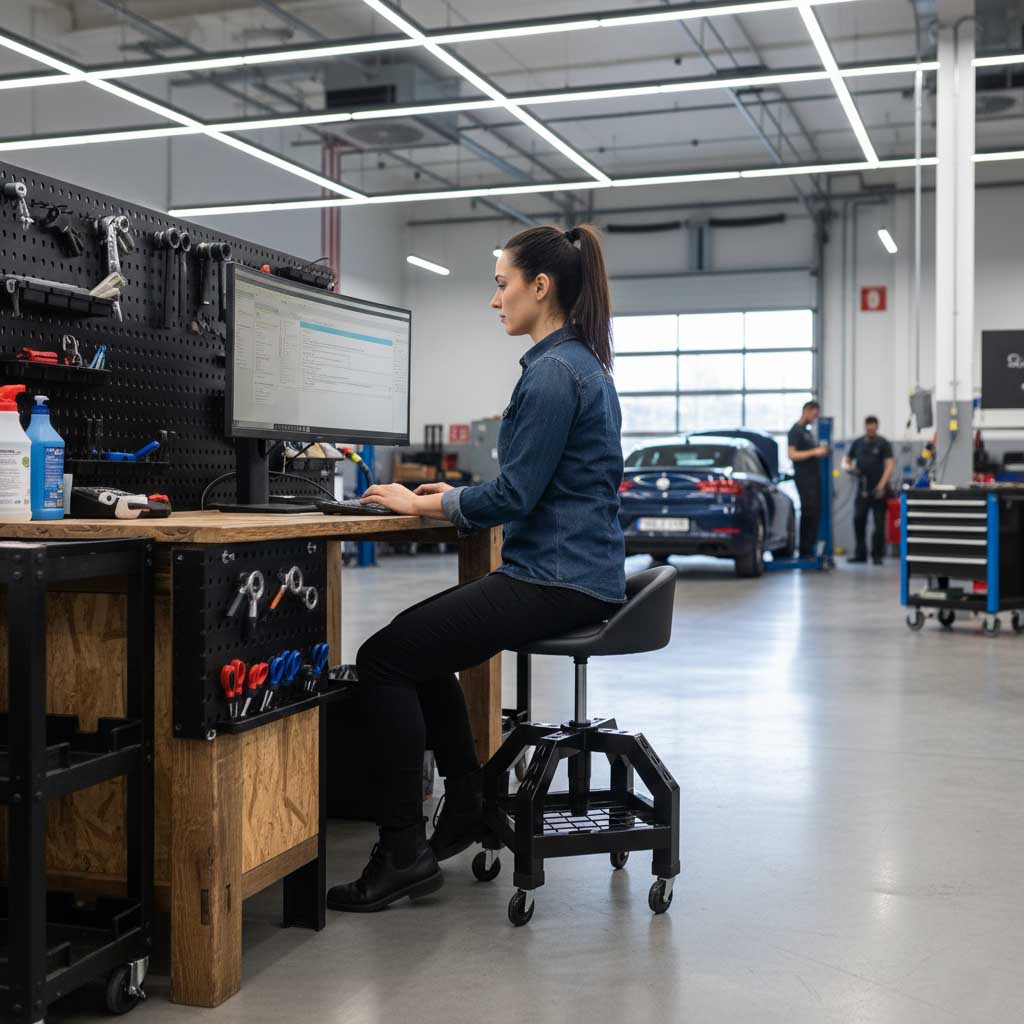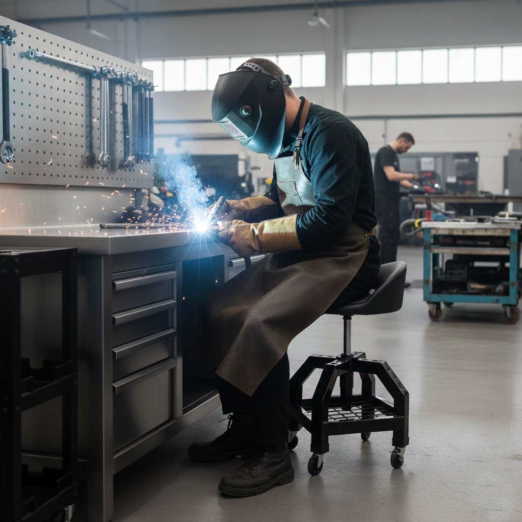 Lo sgabello industriale SOGI X4-19 è progettato per garantire mobilità, ergonomia e resistenza anche nelle condizioni di lavoro più impegnative. Ideale per officine meccaniche e automotive, garage, laboratori tecnici, reparti produttivi, carrozzerie, banchi da lavoro professionali e postazioni di assemblaggio, offre una combinazione perfetta tra robustezza strutturale e comfort operativo.