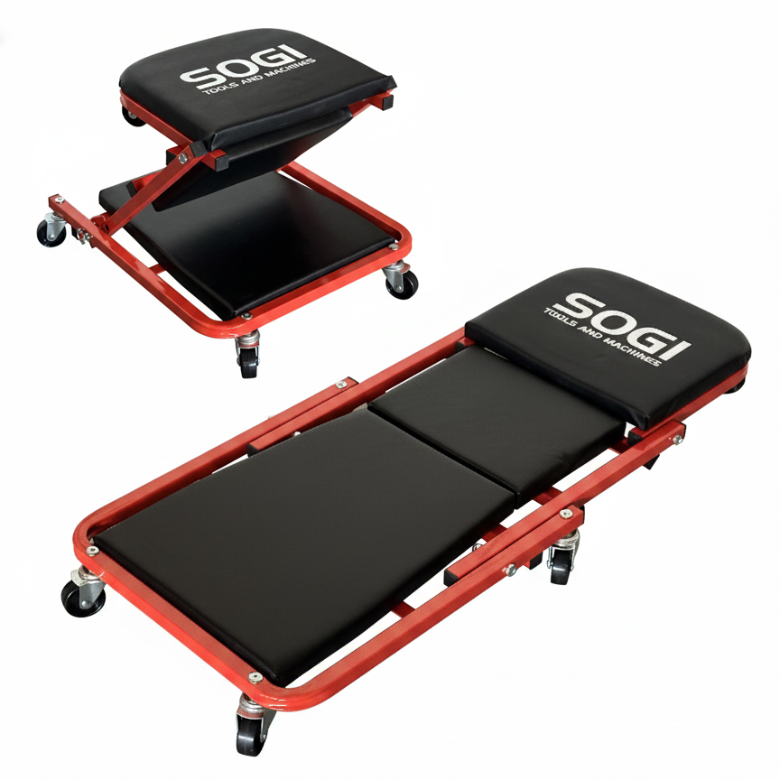 Il carrello sotto auto SOGI X4-22 è la soluzione ideale per chi desidera uno strumento pratico, robusto e confortevole per operare in officina o in garage. Grazie al suo innovativo design ed alla sua doppia funzione, questo modello si trasforma in pochi istanti da lettino sotto vettura a sgabello da lavoro, garantendo versatilità e comodità in ogni situazione.