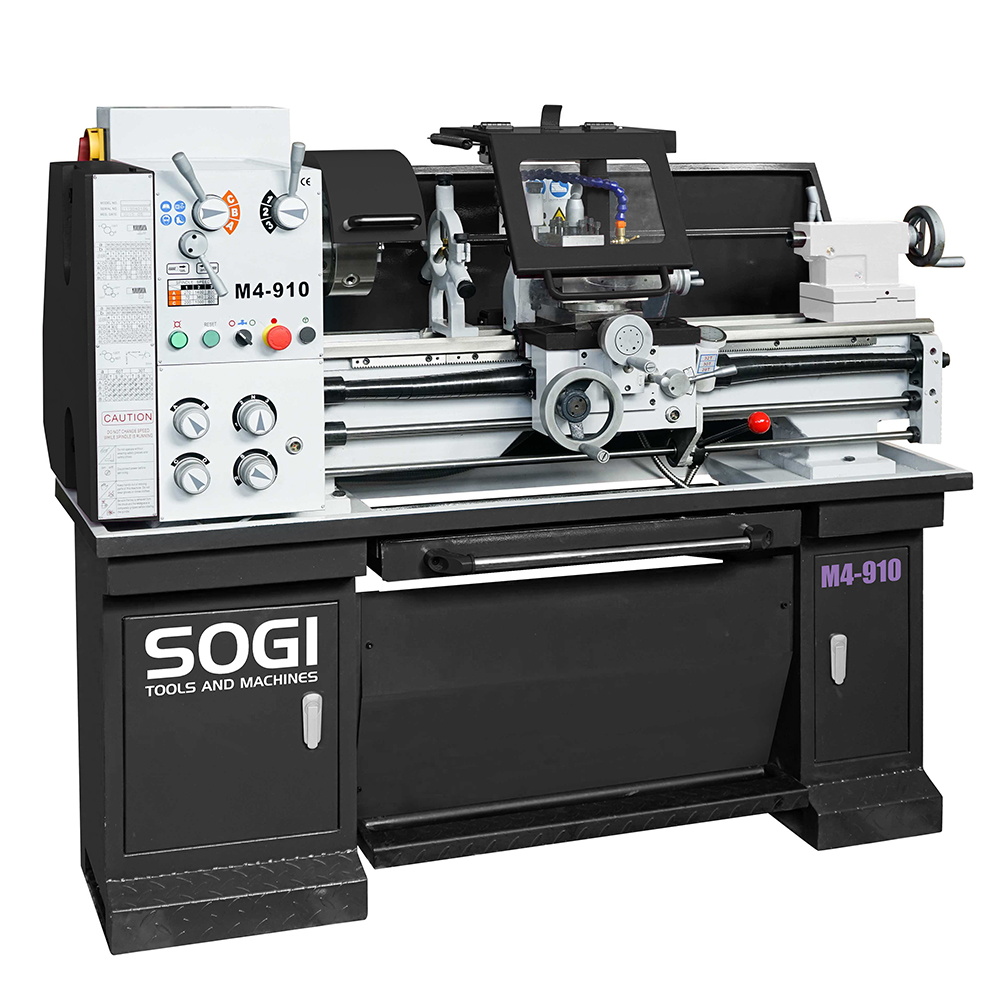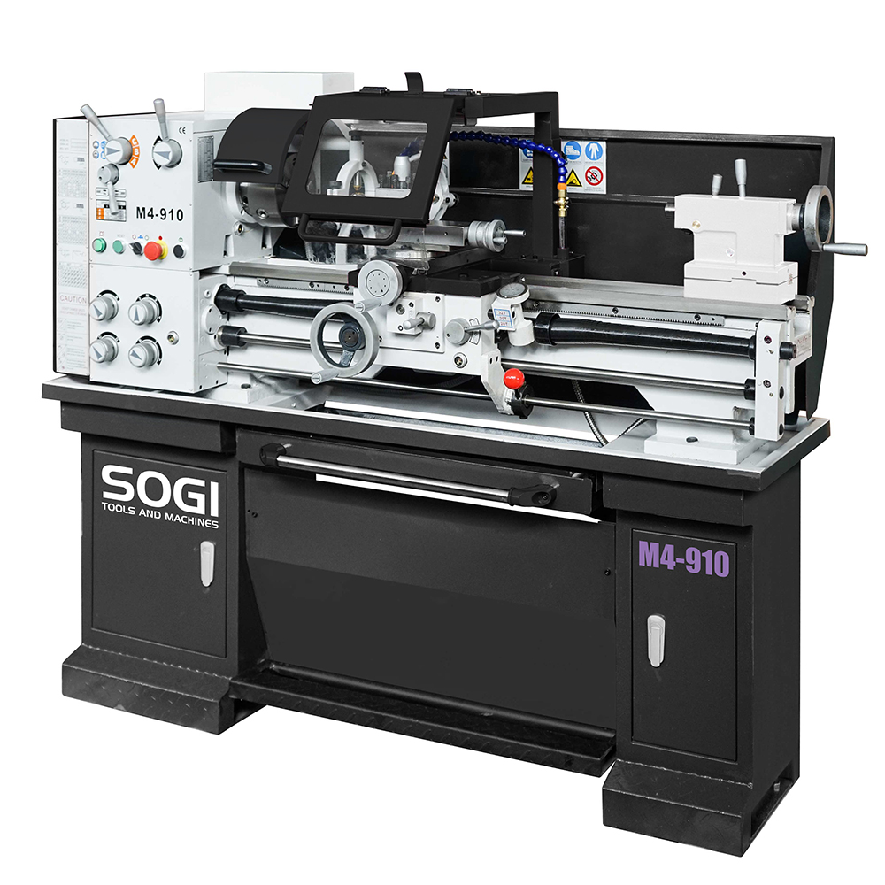 Il tornio parallelo SOGI M4-910 è una macchina professionale pensata per la lavorazione di materiali metallici, leghe derivate e molto altro. Tradizionalità, sicurezza e praticità d'uso sono i tre requisiti essenziali a pieno soddisfatti da una macchina come questa, in grado di effettuare torniture (sia coniche che cilindriche), filettature (sia Metriche [mm] che Whitworth [in]), forature, alesature, profilature ecc.