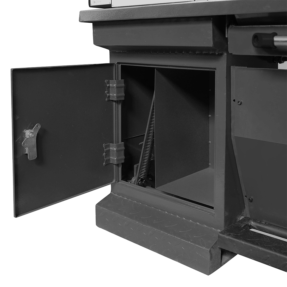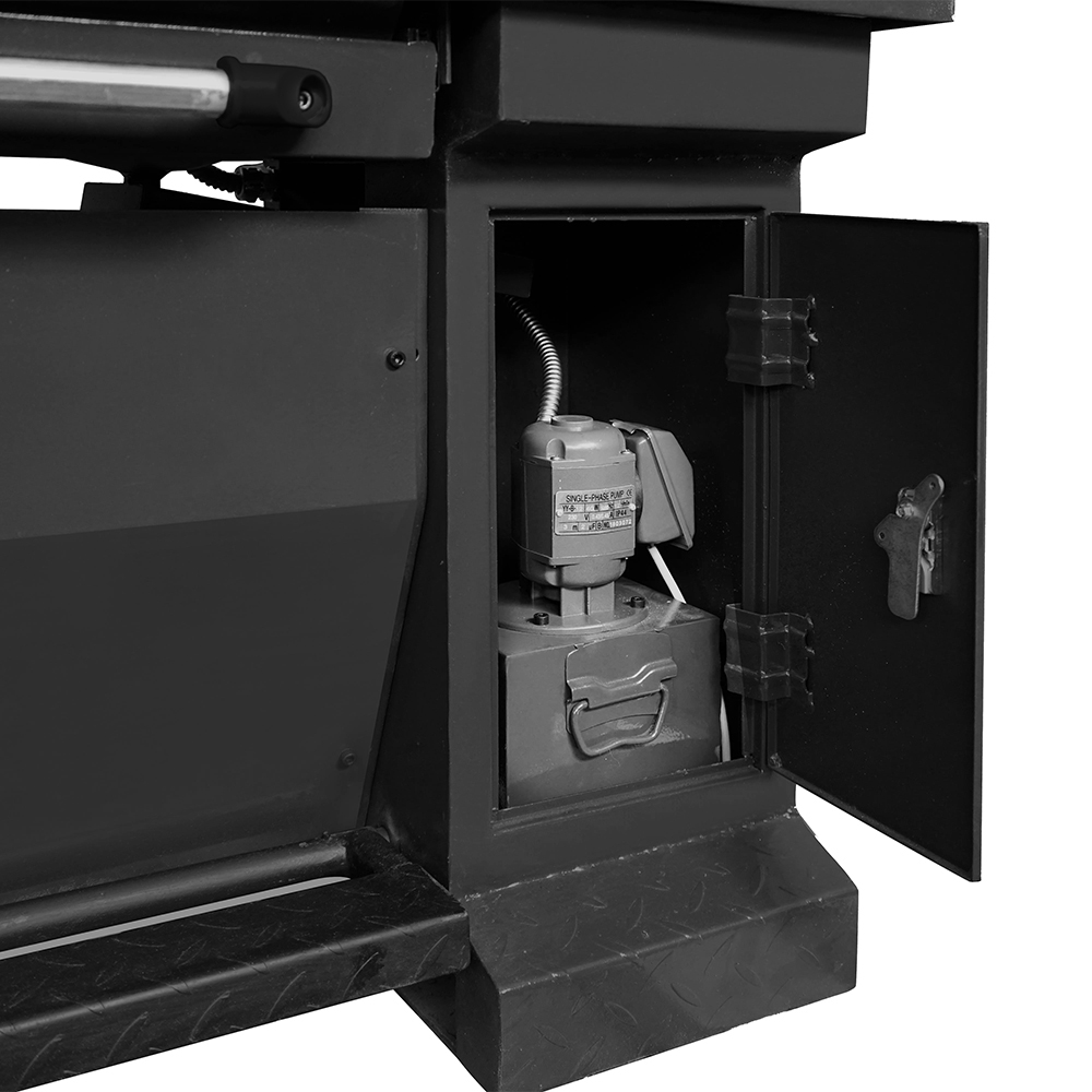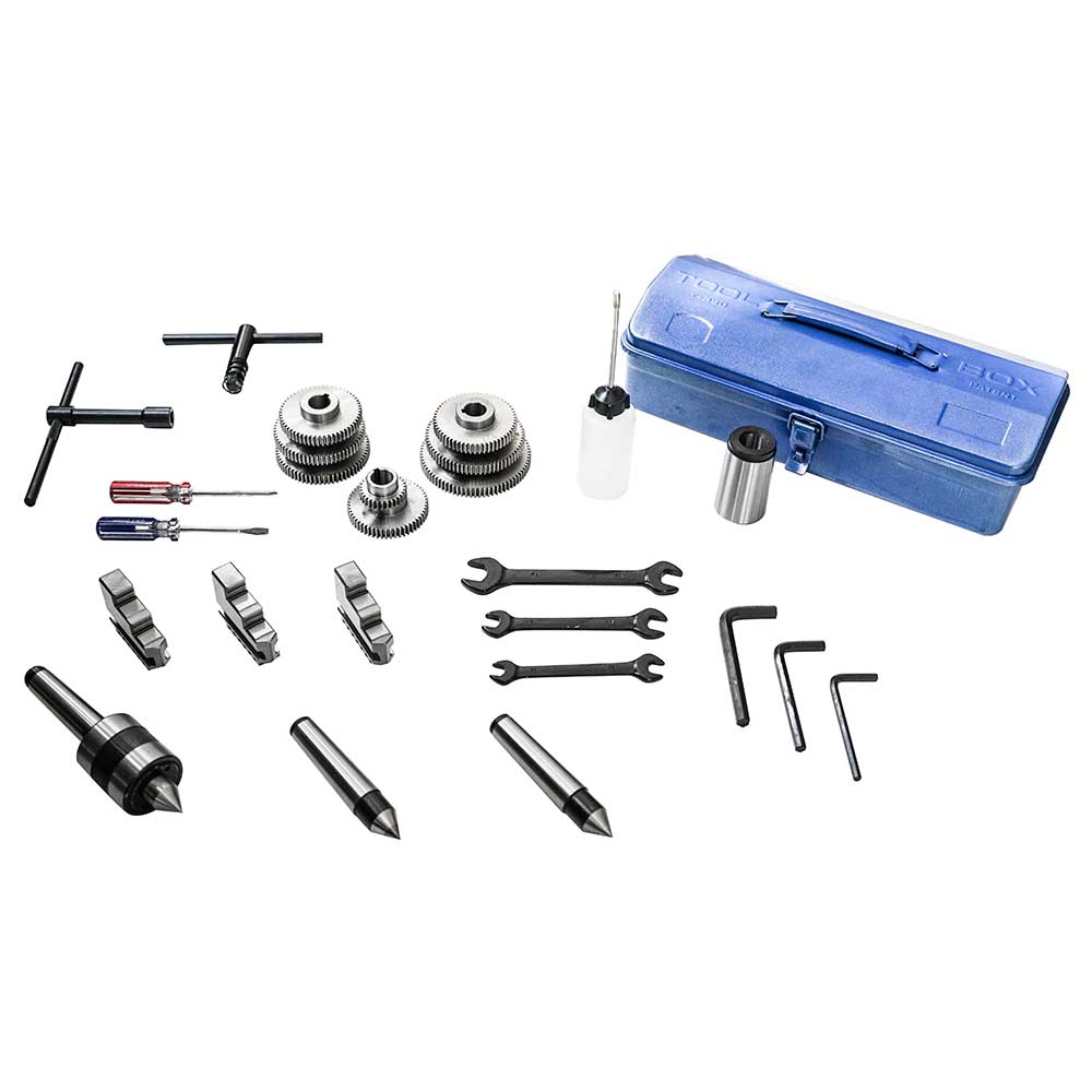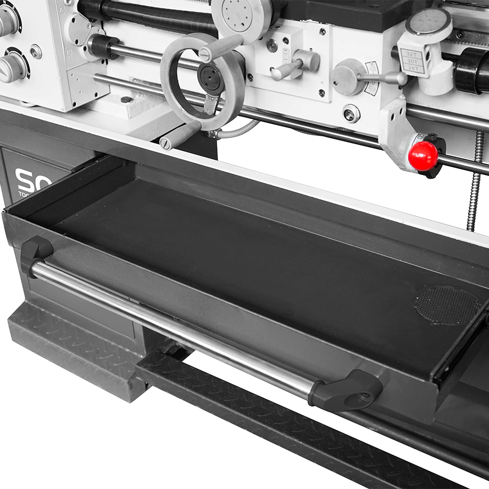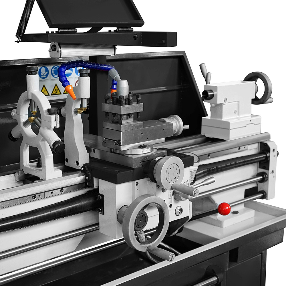 La macchina vanta di serie un impianto di illuminazione LED, un sistema di lubrorefrigerazione ed un impianto di lubrificazione guide centralizzato ad azionamento manuale. Sempre di serie, il tornio per metalli SOGI M4-910 è fornito di basamento di appoggio con vano per riporre utensili ed altro materiale indispensabile per la lavorazione. Presente anche il comparatore di filettature.