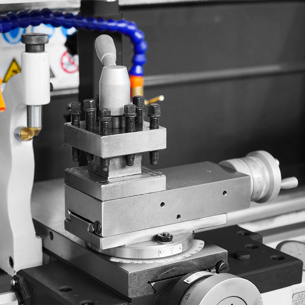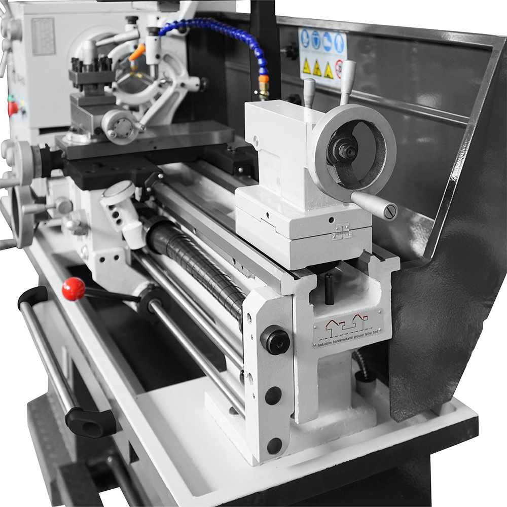 Sul bancale prismatico in ghisa meehanite munito di nervature di rinforzo e tassello estraibile, le guide sono state rettificate e temprate, trattamenti volti ad aumentare durezza e durabilità dell'acciaio nel tempo. Le slitte che scorrono lungo le guide sono realizzate per mezzo di lavorazioni di precisione e sono regolabili tramite appositi lardoni conici. La torretta portautensile ruota di ± 90° e può ospitare utensili di sezione massima 16 mm.