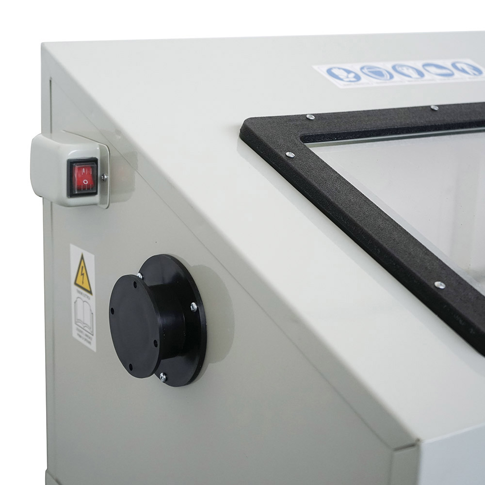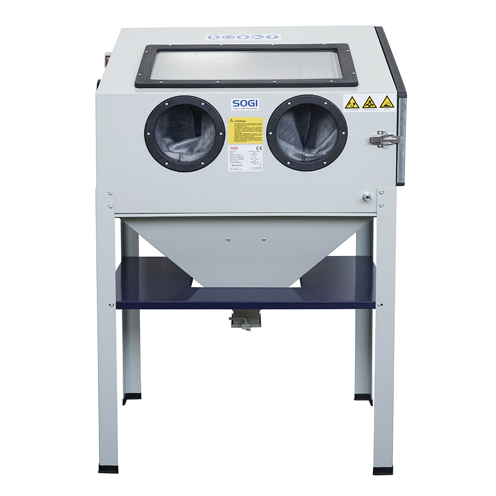 La sabbiatrice SOGI S-85 è una macchina professionale dotata di impianto di illuminazione interna, modello con singola apertura laterale. La macchina è dotata di certificazione a norma CE.