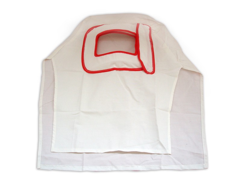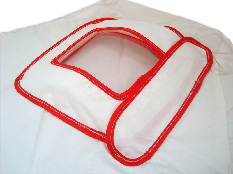 • Tessuto di colore bianco con ribordature in colore rosso facilemente lavabile.