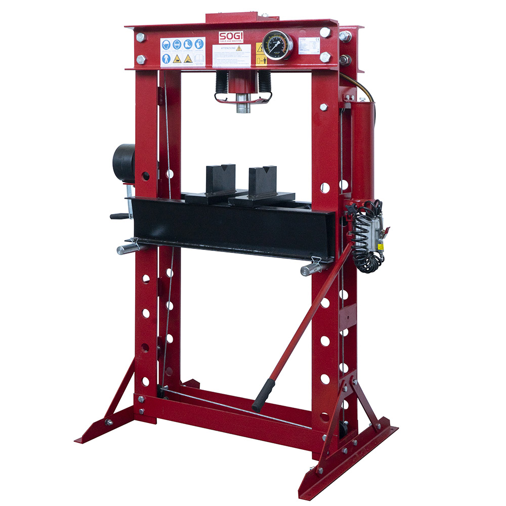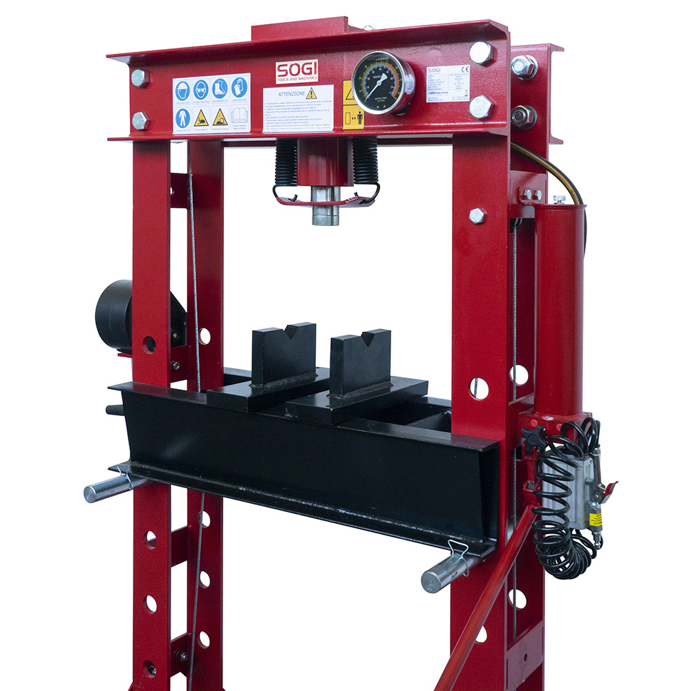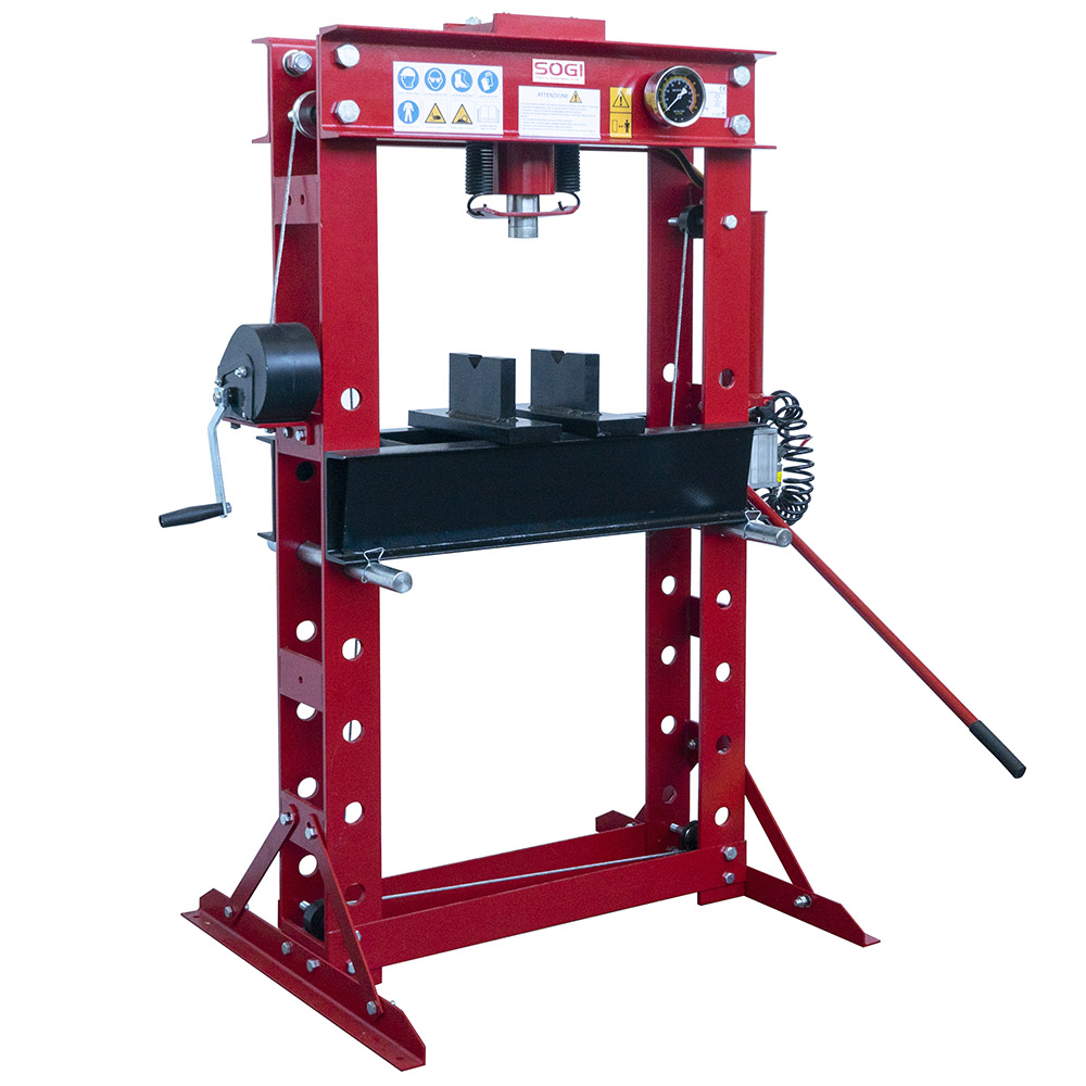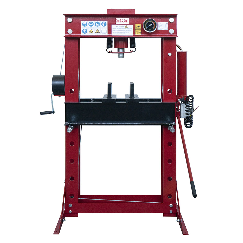 Pressa idraulica manuale e pneumatica SOGI P50-MP da 50 tonnellate per officina