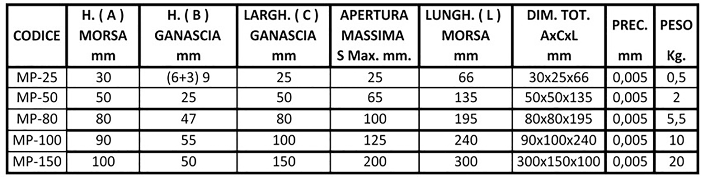NUOVA MORSA DI PRECISIONE IN ACCIAIO TEMPRATO E RETTIFICATO ALTA PRECISIONE