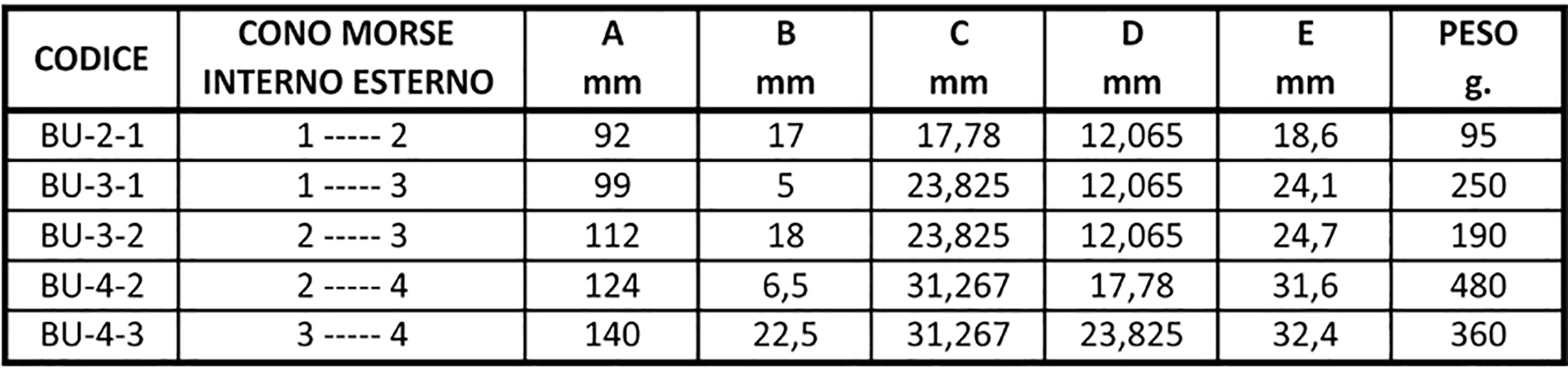 BUSSOLA DI RIDUZIONE DA CONO MORSE 4 A CONO MORSE 2