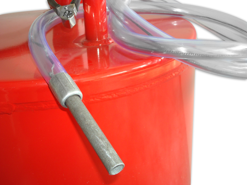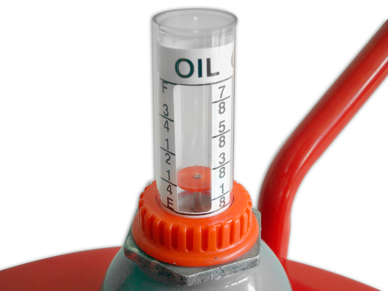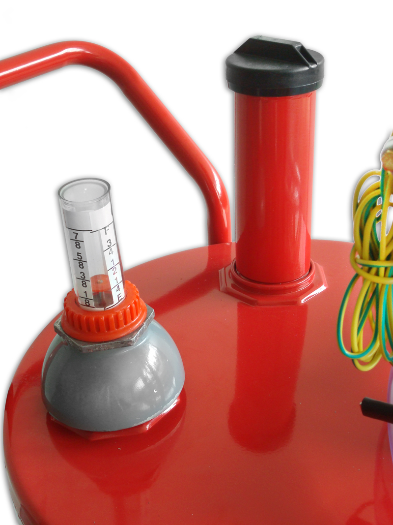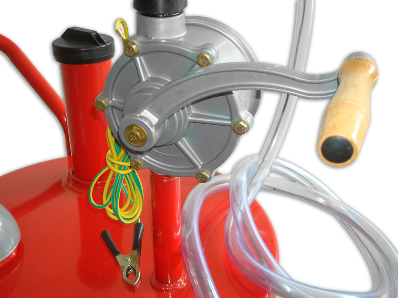 La scala graduata cilindrinca posta alla base superiore dell'aspiratore permette la visualizzazione del livello di olio presente nel serbatoio, il tappo presente sulla superficie di testa per un eventuale versamento manuale dell'olio, insieme è fornito il tubo flessibile in gomma trasparente dotato di estremità in acciaio è un morsetto e cavo di massa per messa a terra per la dispersione di un eventuale corrente elettrostatica.