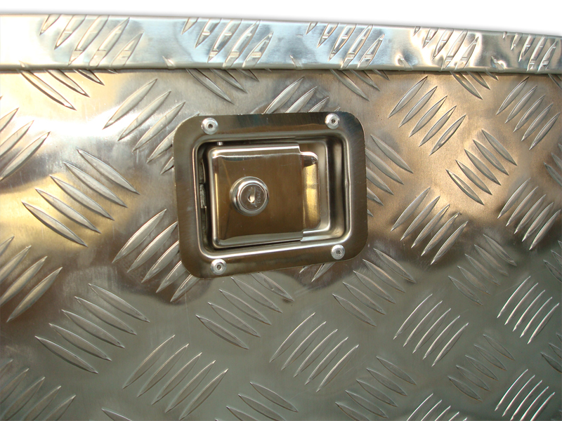 Pratico baule porta attrezzi per cassone pick-up realizzato in alluminio mandorlato.