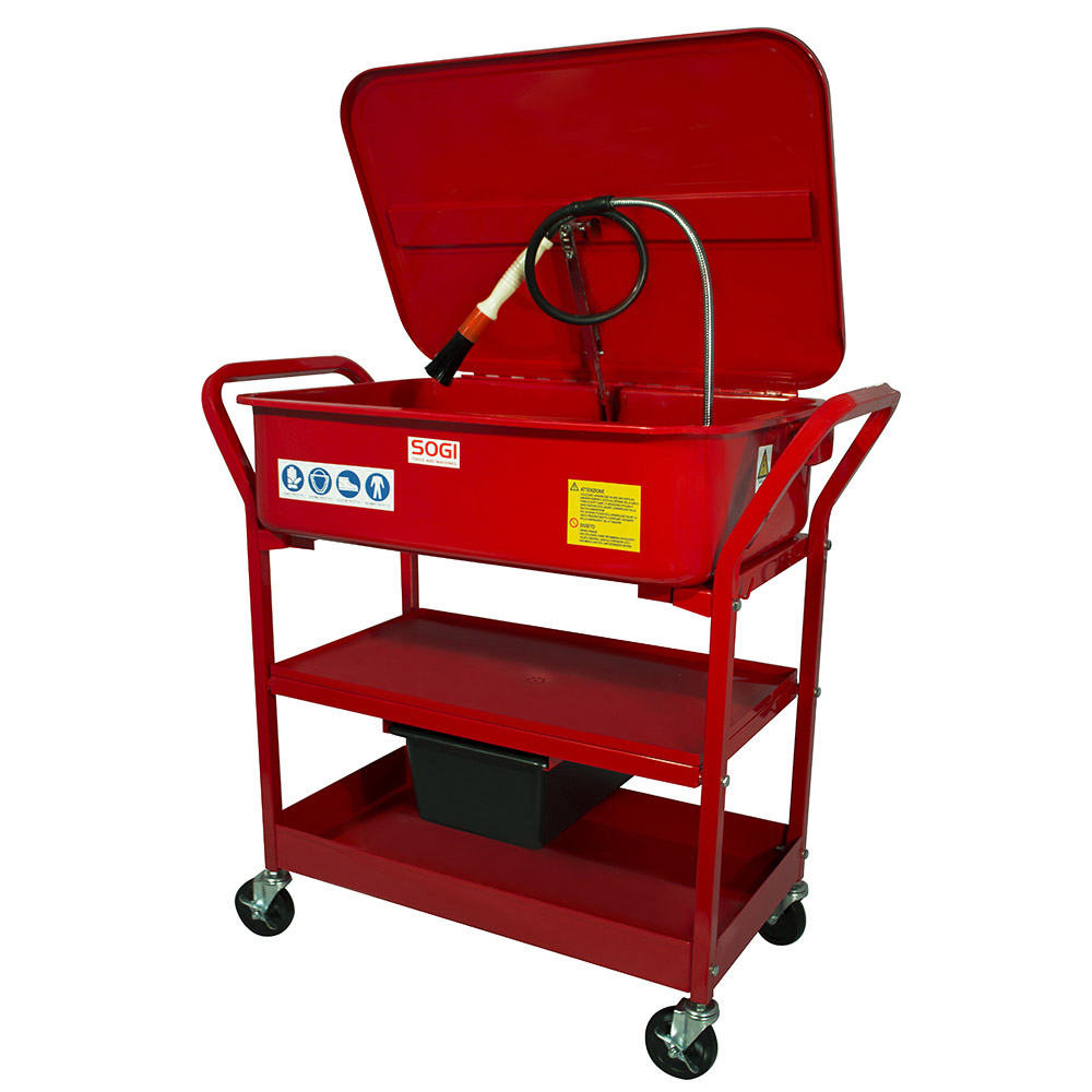 Vasca lavapezzi mobile per officina SOGI SP-LV-EC con ripiano