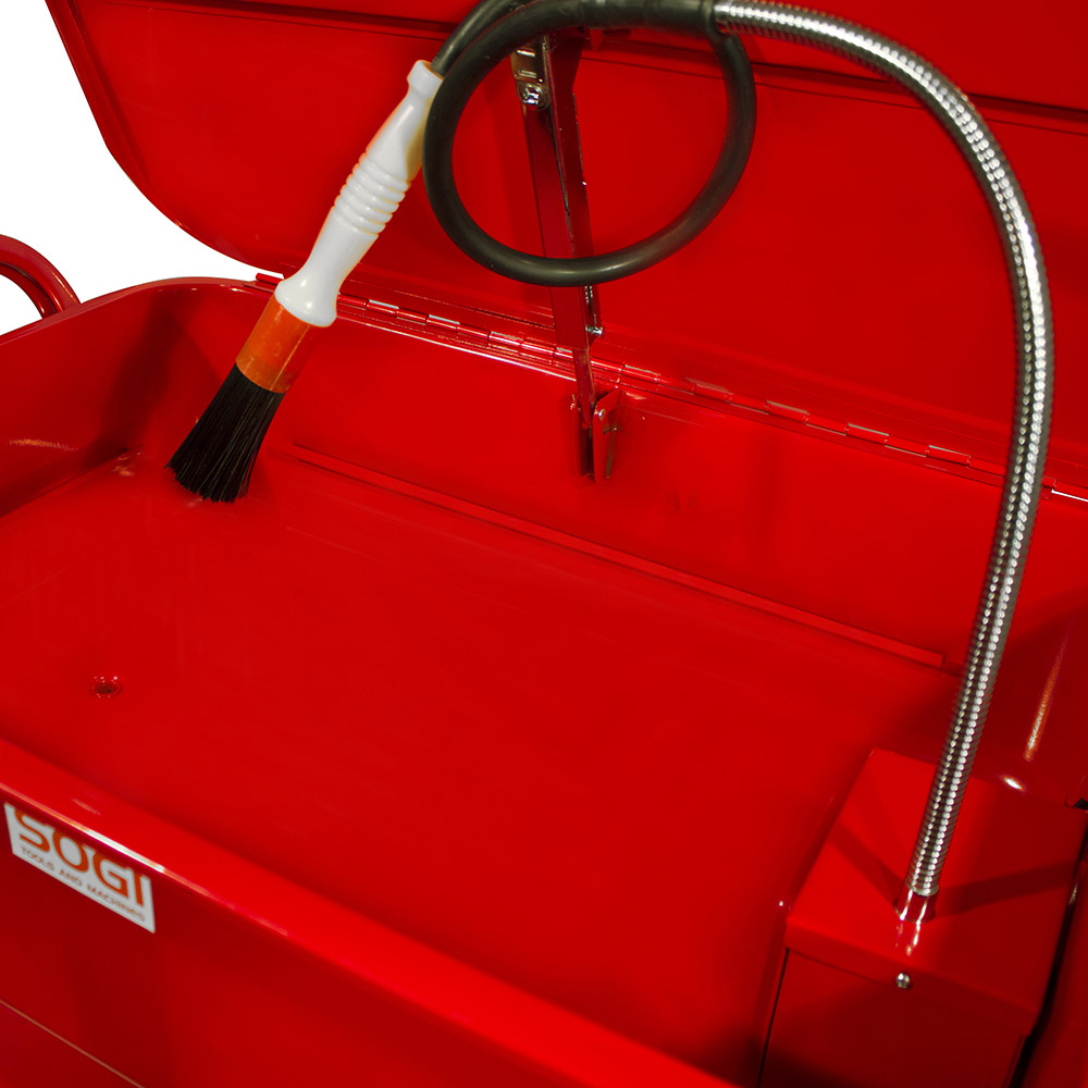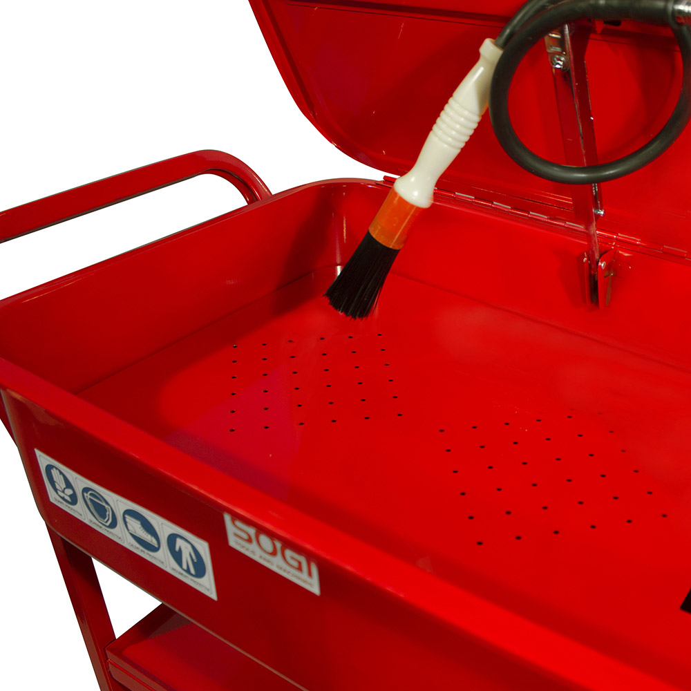 Inoltre questa vasca può essere utilizzata a casa o in officina per lavori di pulizia, idonea all'utilizzo di agenti sgrassanti diluiti in acqua come i prodotti SOGI Cleaner o lo Sgrassante SOGI K110. È dotata di certificazioni CE a norma di legge.