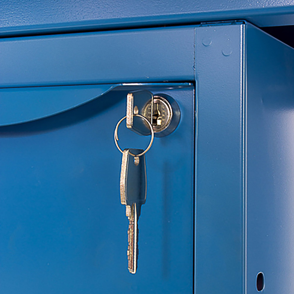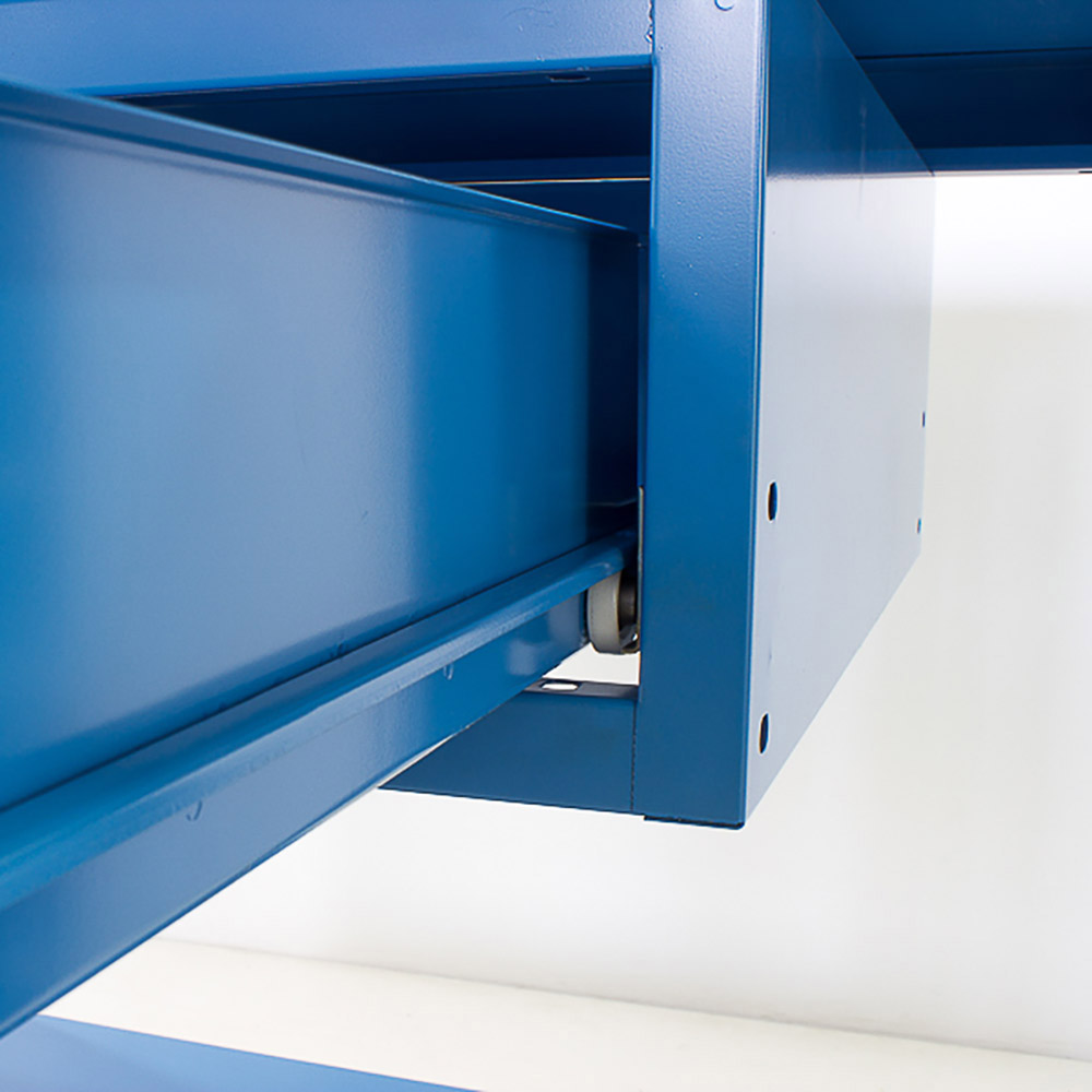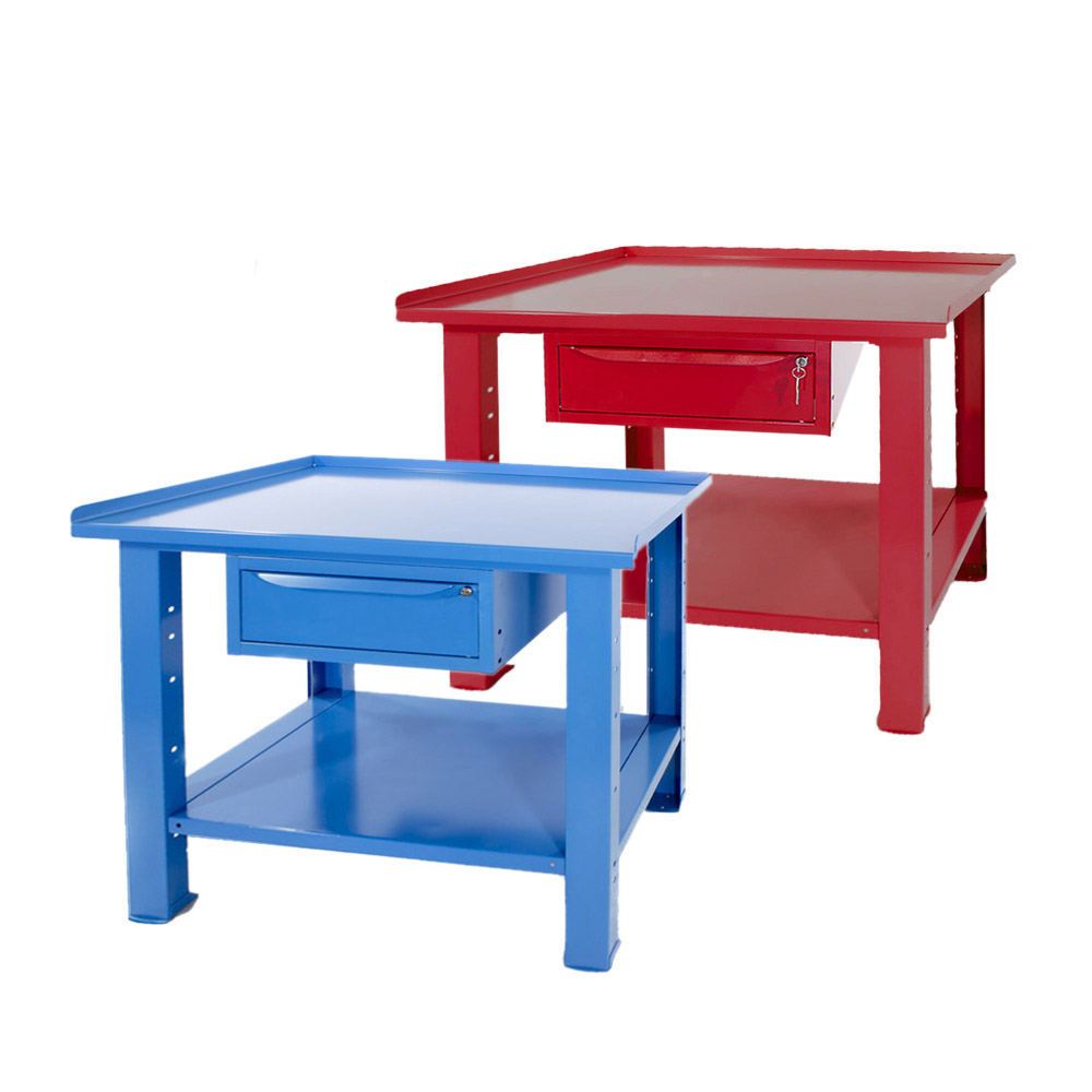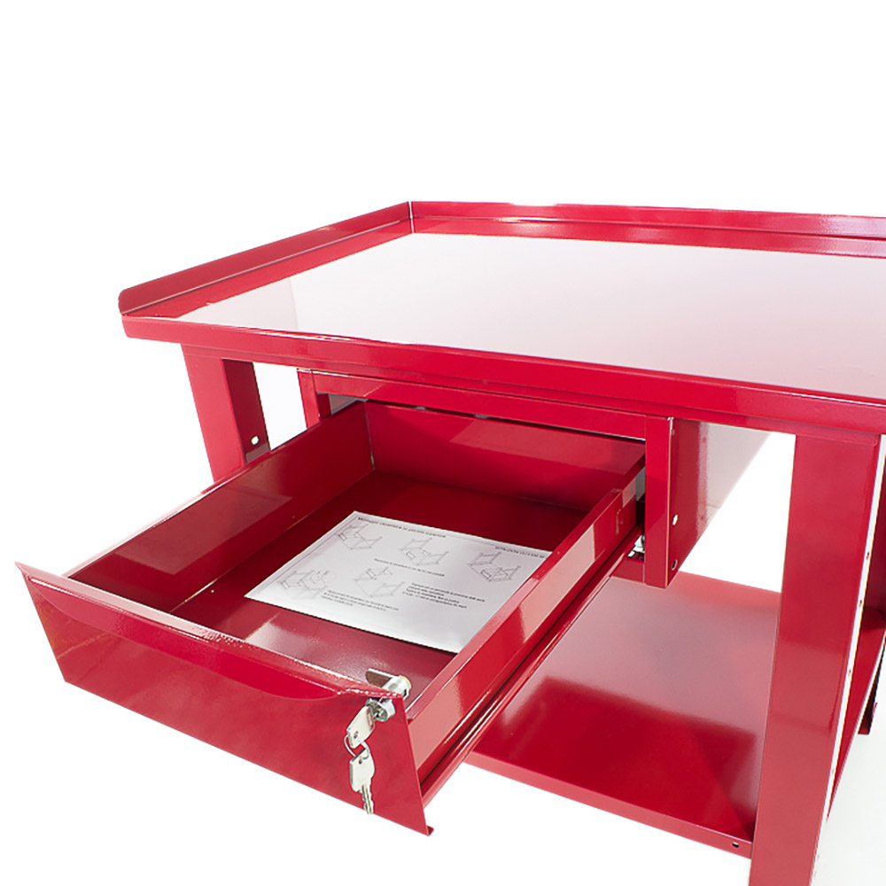 Banco da lavoro SOGI 1 metro con piano in acciaio portata 1000 kg + 1 cassetto - blu/rosso