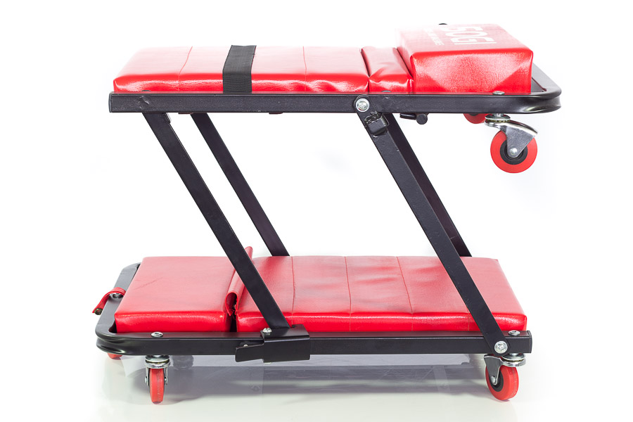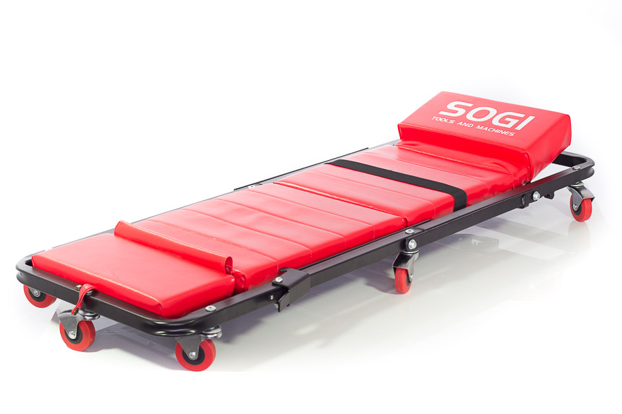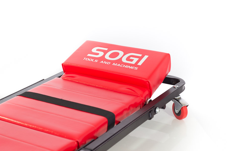 Lettino sotto auto SOGI X4-16 carrello trasformabile in pratico sgabello poggiatesta regolabile sogi x4-16 professionale, indispensabile per la manutenzione meccanica del veicolo o per il car detailing. Struttura in tubolare d'acciao verniciato a polvere ad alta resistenza. Materassino rivestito in ecopello ed imbottito in gomma piuma per una comoda seduta/distesa