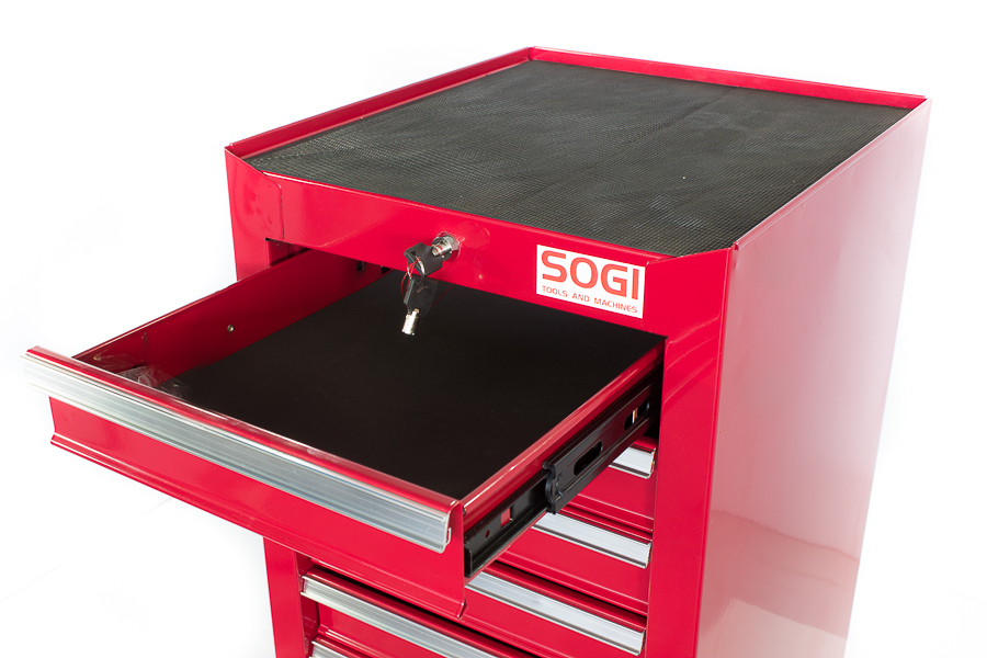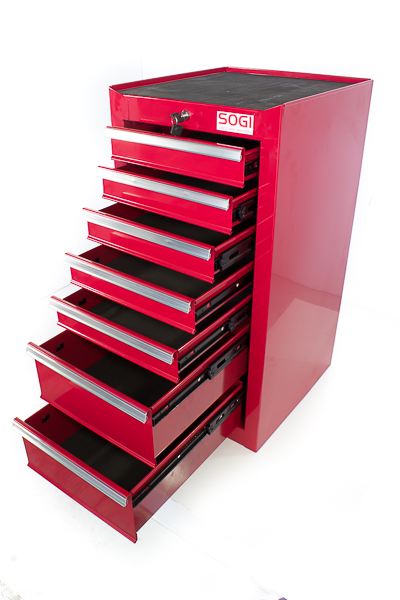 Il carrello SOGI X6-12 e la cassettiera SOGI X6-07 assieme formano una combinazione perfetta che risponde a tutte le esigenze lavorative per l'officina. Il carrello e la cassettiera è di alta qualità professionale industriale e sono realizzate in robusta lamiera verniciate a polvere ad alta resistenza per garantire una lunga durata nel tempo. Colorazione rosso SOGI. Il carrello SOGI X6-12 ha il piano superiore dotato di rivestimento in gomma antiolio. Chiusura centralizzata totale. Cassetti scorrevoli su apposite guide di scorrimento su cuscinetti ad alta resistenza. Cassetti dotati di rivestimento in gomma antiscivolo. Robuste maniglie per un facile e comodo spostamento.La cassettiera SOGI X6-07 ha il piano superiore di anta a ribalta completa di ammortizzatori pneumatici. Chiusura centralizzata totale anche per la vasca superiore e cassetti. Cassetti scorrevoli su apposite guide di scorrimento su cuscinetti ad alta resistenza. Cassetti dotati di rivestimento in gomma antiscivolo. Robuste maniglie per un facile e comodo spostamento.Caratteristiche tecniche dell carrello SOGI X6-12Colorazione: rosso SOGIN° 2 ruote fisse e N° 2 ruote piroettanti dotate di freno di stazionamentoRuote in acciaio rivestite in gomma: Ø 125 mmPortata complessiva max: 750 KgN° 1 cassetto superiore: 1310 x 390 x 110 h mmN° 5 cassetti: 930 x 390 x 65 h mmN° 1 cassetto: 930 x 390 x 145 h mmN° 3 cassetti: 305 x 390 x 65 h mmN° 2 cassetti: 305 x 390 x 145 h mmDimensioni: 1430 x 510 x 1000 h mmPeso netto: 190 KgPeso lordo: 240 KgGaranzia di 12/24 mesiCaratteristiche tecniche della cassettiera X6-07Portata complessiva max: 370 KgVano superiore: 1260 x 405 x 98 h mmN° 3 Cassetti: 930 x 309 x 65 h mmN° 1 Cassetto: 930 x 309 x 125 h mmN° 2 Cassetti: 305 x 309 x 65 h mmN° 1 Cassetto: 305 x 309 x 205 h mmDimensioni: 1412 x 475 x 528 h mmPeso netto: 78 KgPeso lordo: 86 KgGaranzia di 36 mesi