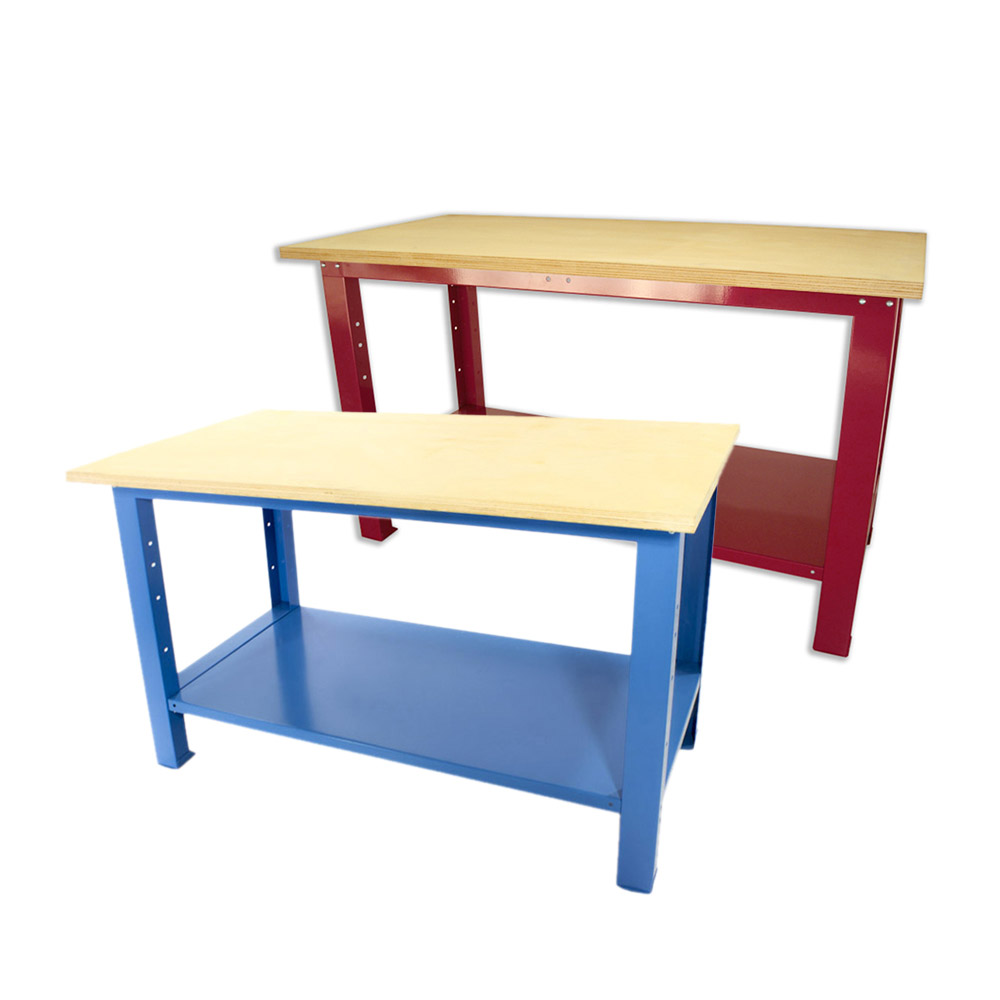 Banco da lavoro SOGI 1,5 metri con piano in legno portata 1000 kg - blu/rosso