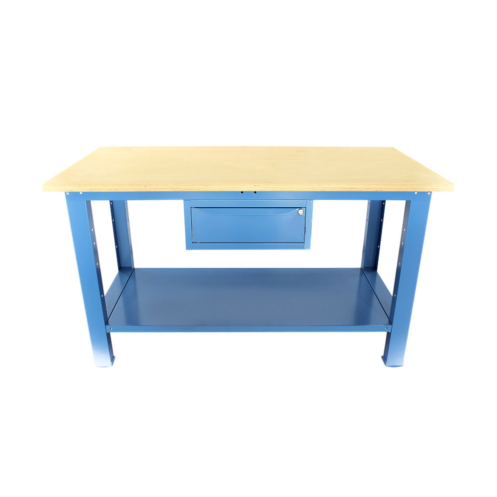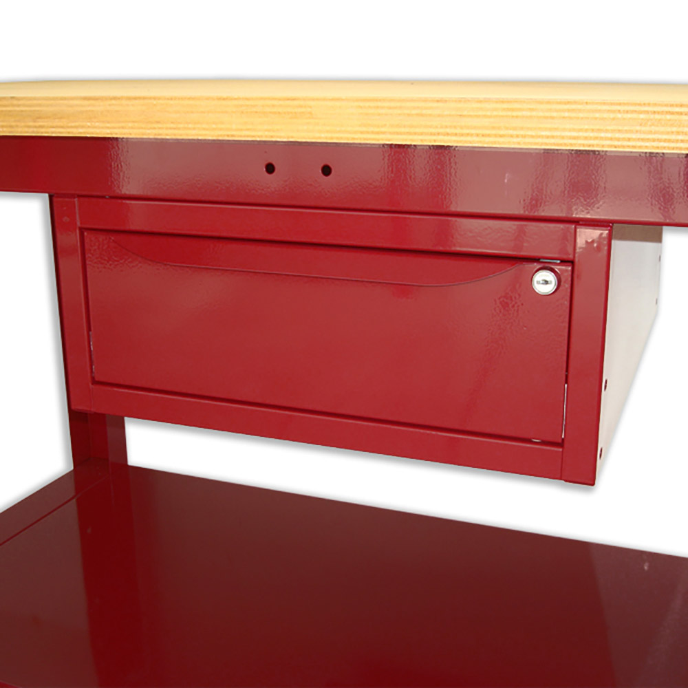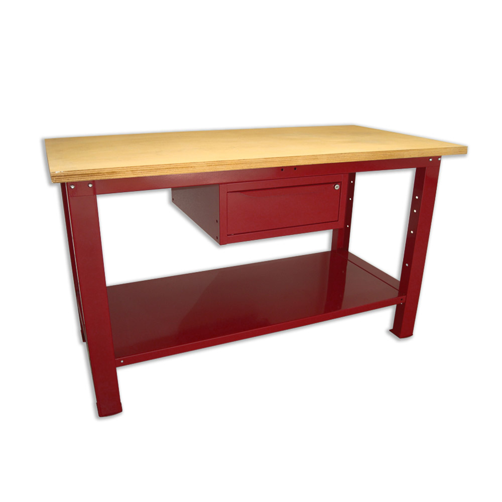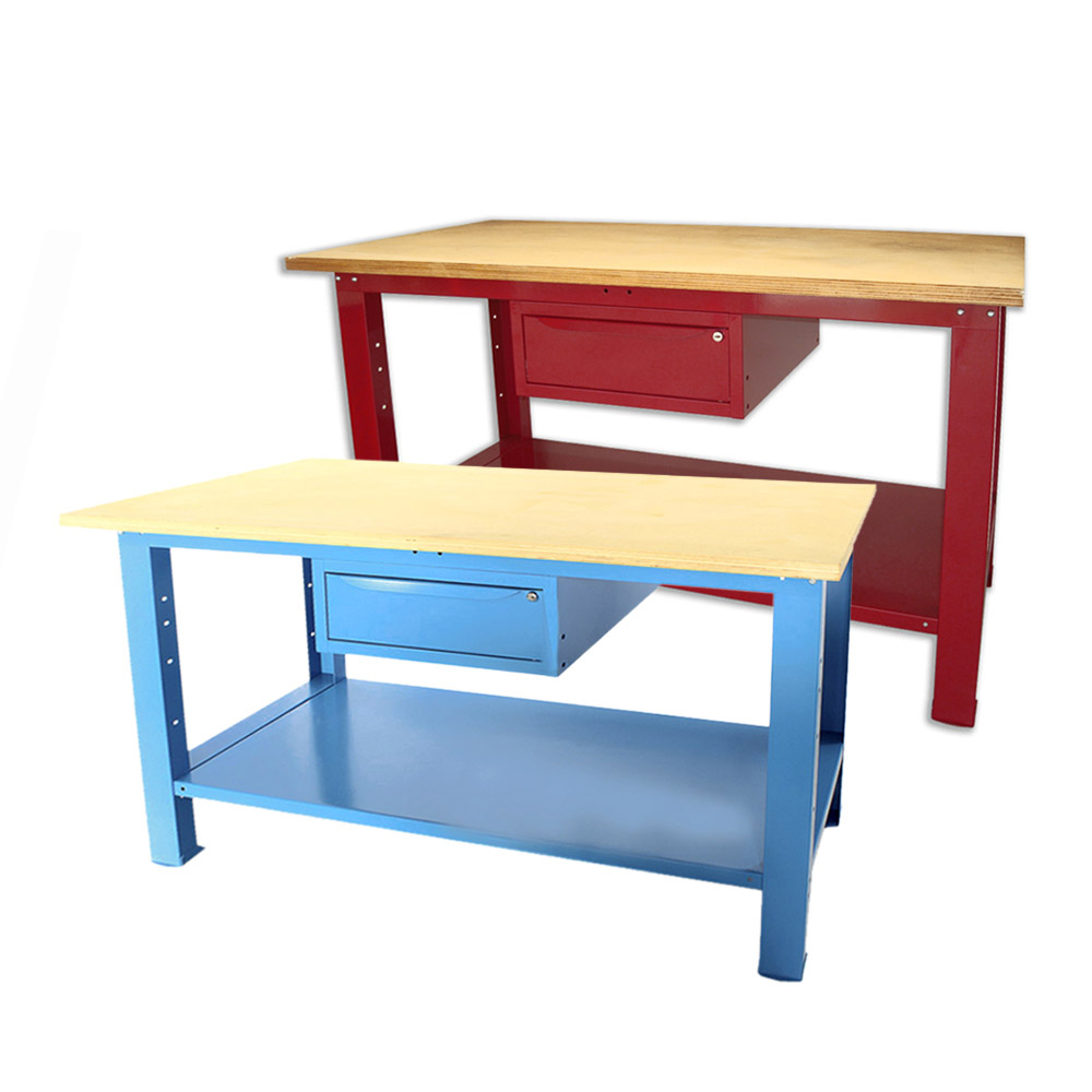 Banco da lavoro SOGI 1,5 metri con piano in legno portata 1000 kg + 1 cassetto - blu/rosso