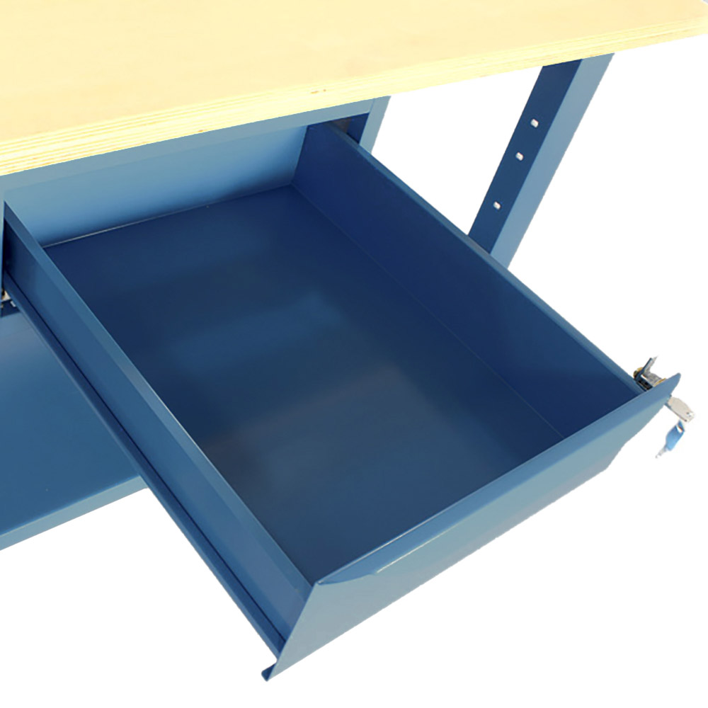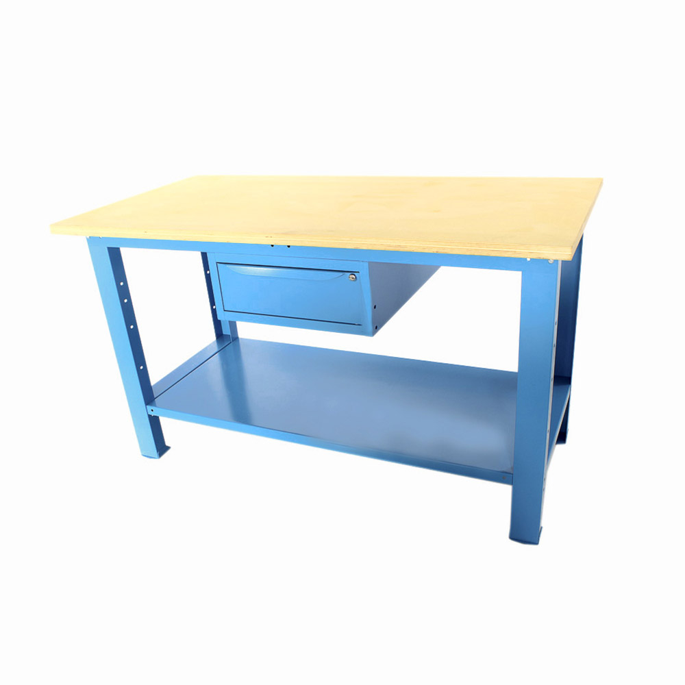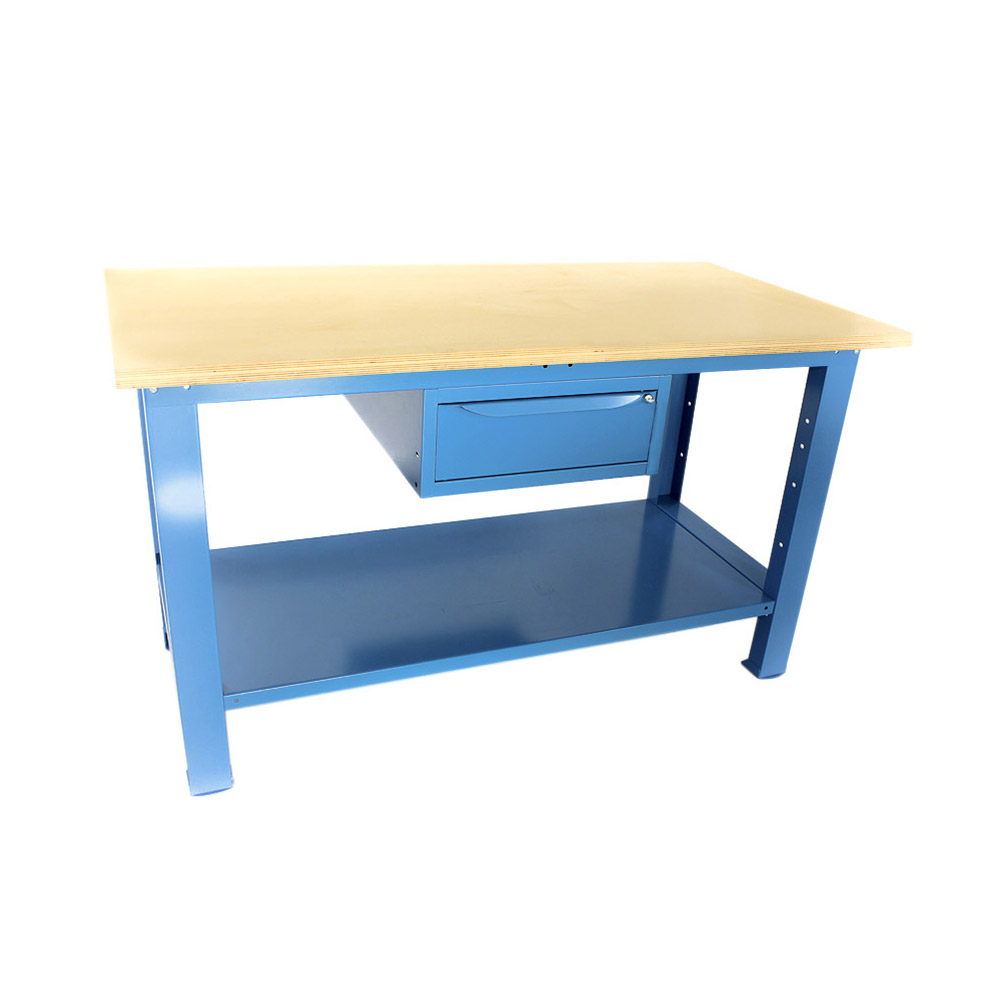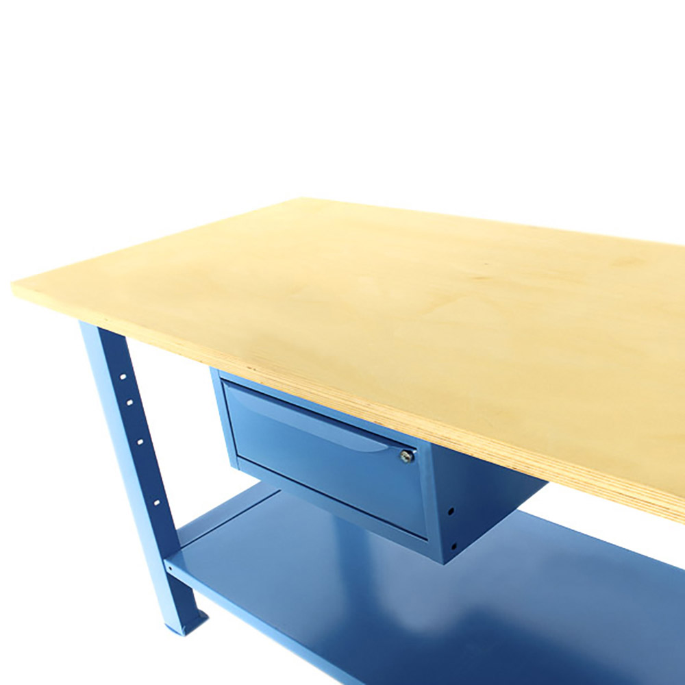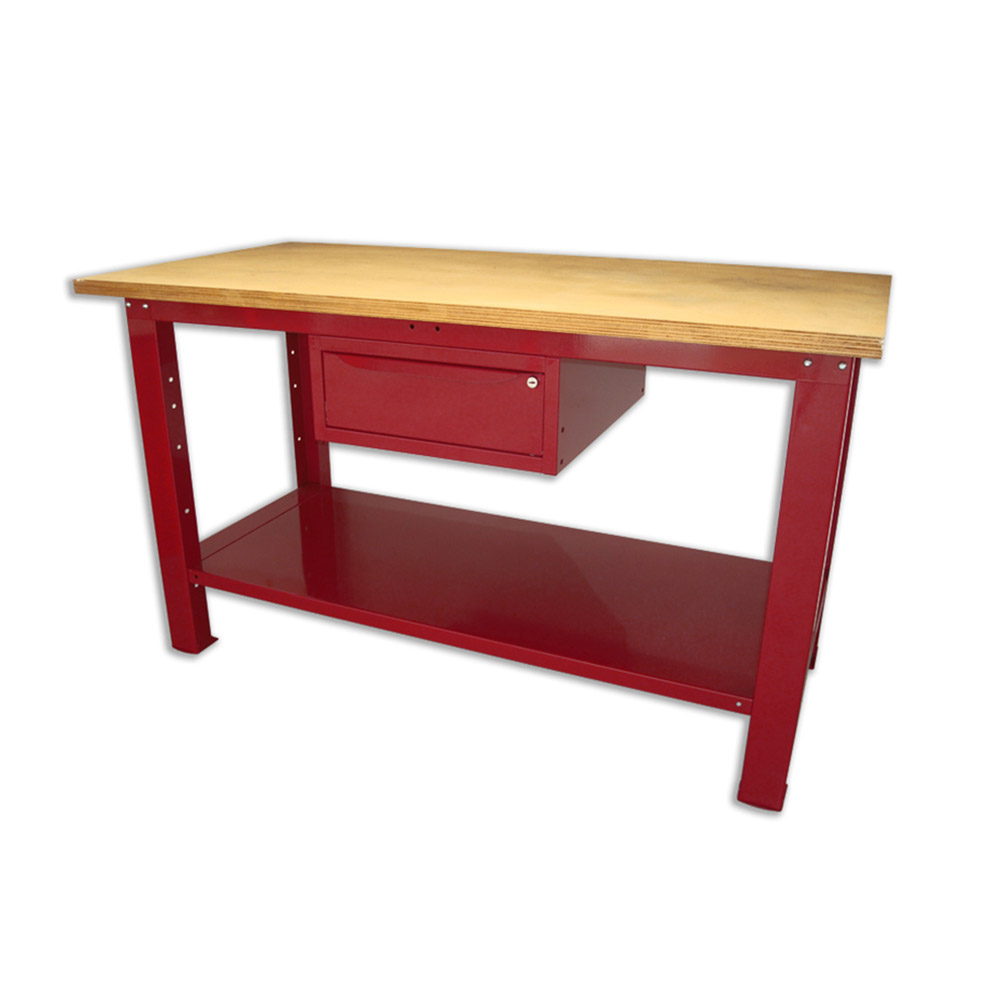 Banco da lavoro SOGI 1,5 metri con piano in legno portata 1000 kg + 1 cassetto - blu/rosso