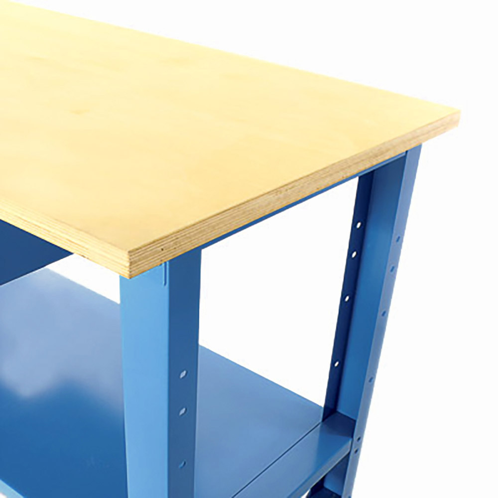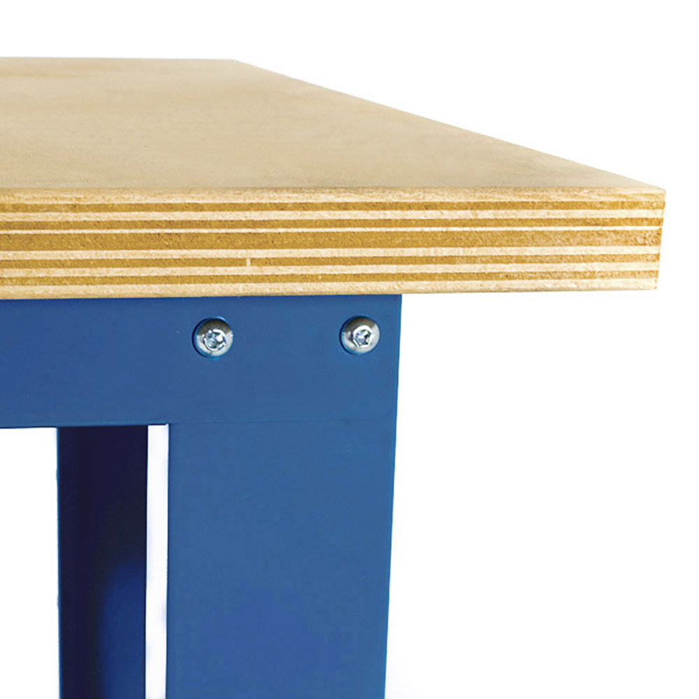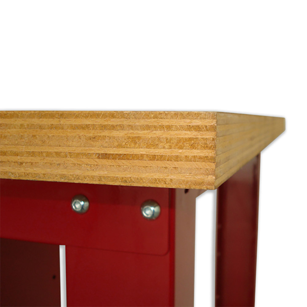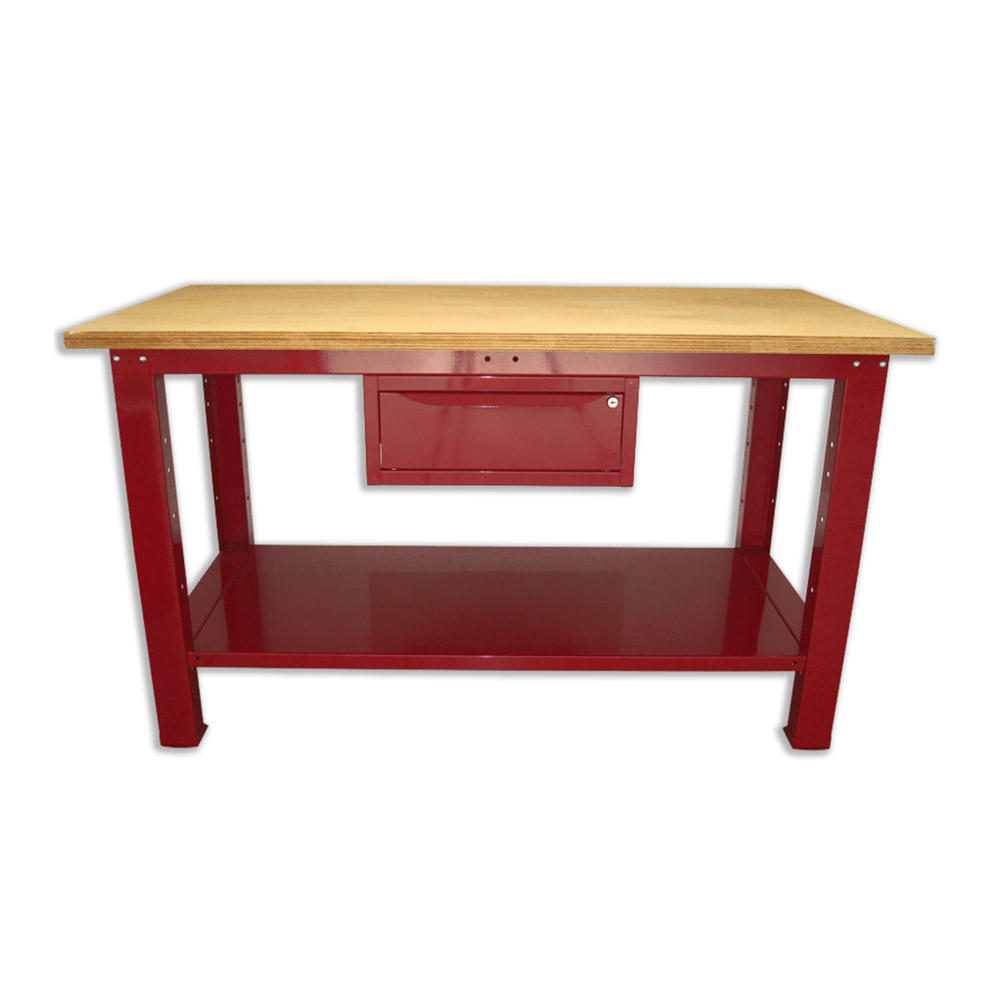 Banco da lavoro SOGI 1,5 metri con piano in legno portata 1000 kg + 1 cassetto - blu/rosso