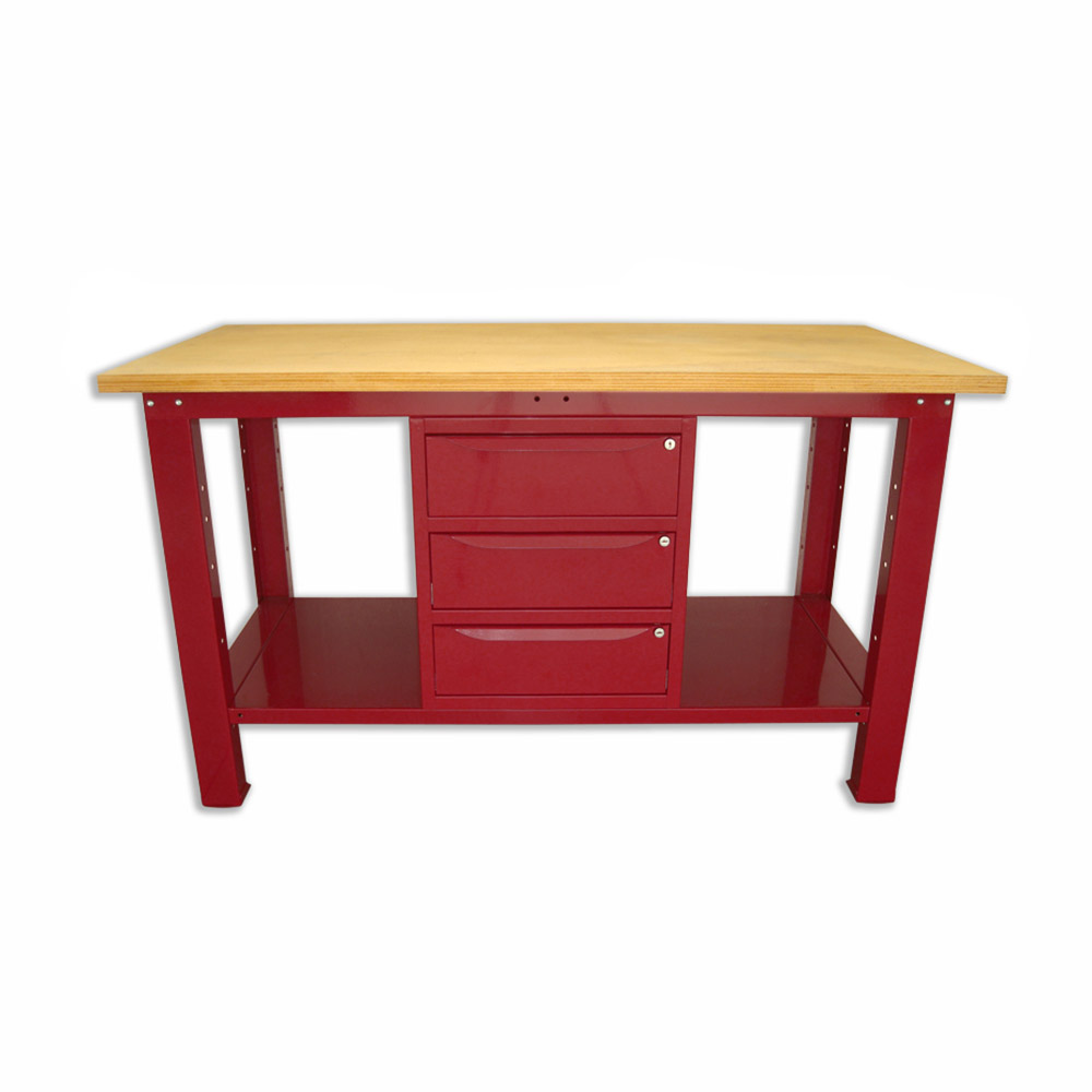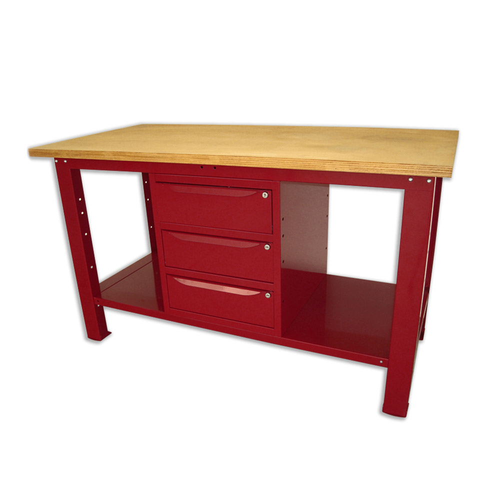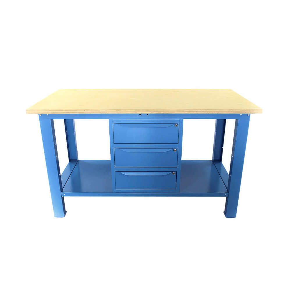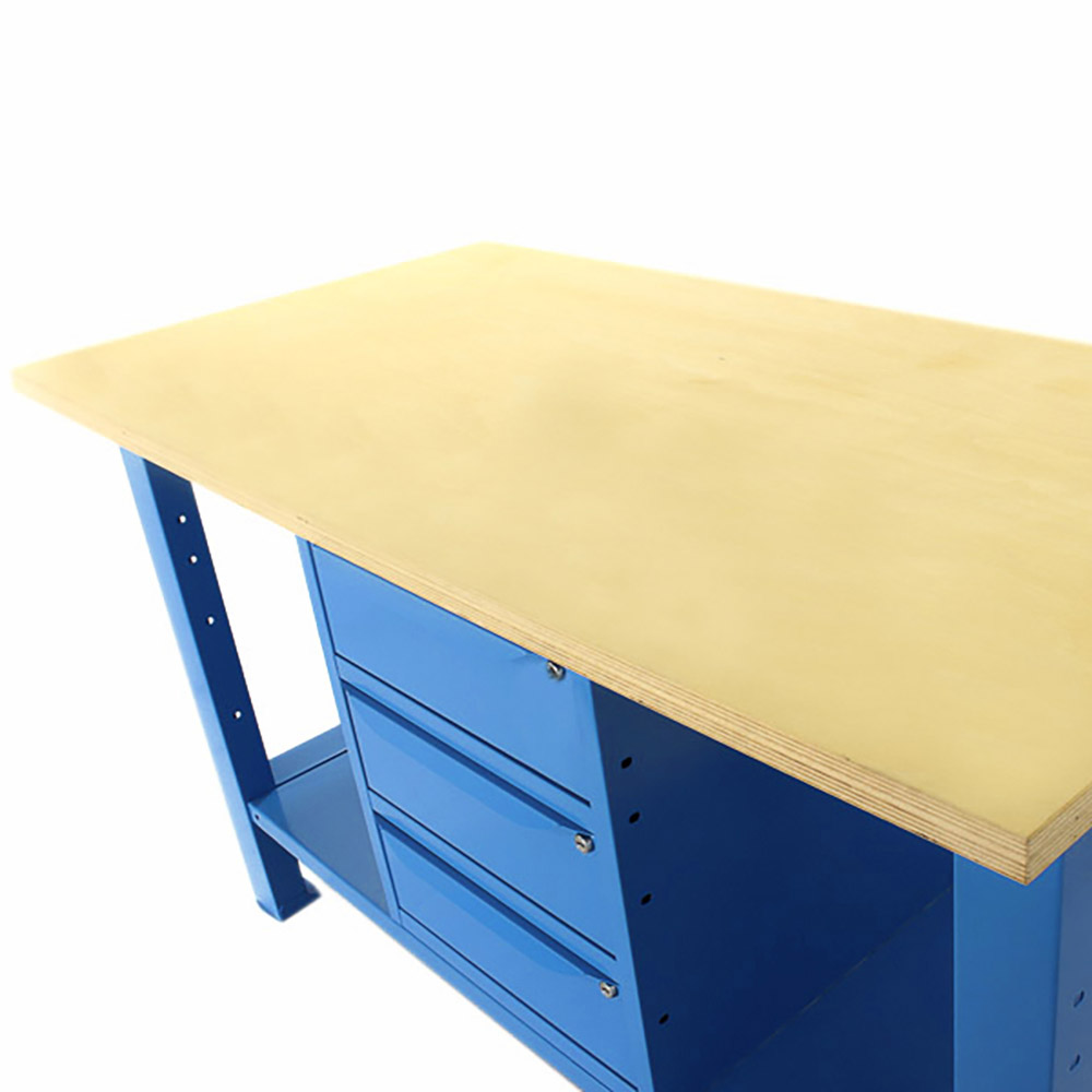 Banco da lavoro SOGI 1,5 metri con piano in legno + armadio a 3 cassetti - blu/rosso