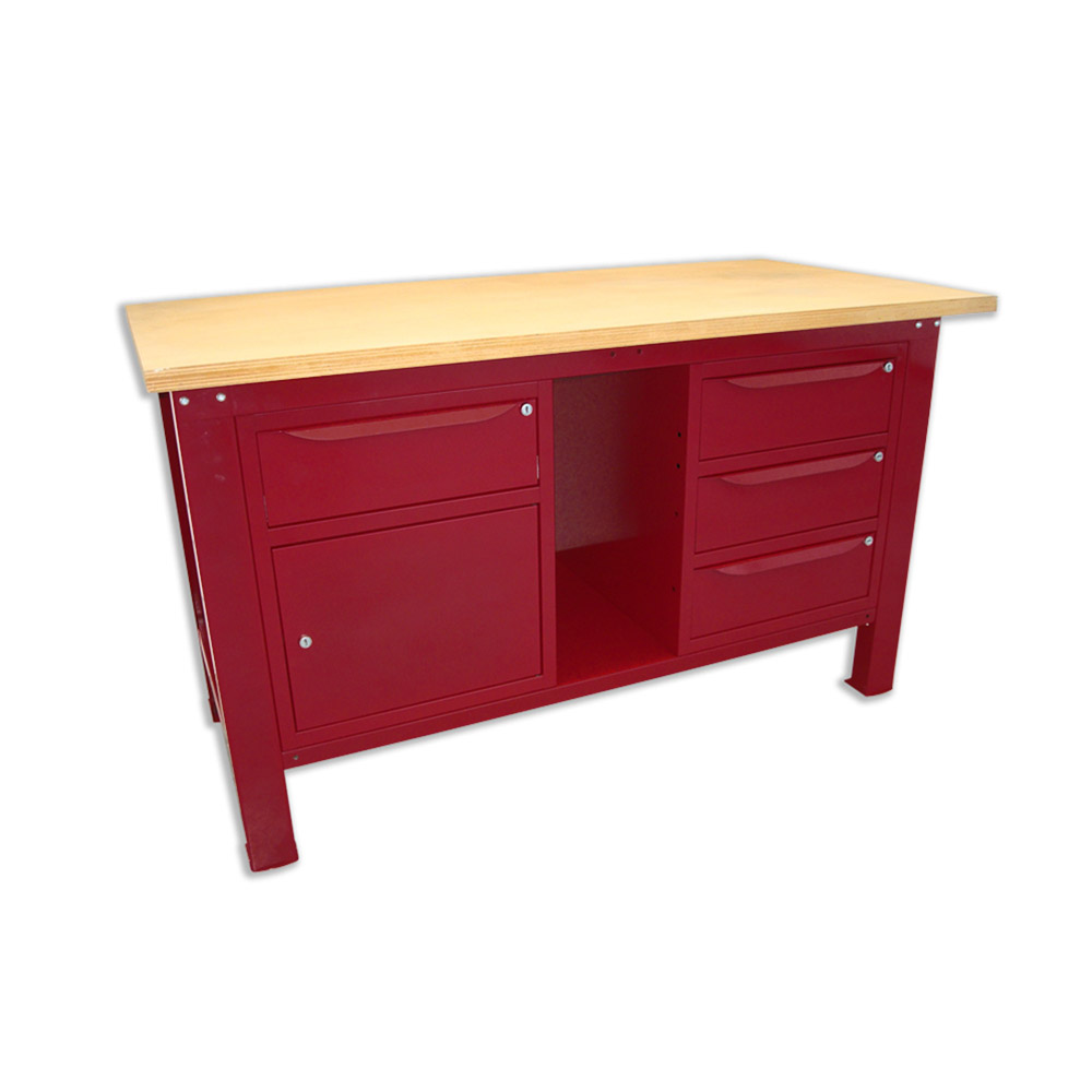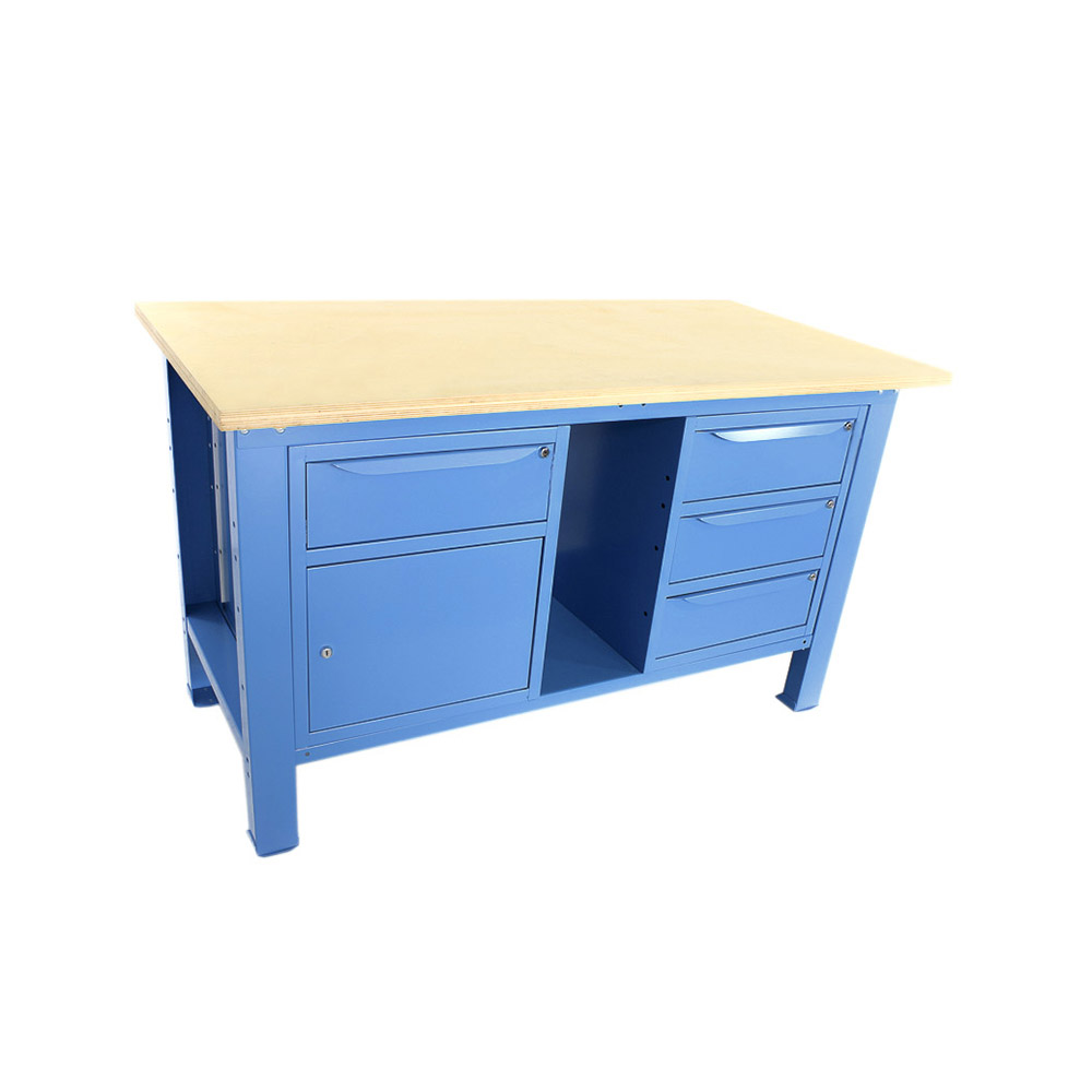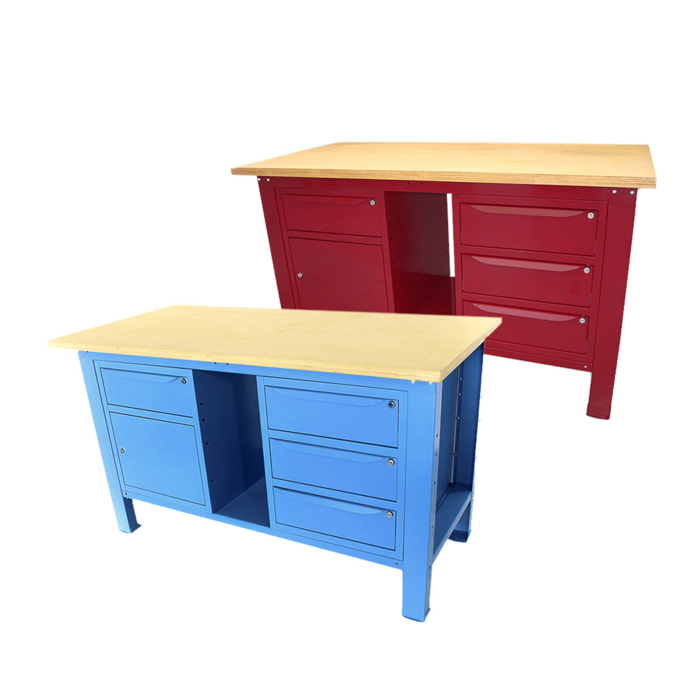 Banco lavoro SOGI 1,5m piano in legno + armadio anta cassetto + armadio a 3 cassetti - blu/rosso