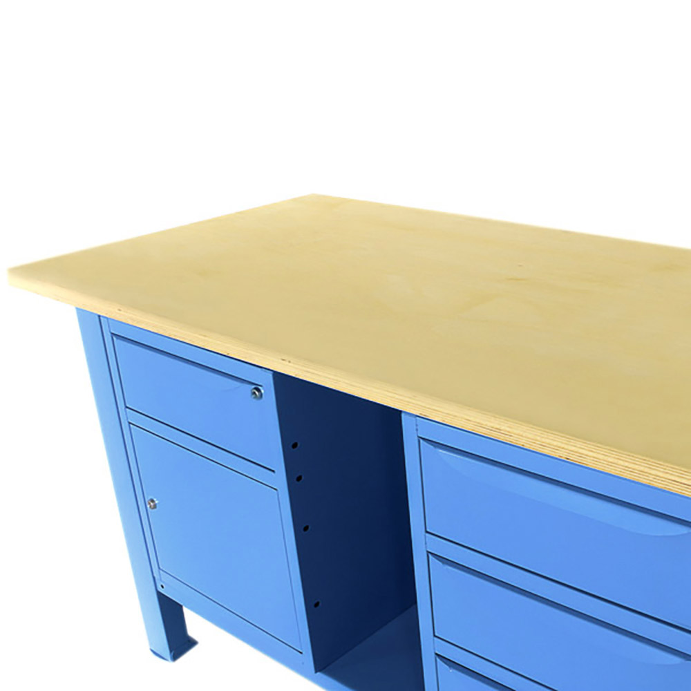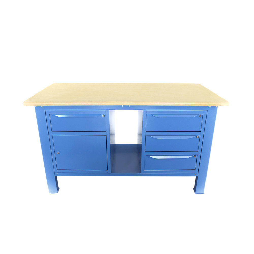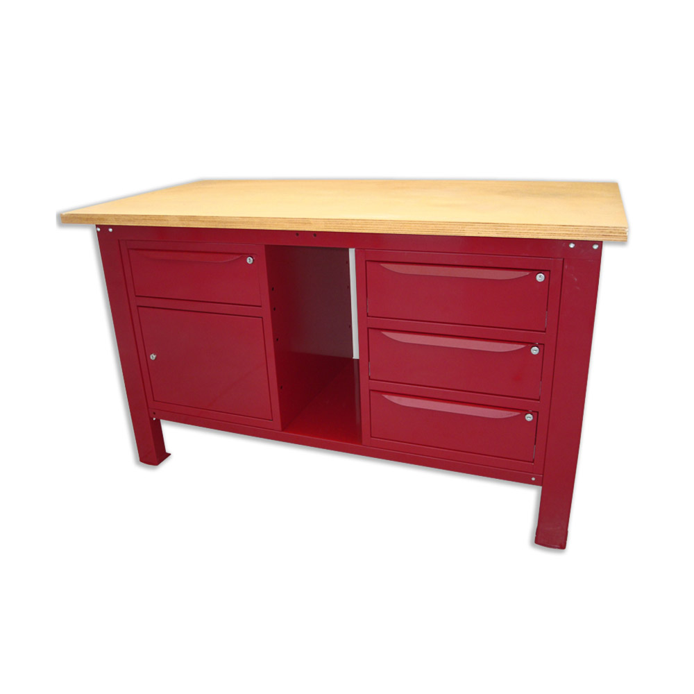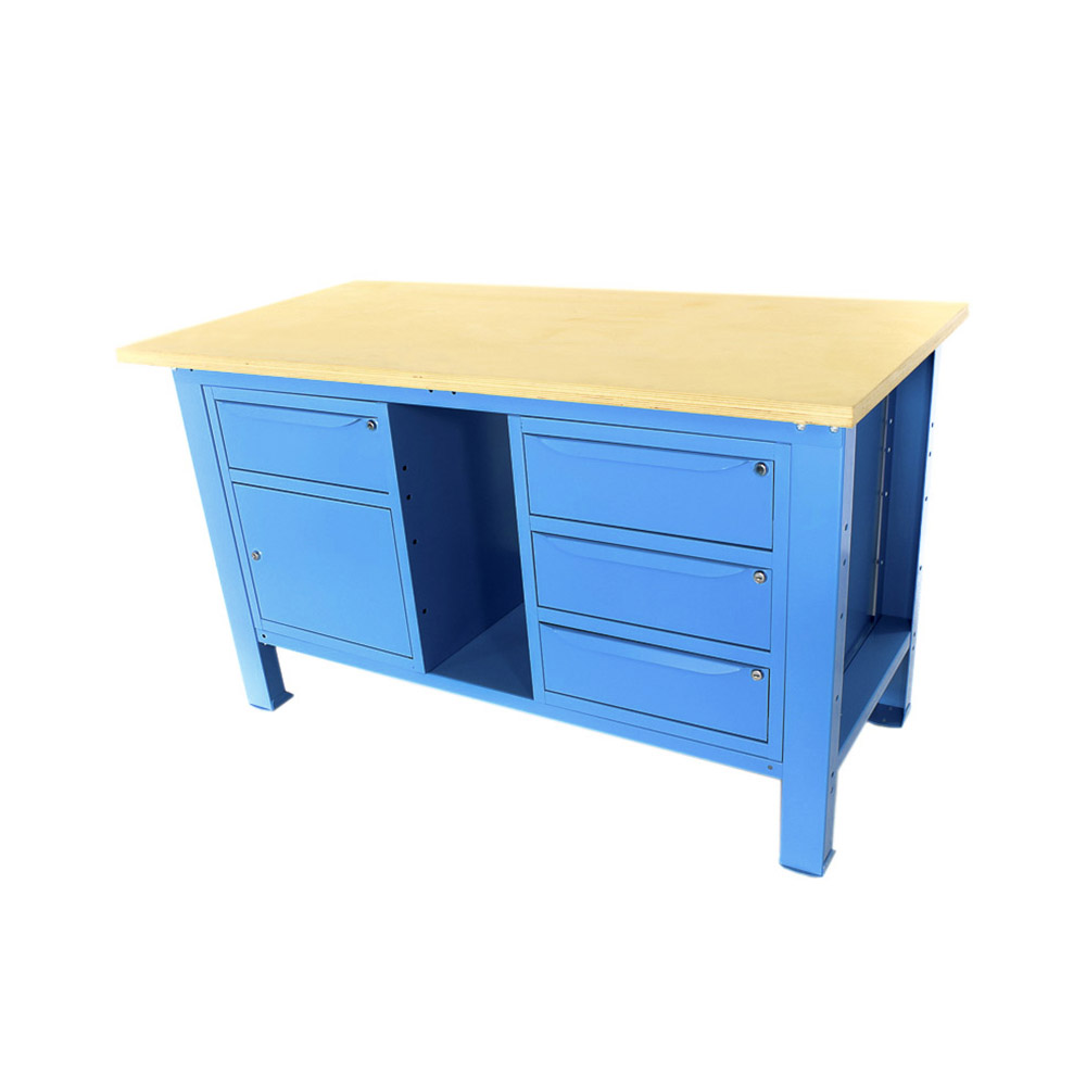 Banco lavoro SOGI 1,5m piano in legno + armadio anta cassetto + armadio a 3 cassetti - blu/rosso