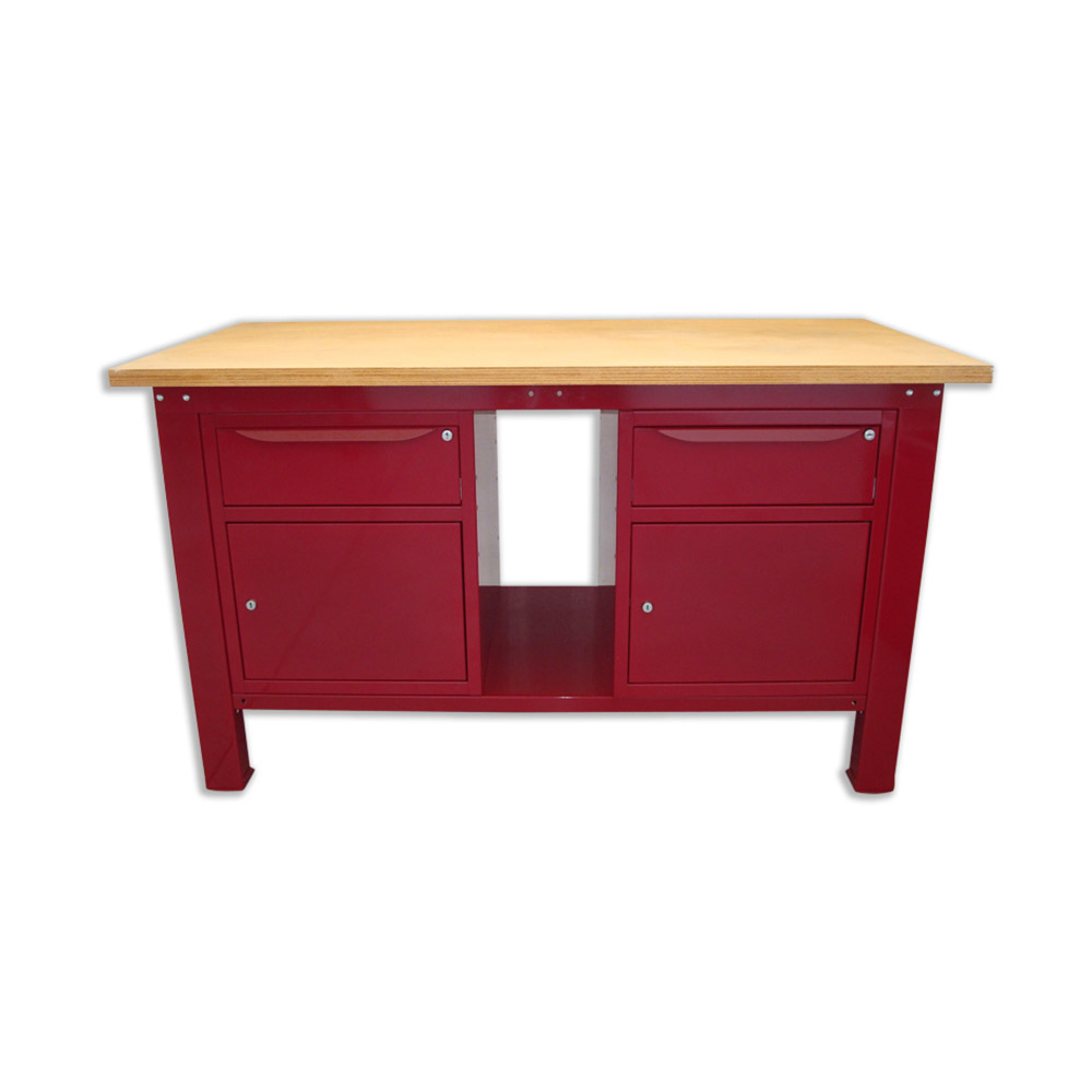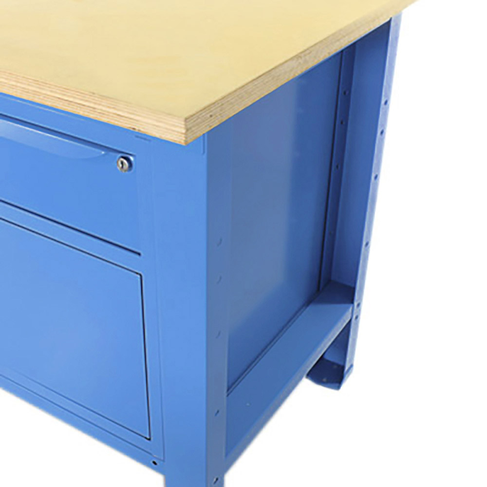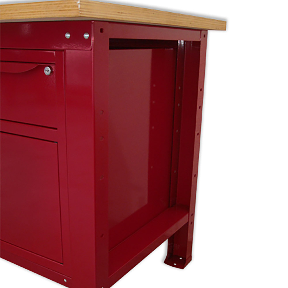 Banco da lavoro SOGI 1,5 metri con piano in legno + 2 armadi con anta e cassetto - blu/rosso