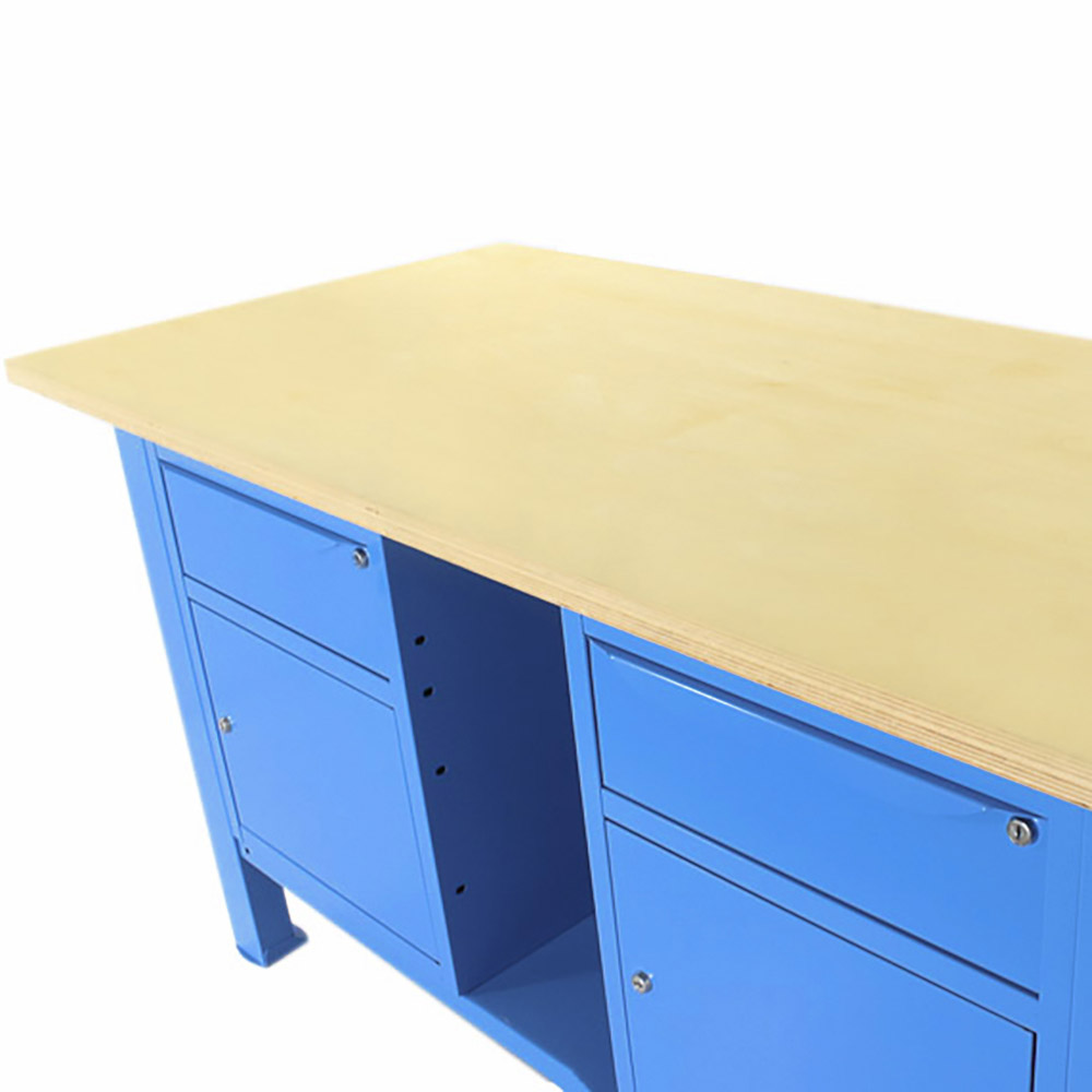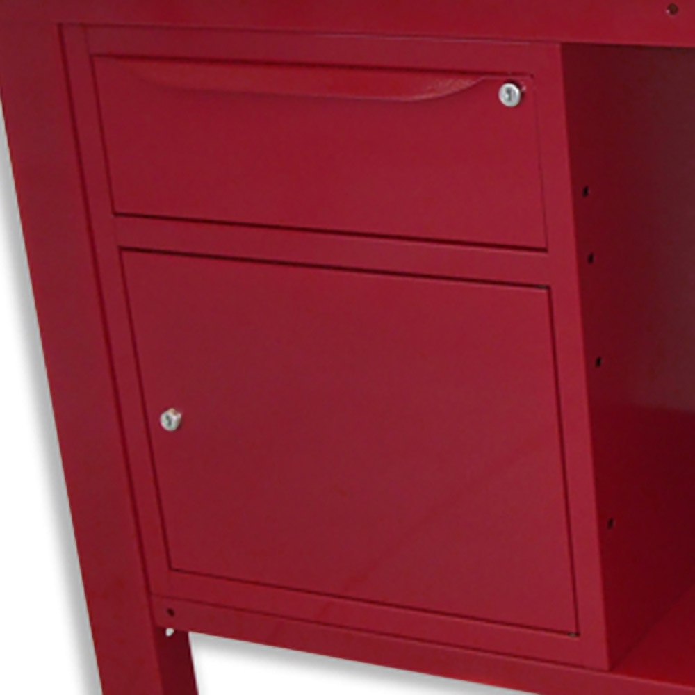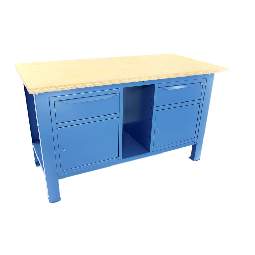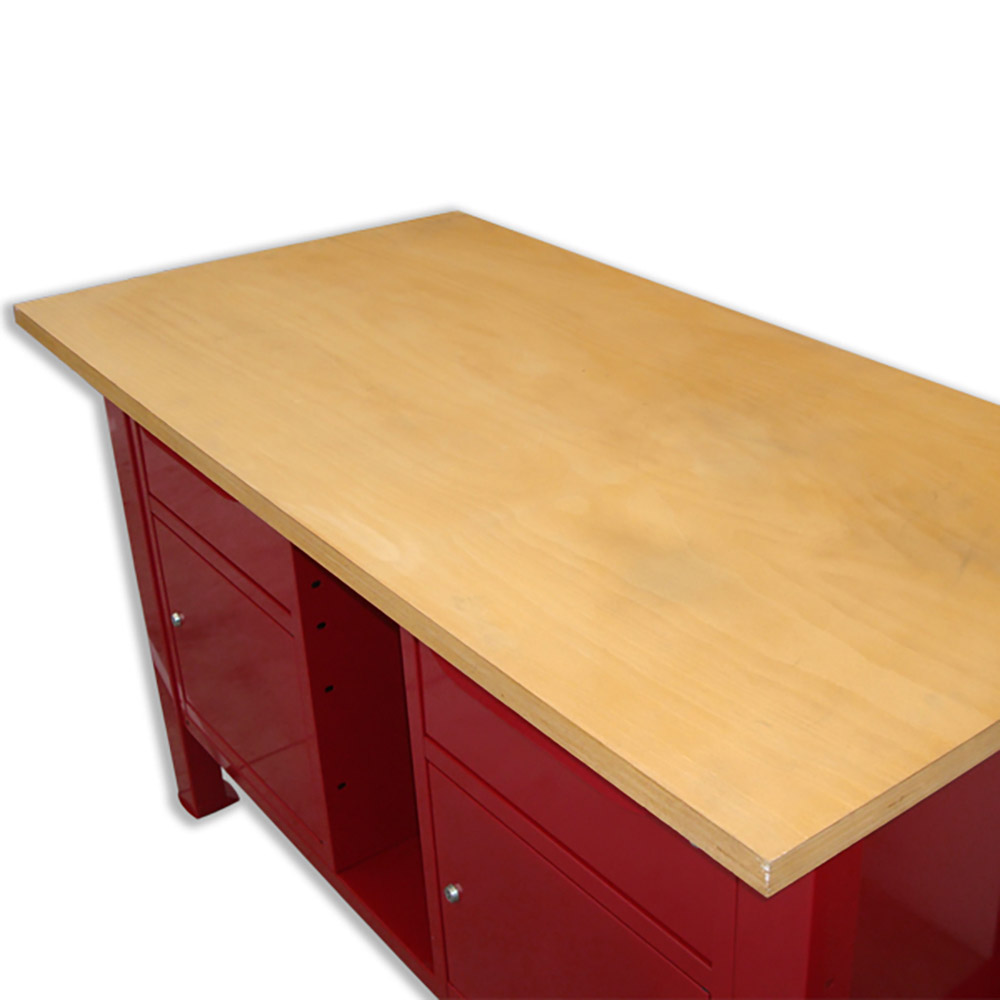 Banco da lavoro SOGI 1,5 metri con piano in legno + 2 armadi con anta e cassetto - blu/rosso