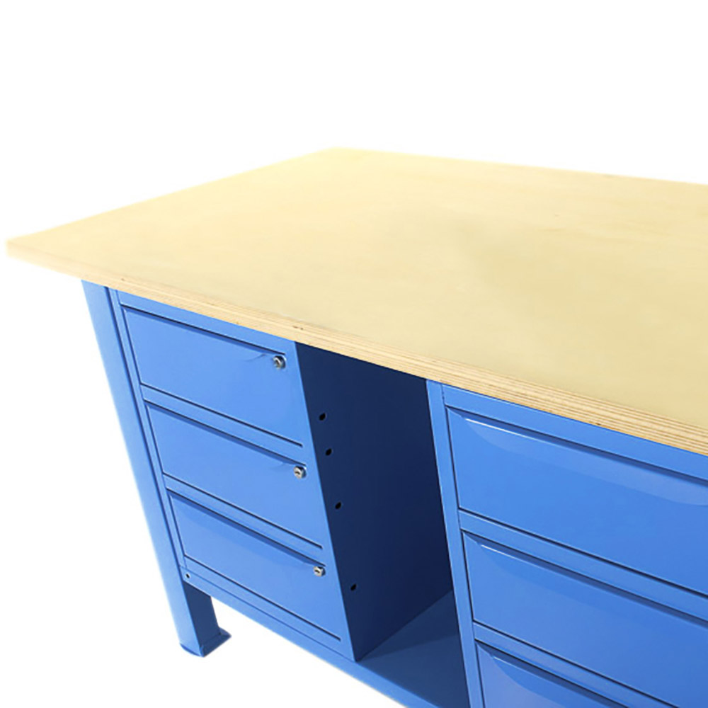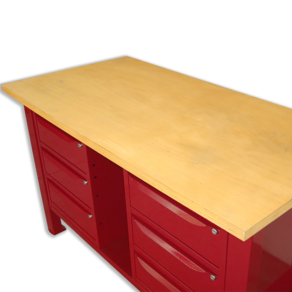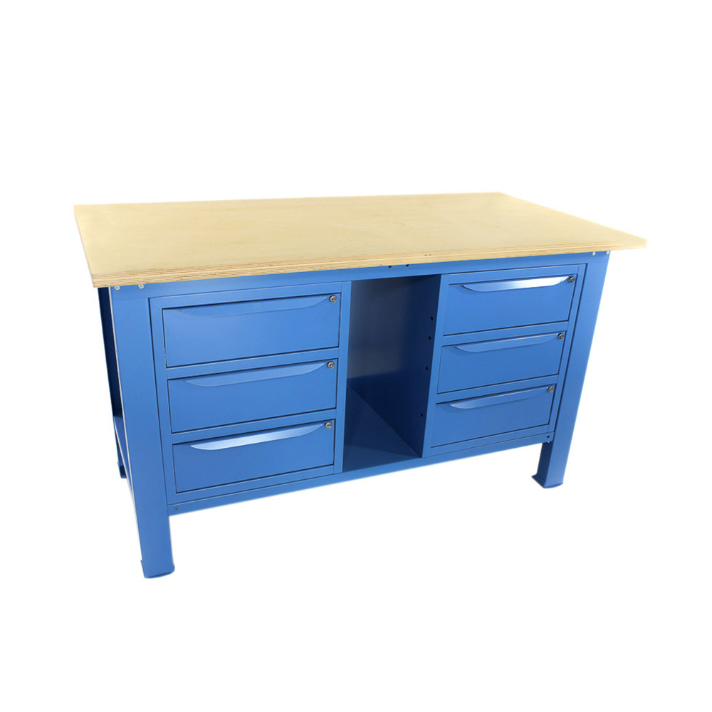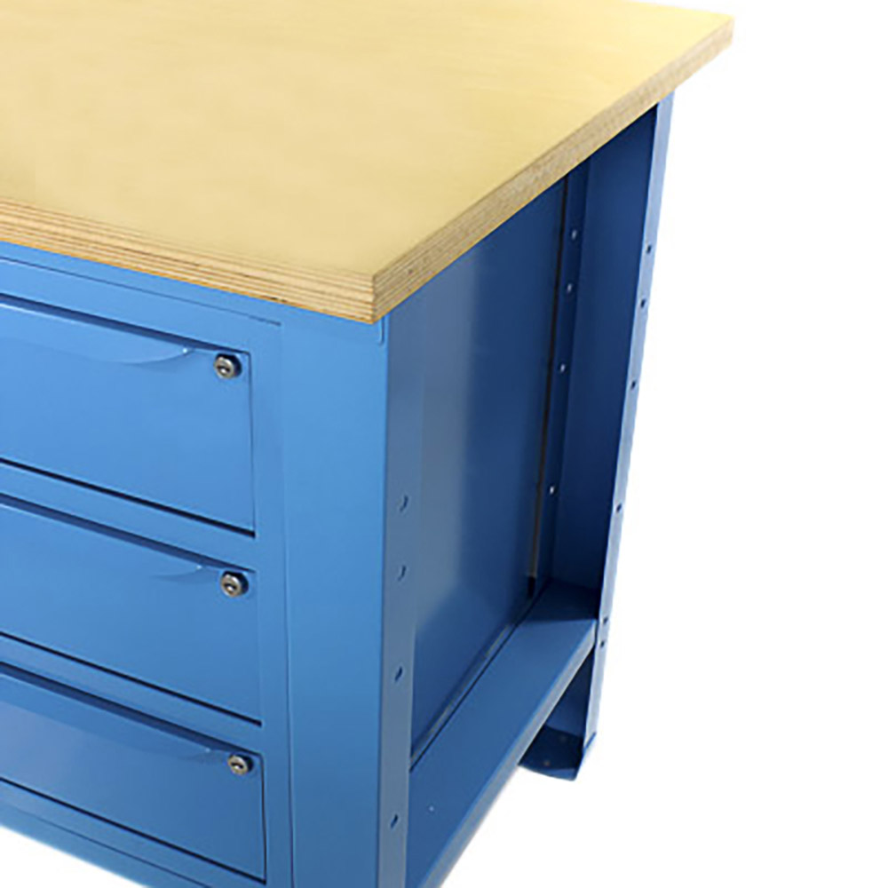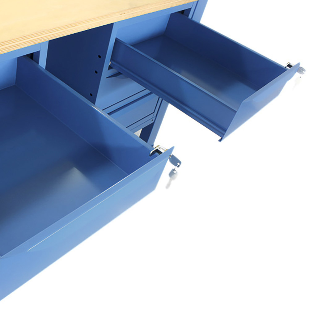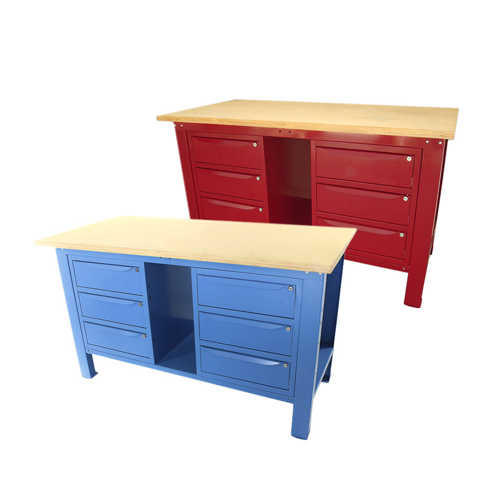 Banco da lavoro SOGI 1,5 metri con piano in legno + 2 armadi a 3 cassetti - blu/rosso