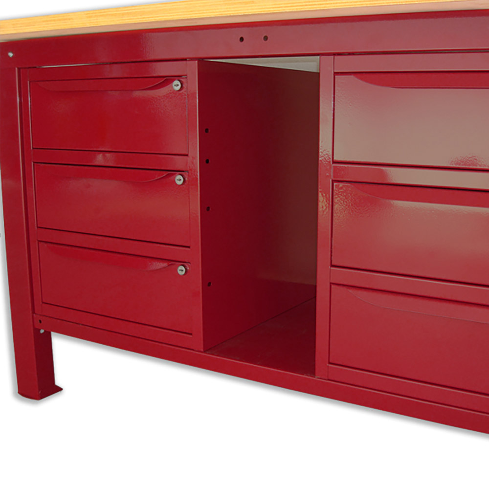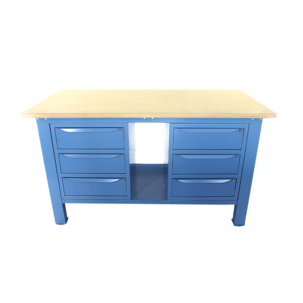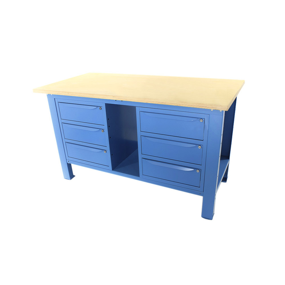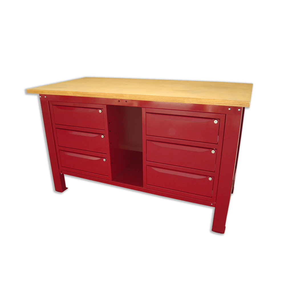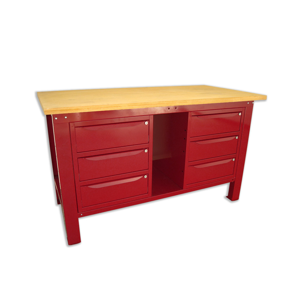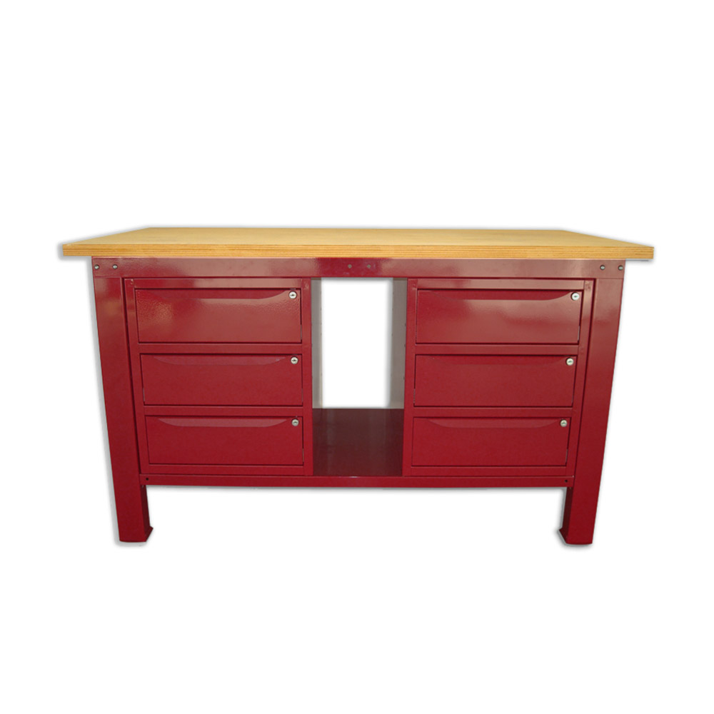 Banco da lavoro SOGI 1,5 metri con piano in legno + 2 armadi a 3 cassetti - blu/rosso