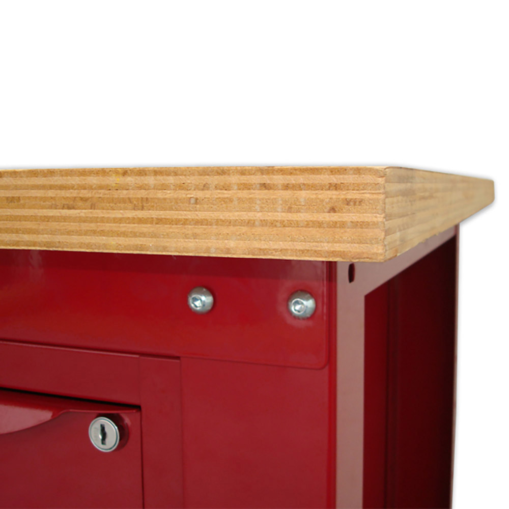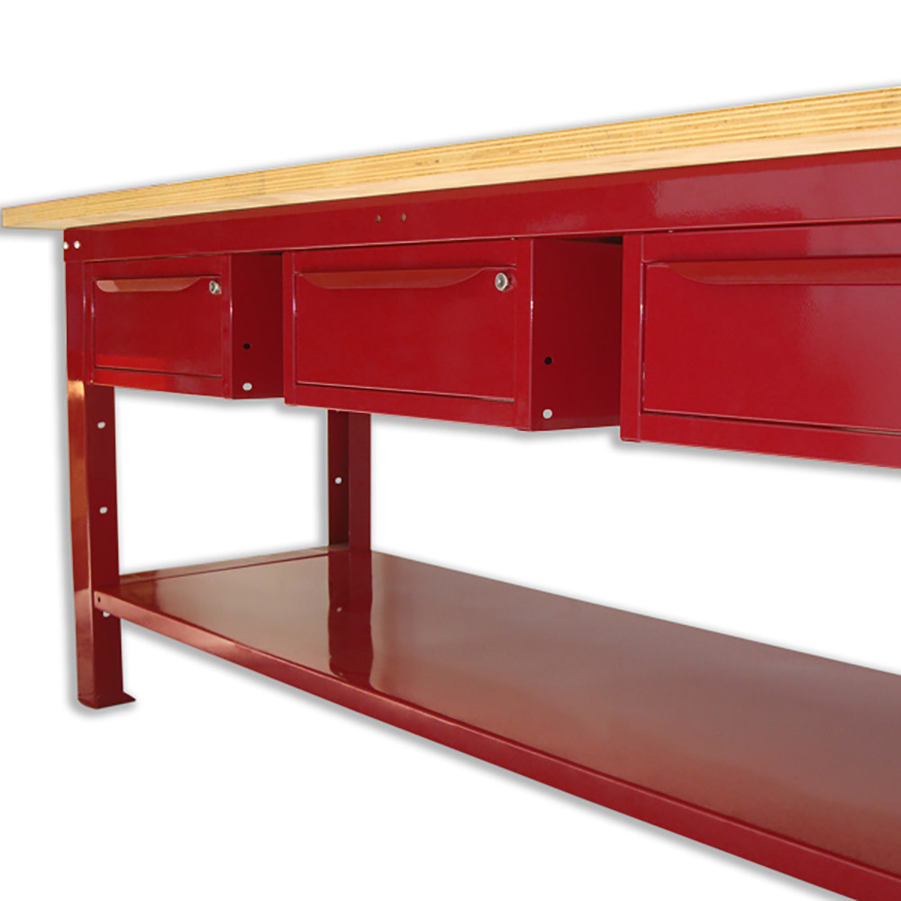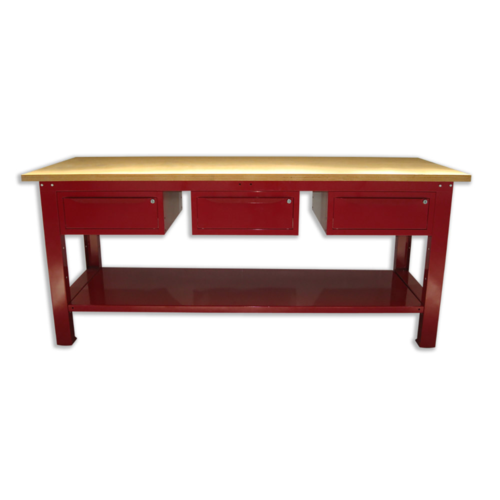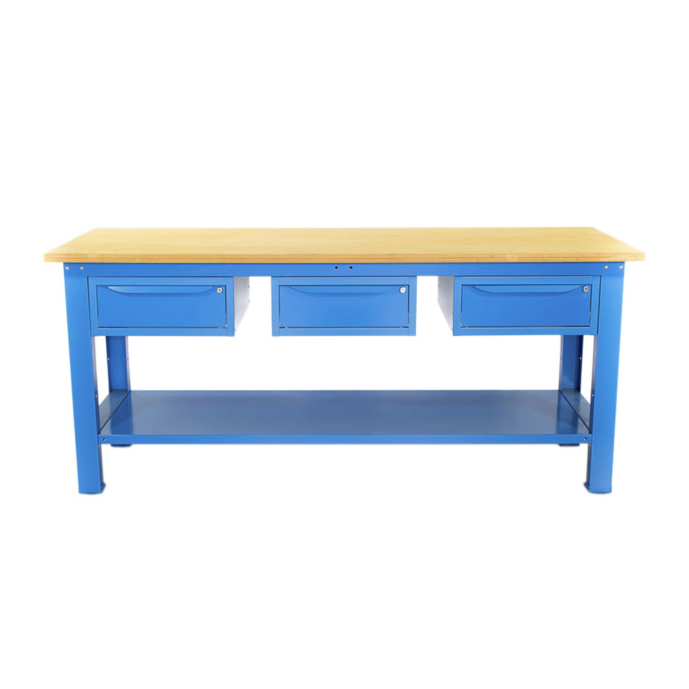Banco da lavoro SOGI 2 metri con piano in legno portata 1000 kg + 3 cassetti - blu/rosso