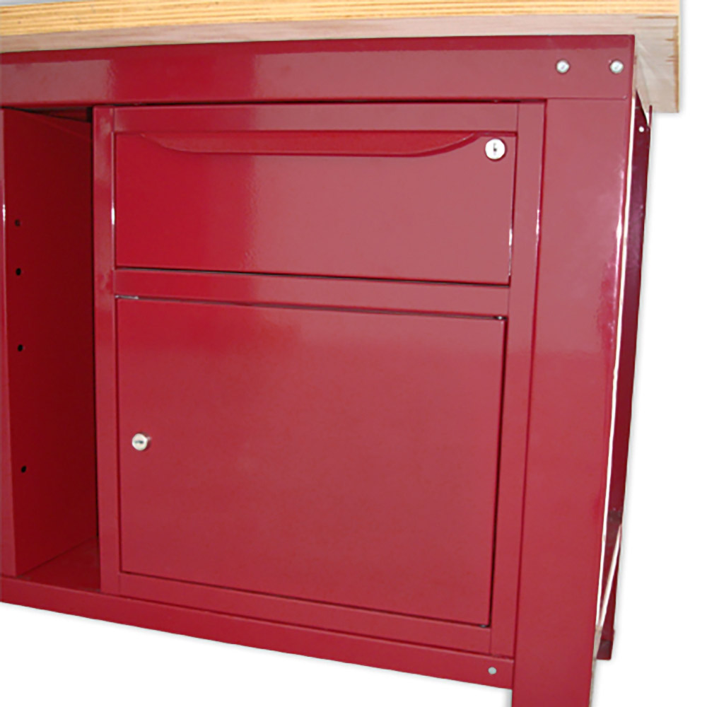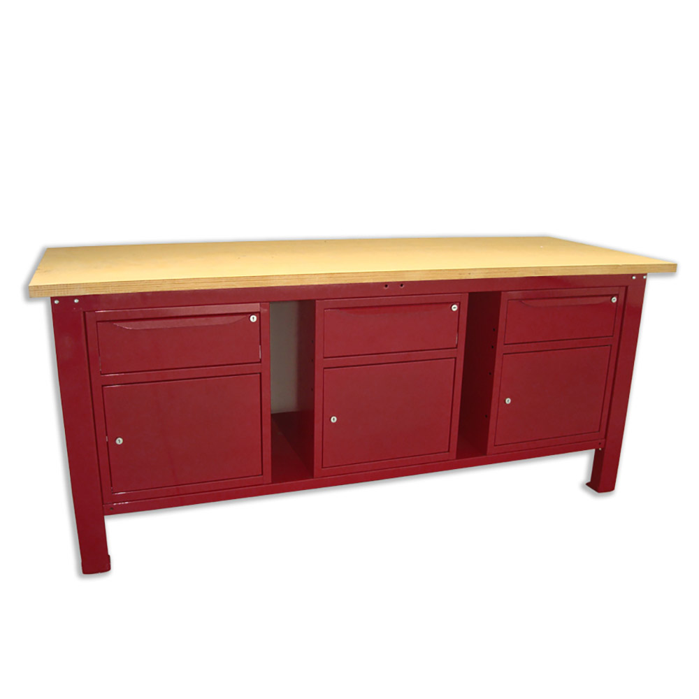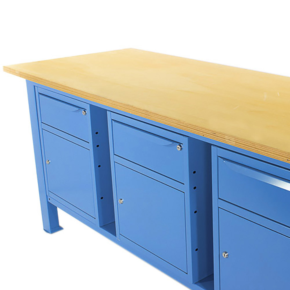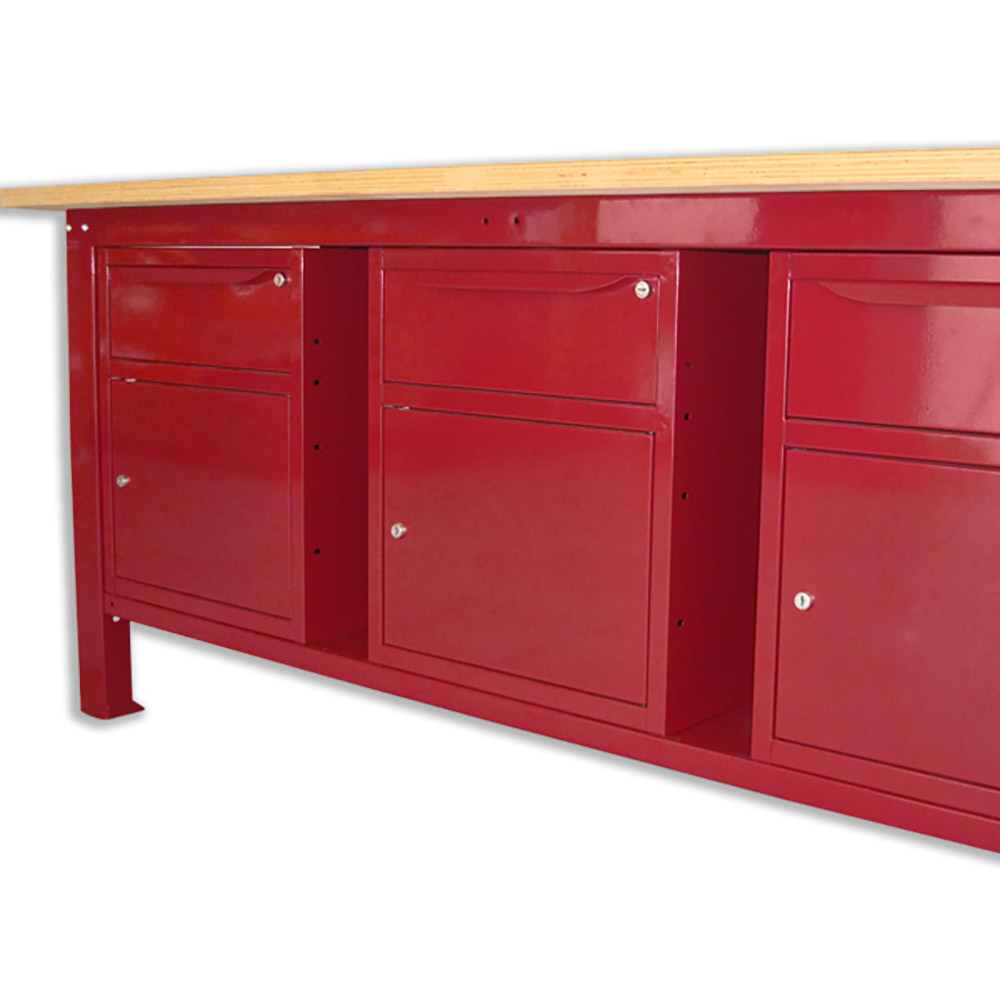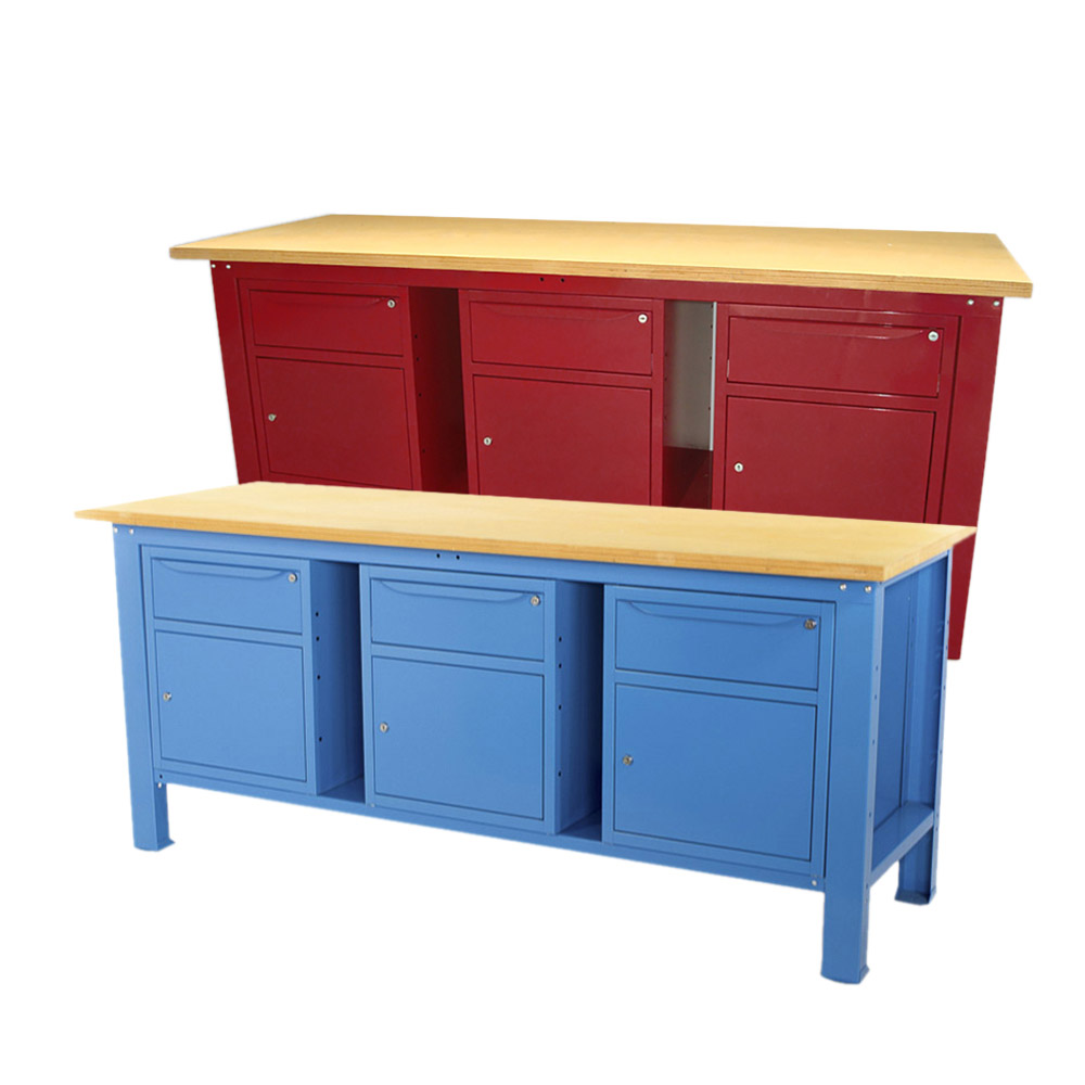 Banco da lavoro SOGI 2 metri con piano in legno + 3 armadi con anta e cassetto - blu/rosso