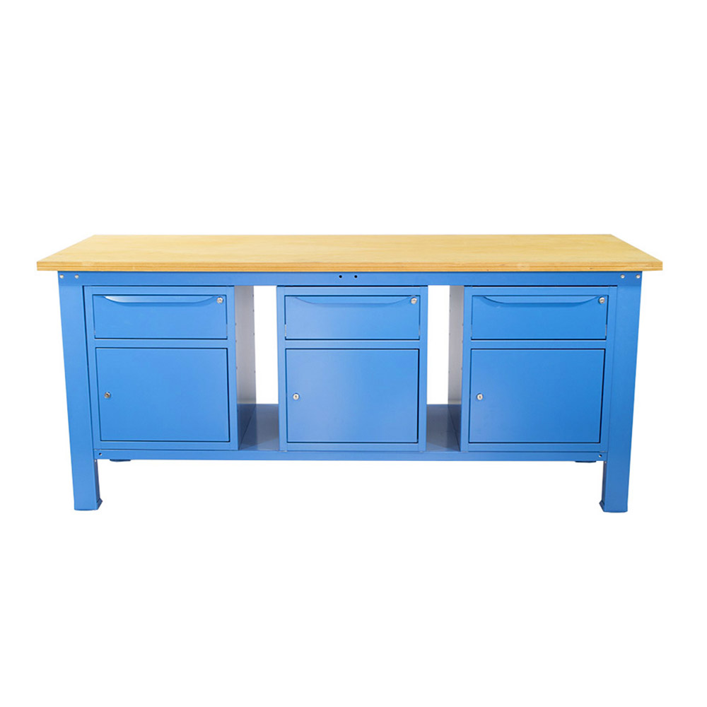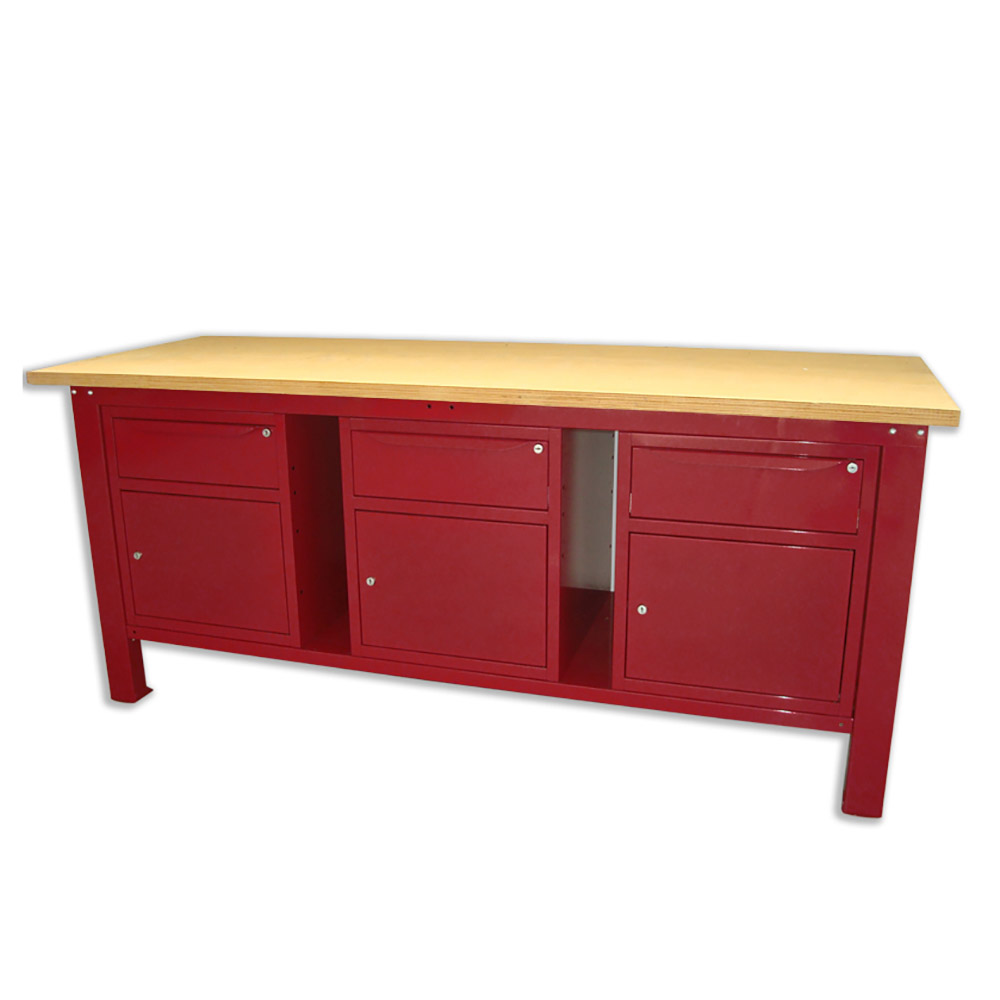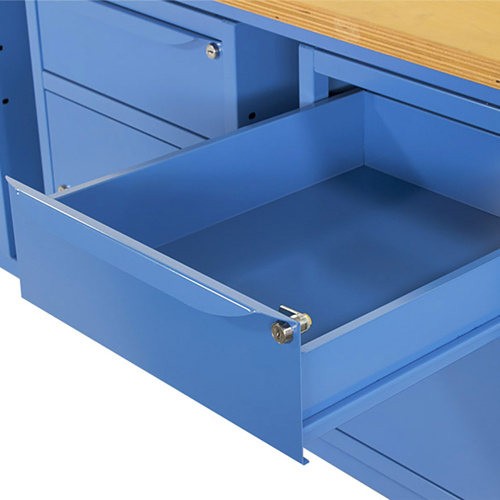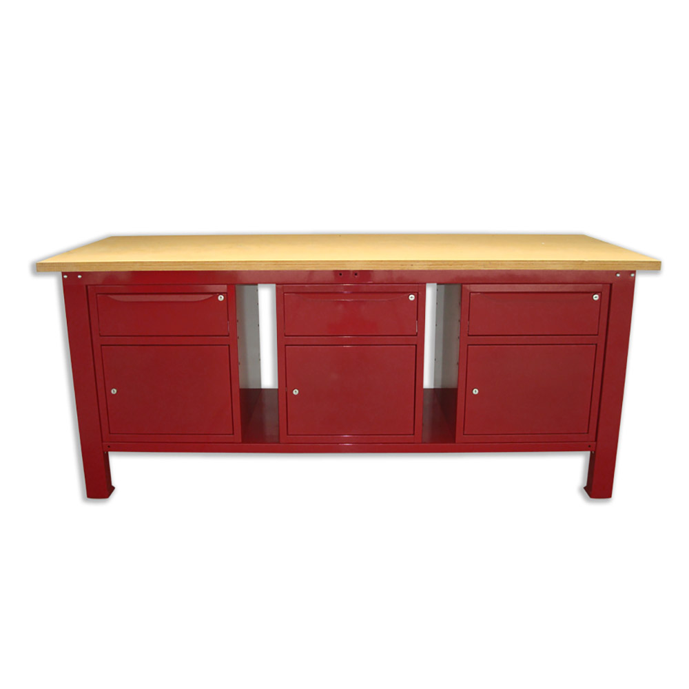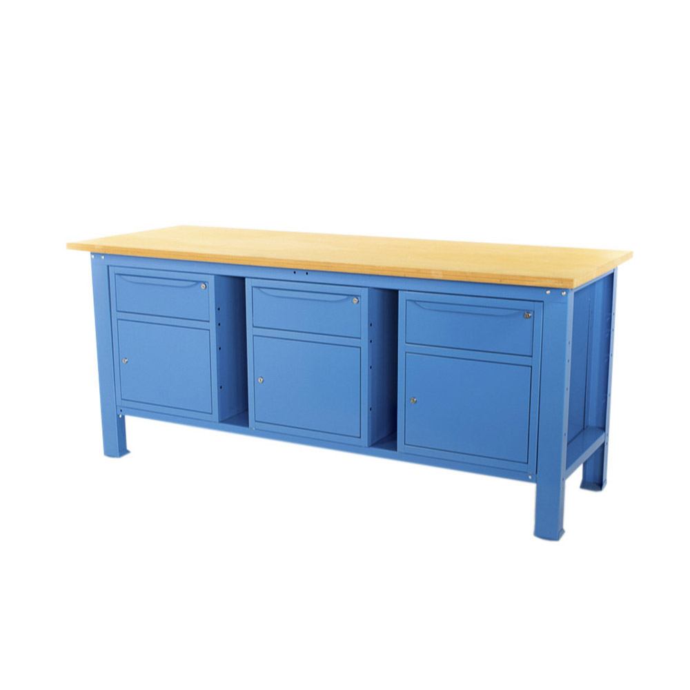 Banco da lavoro SOGI 2 metri con piano in legno + 3 armadi con anta e cassetto - blu/rosso