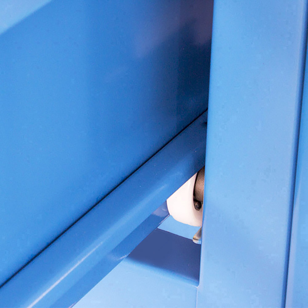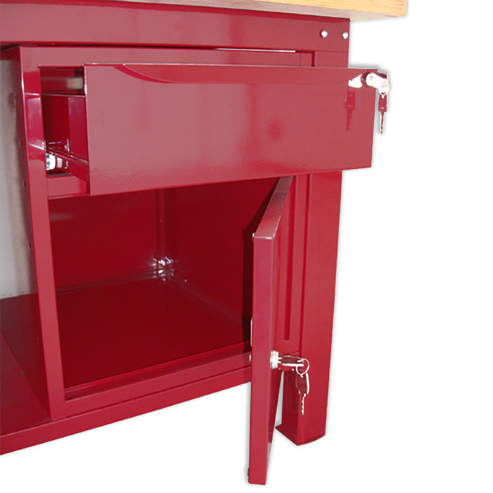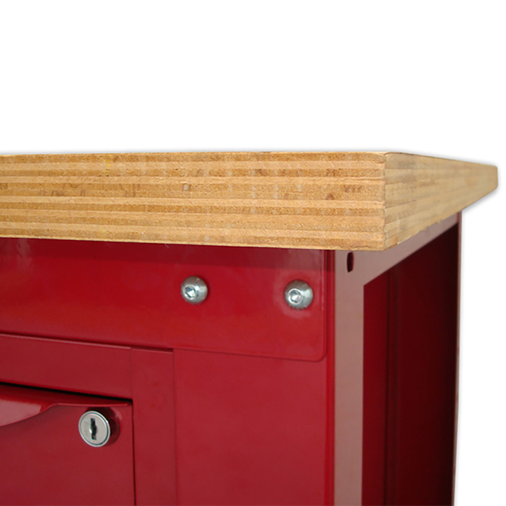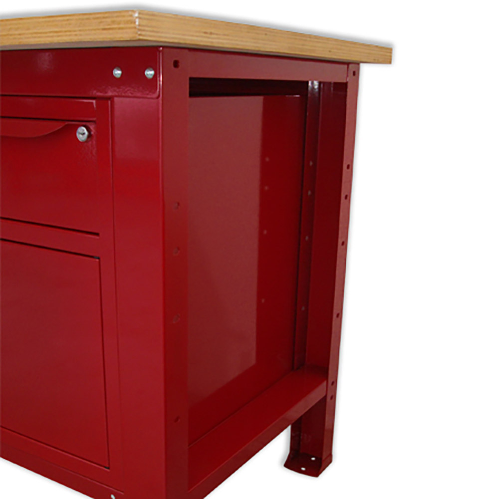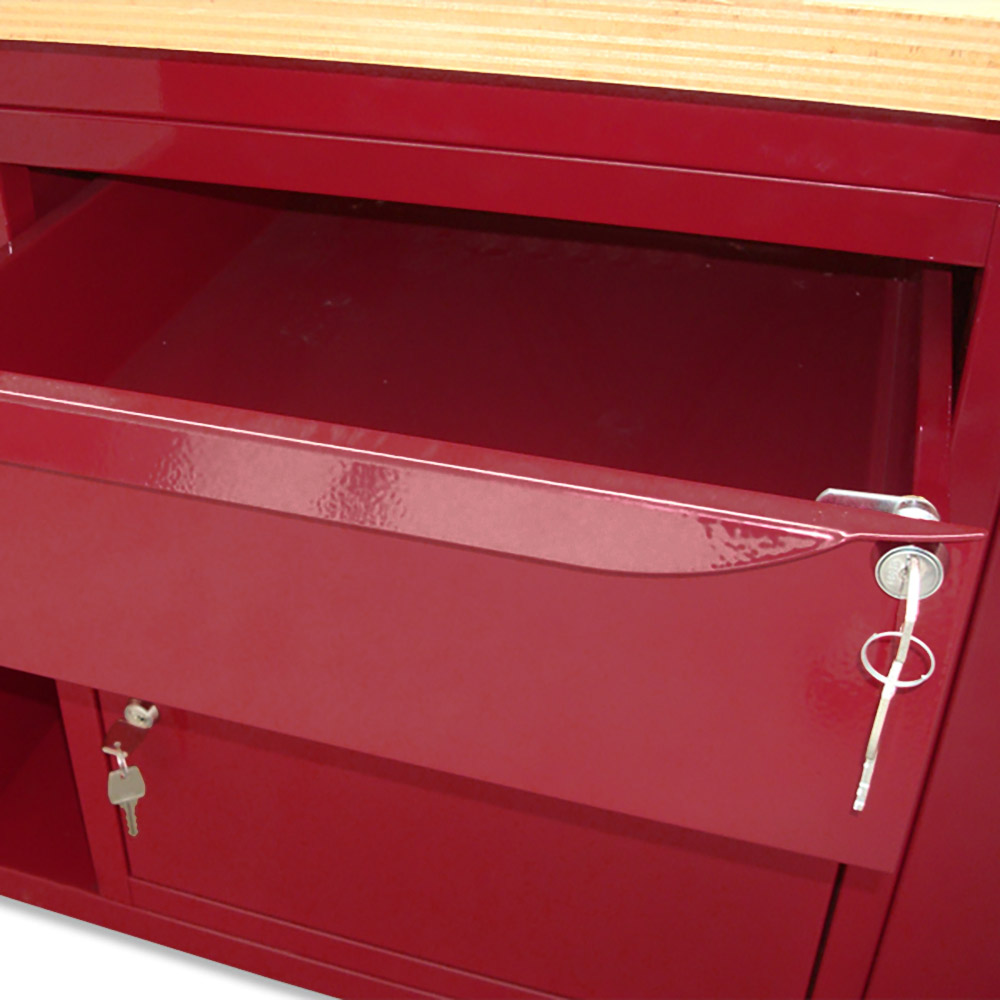 Banco da lavoro SOGI 2 metri con piano in legno + 3 armadi con anta e cassetto - blu/rosso