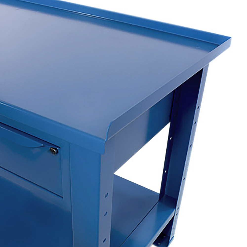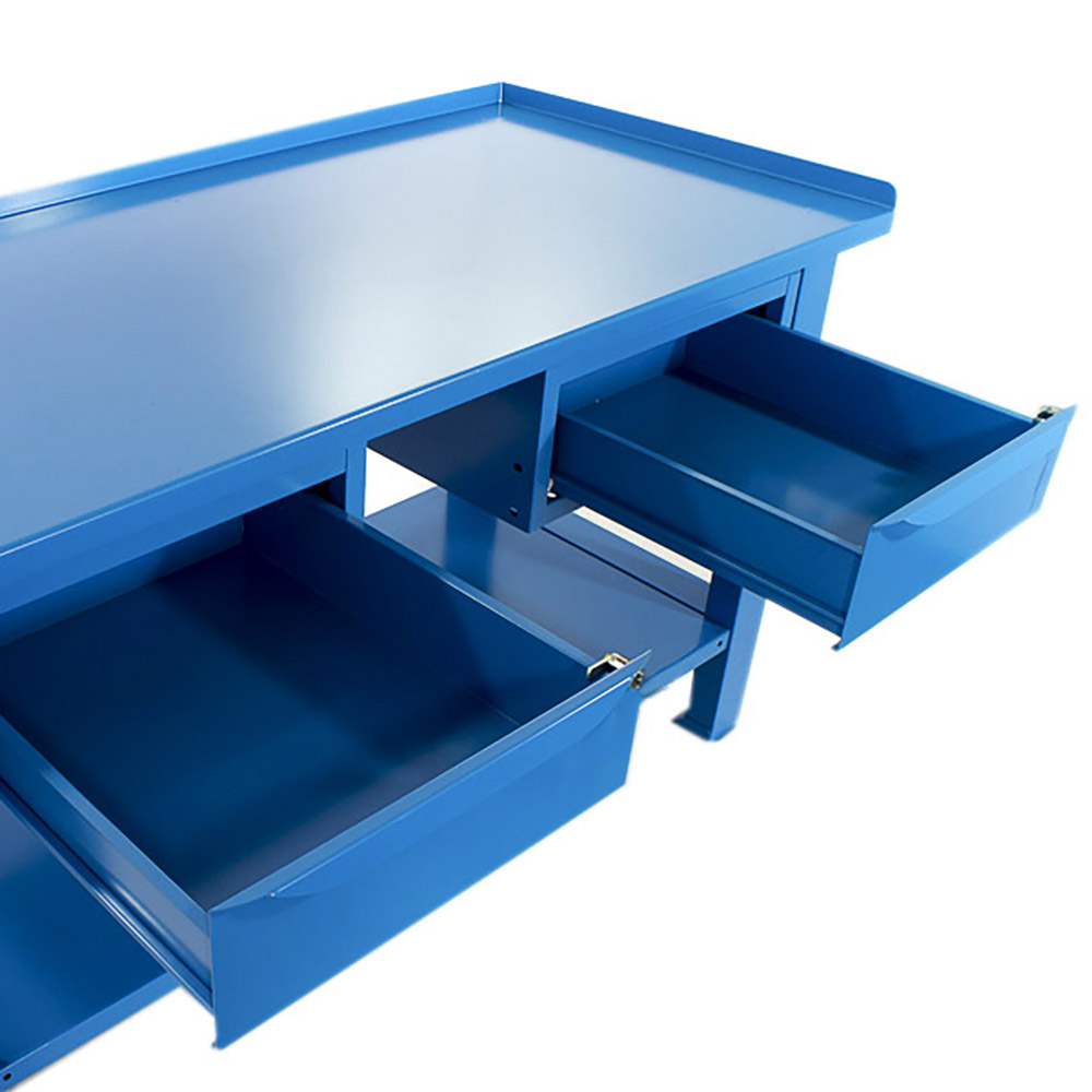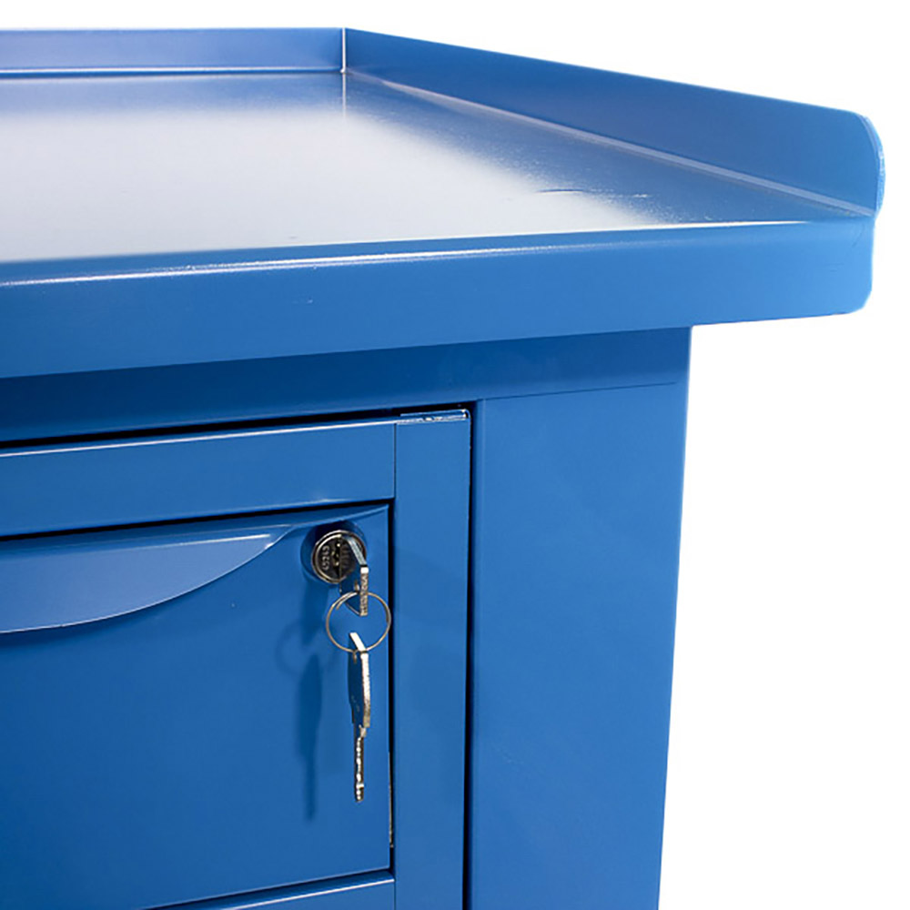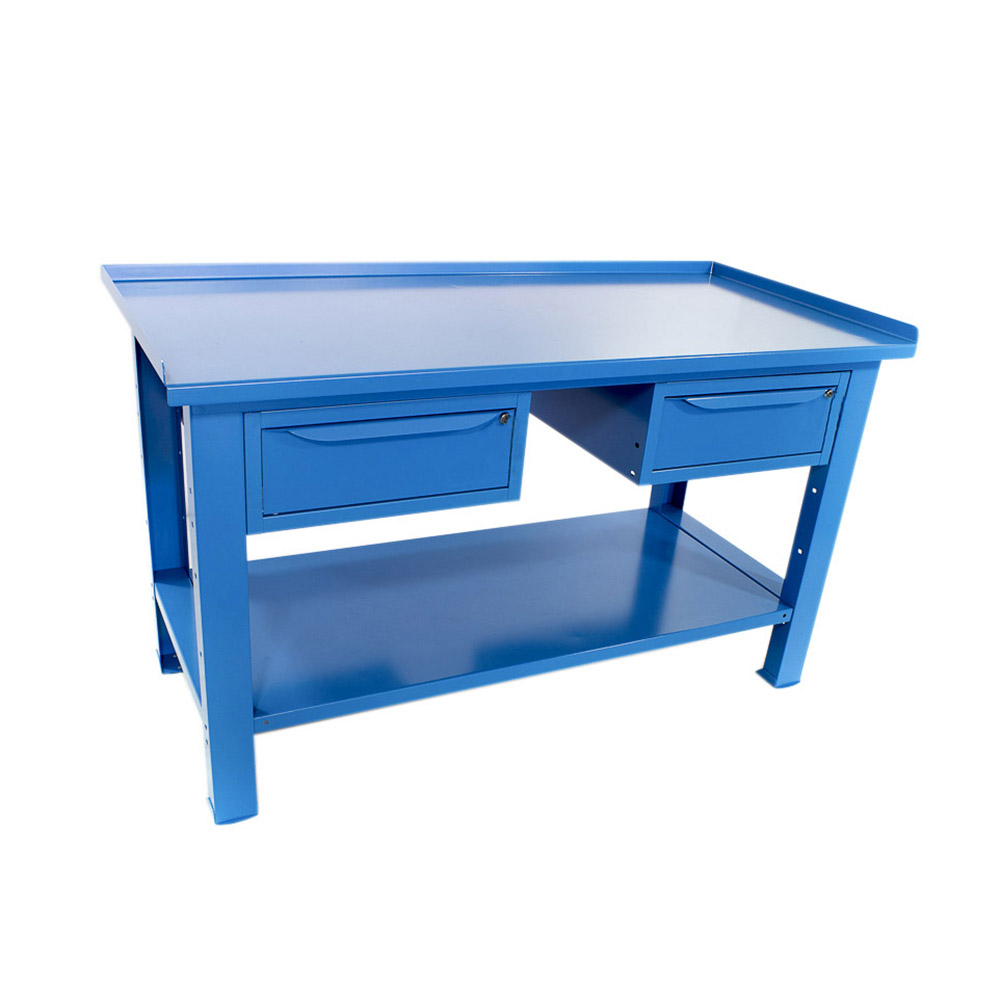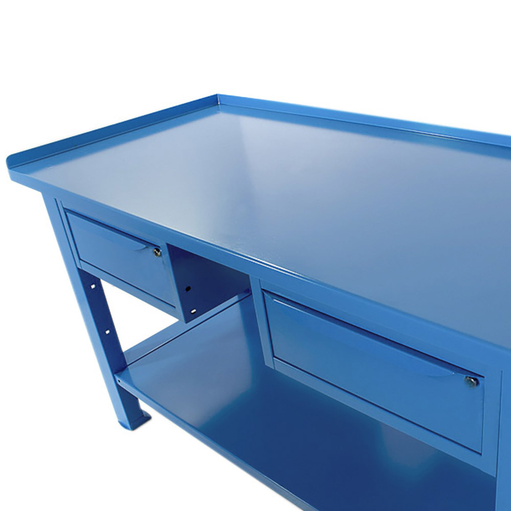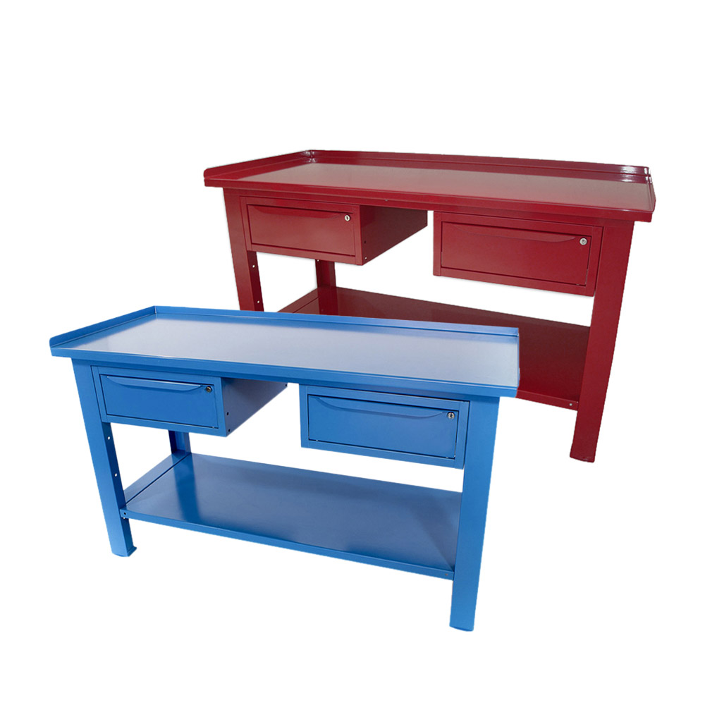 Banco da lavoro SOGI 1,5 metri con piano in acciaio portata 1000 kg + 2 cassetti - blu/rosso
