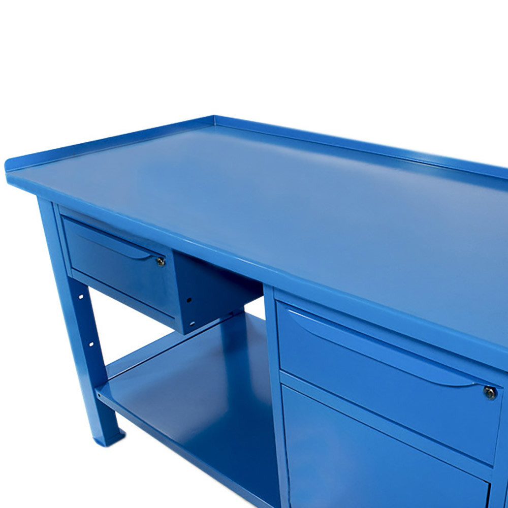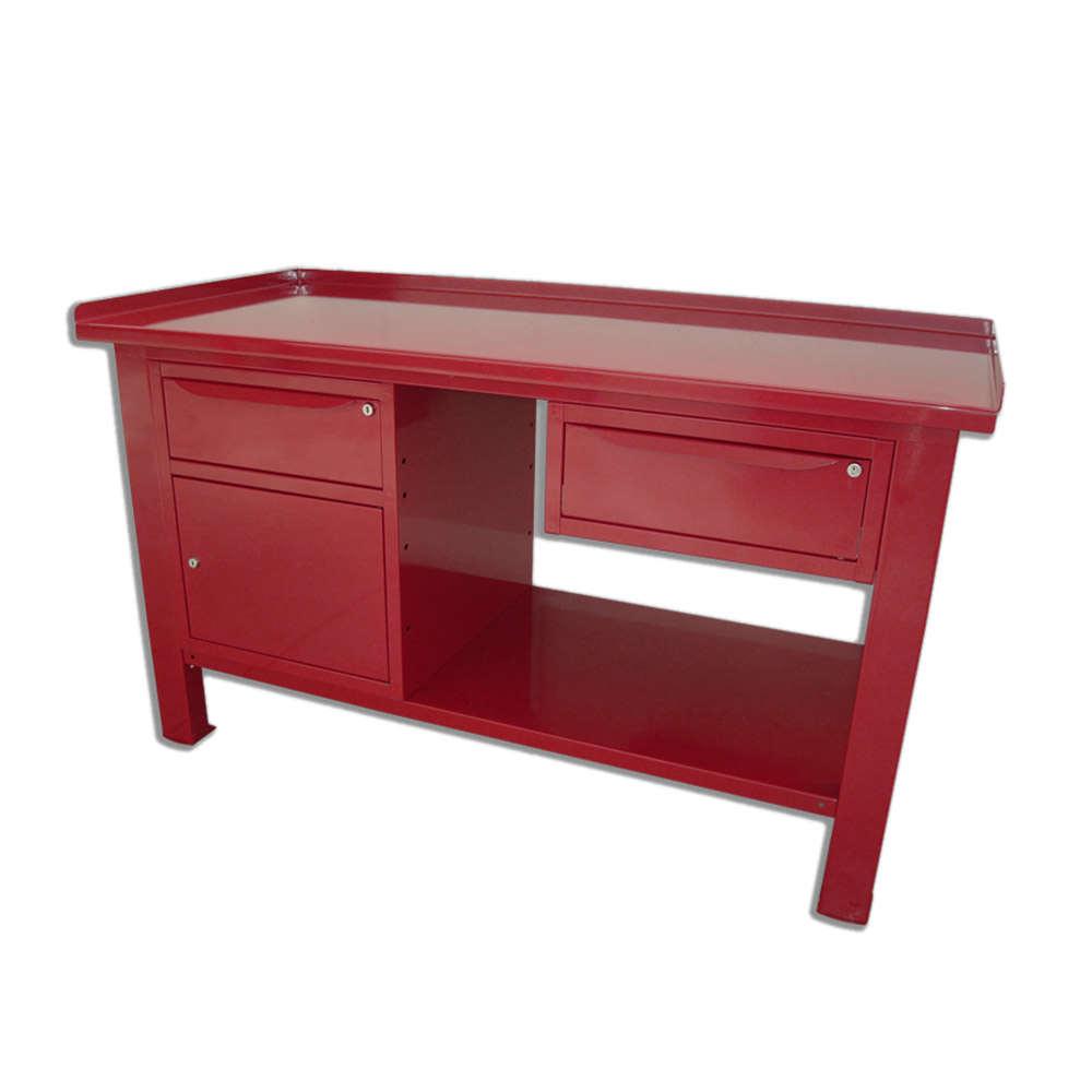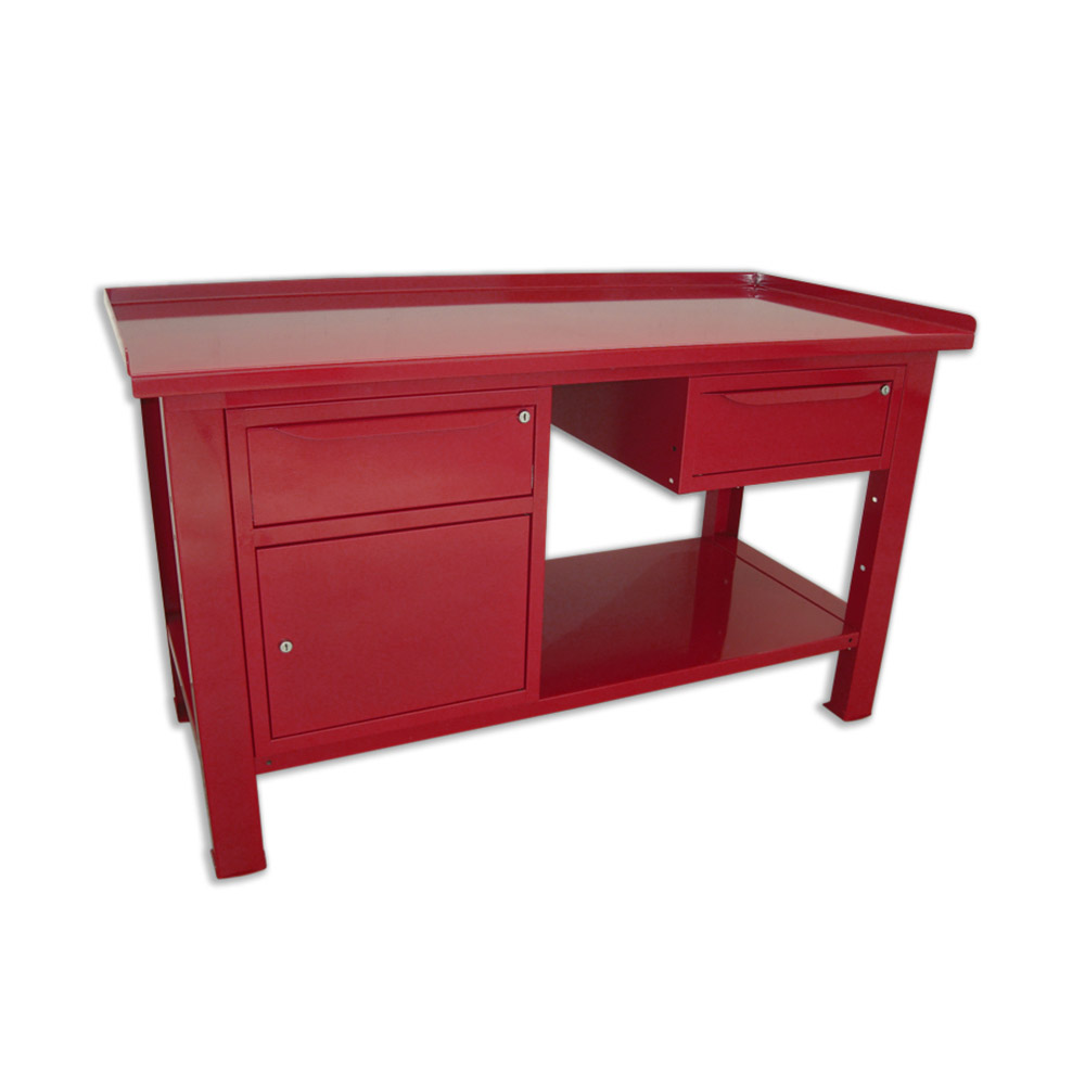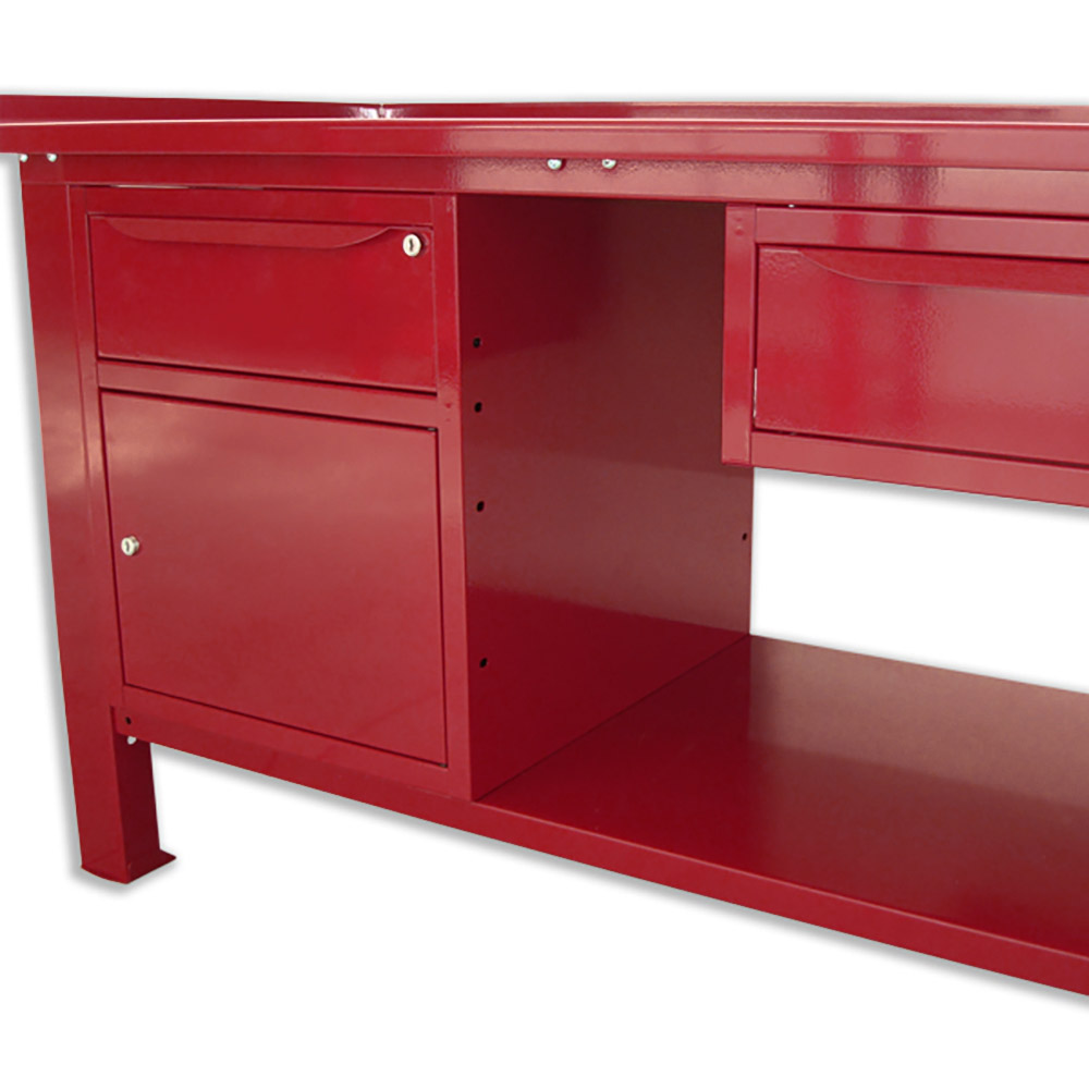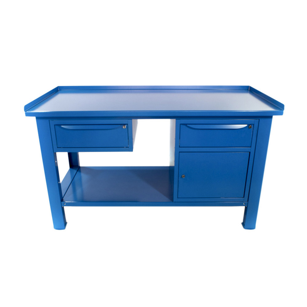 Banco da lavoro SOGI 1,5 m piano in acciaio + armadio con anta e cassetto + 1 cassetto - blu/rosso