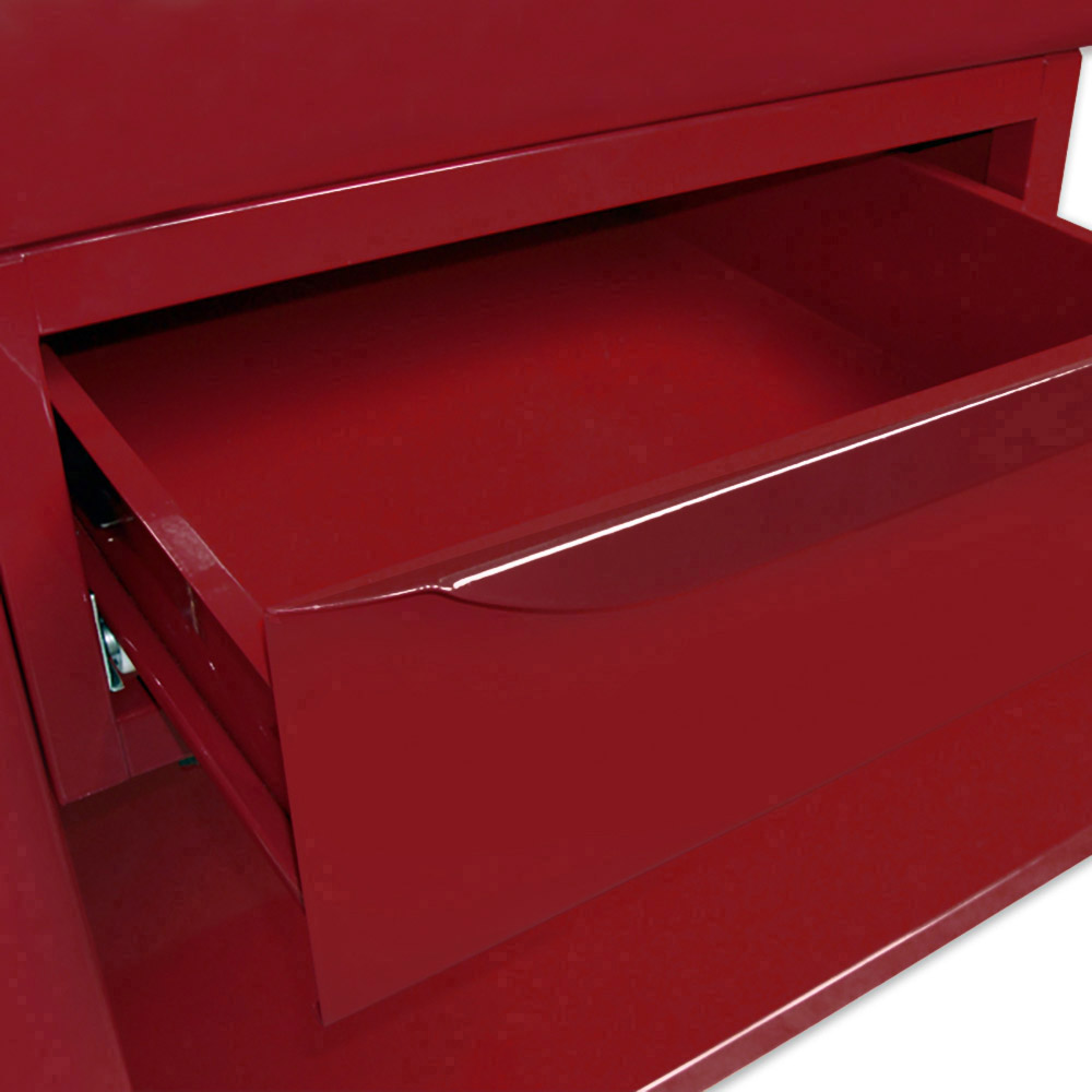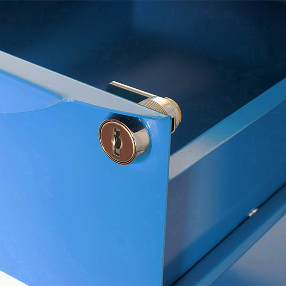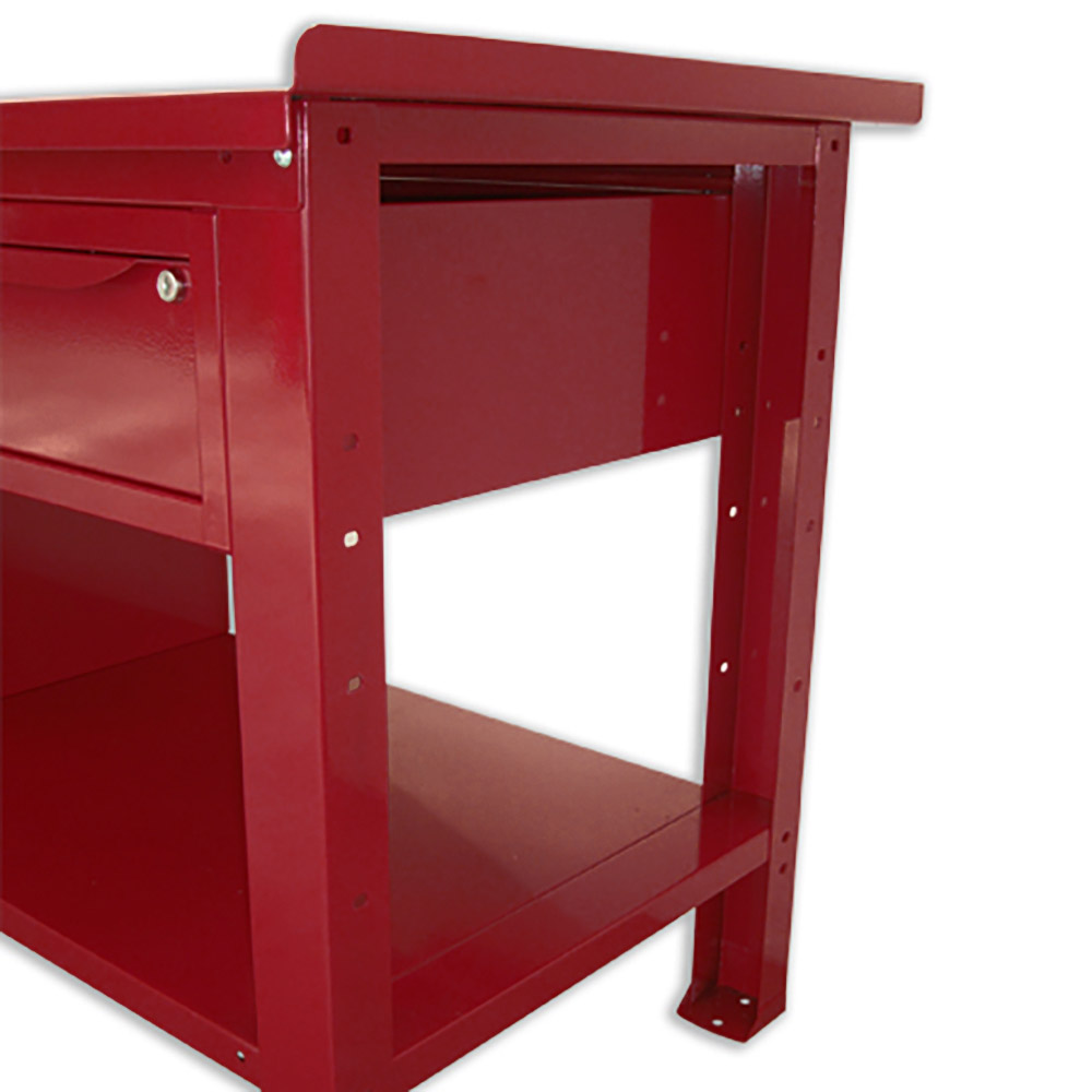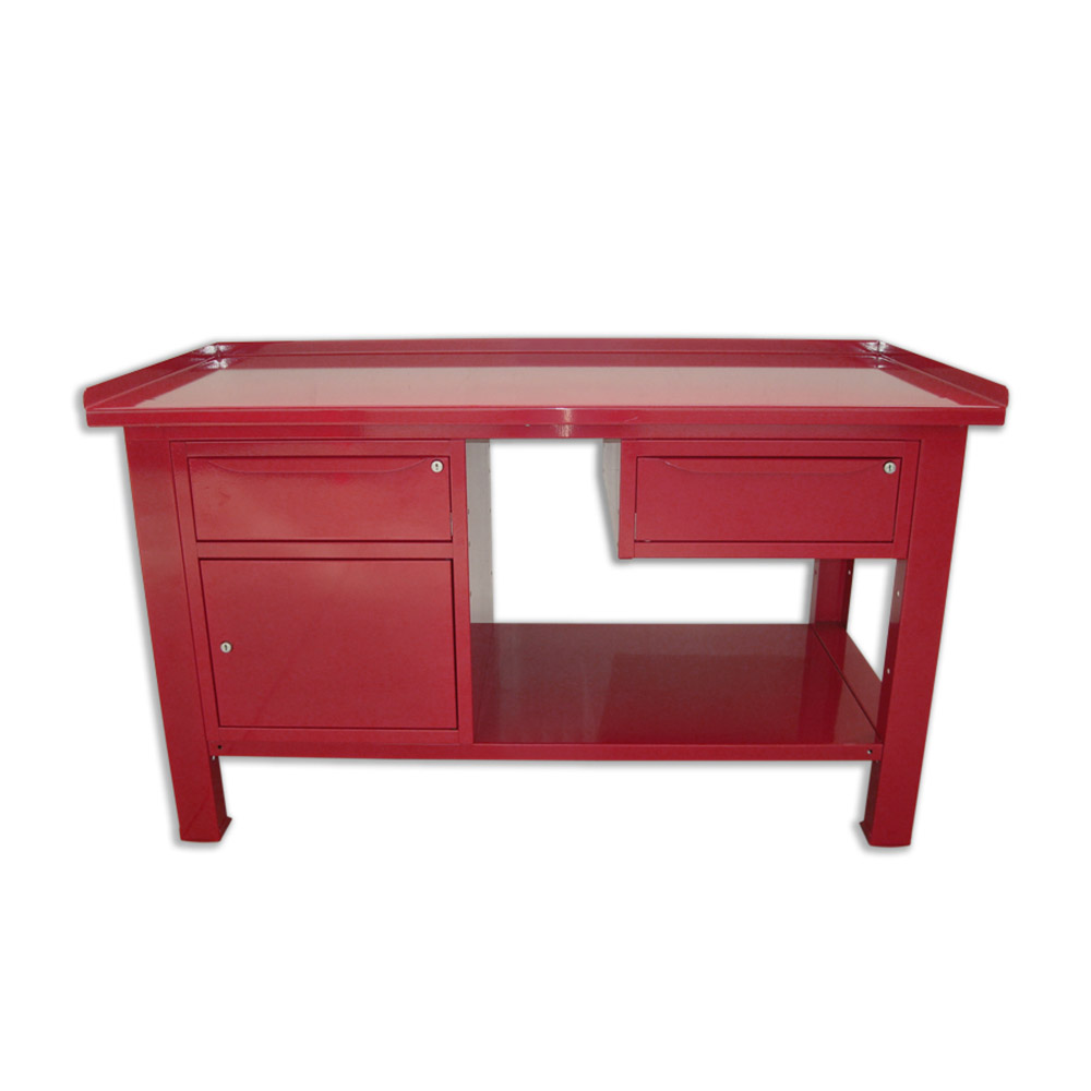 Banco da lavoro SOGI 1,5 m piano in acciaio + armadio con anta e cassetto + 1 cassetto - blu/rosso