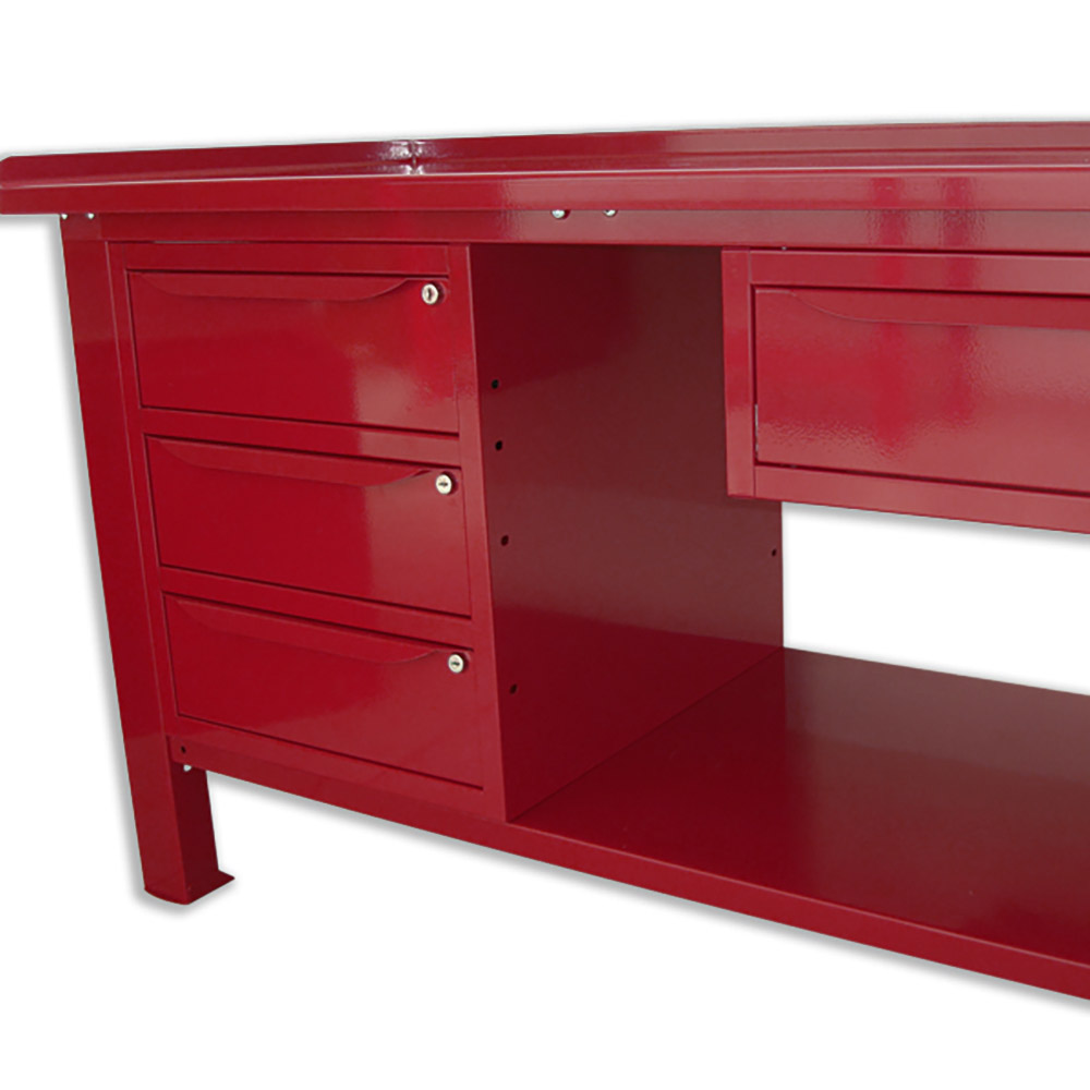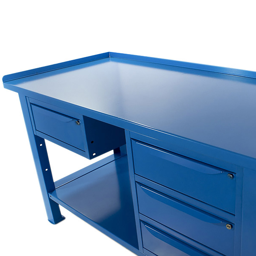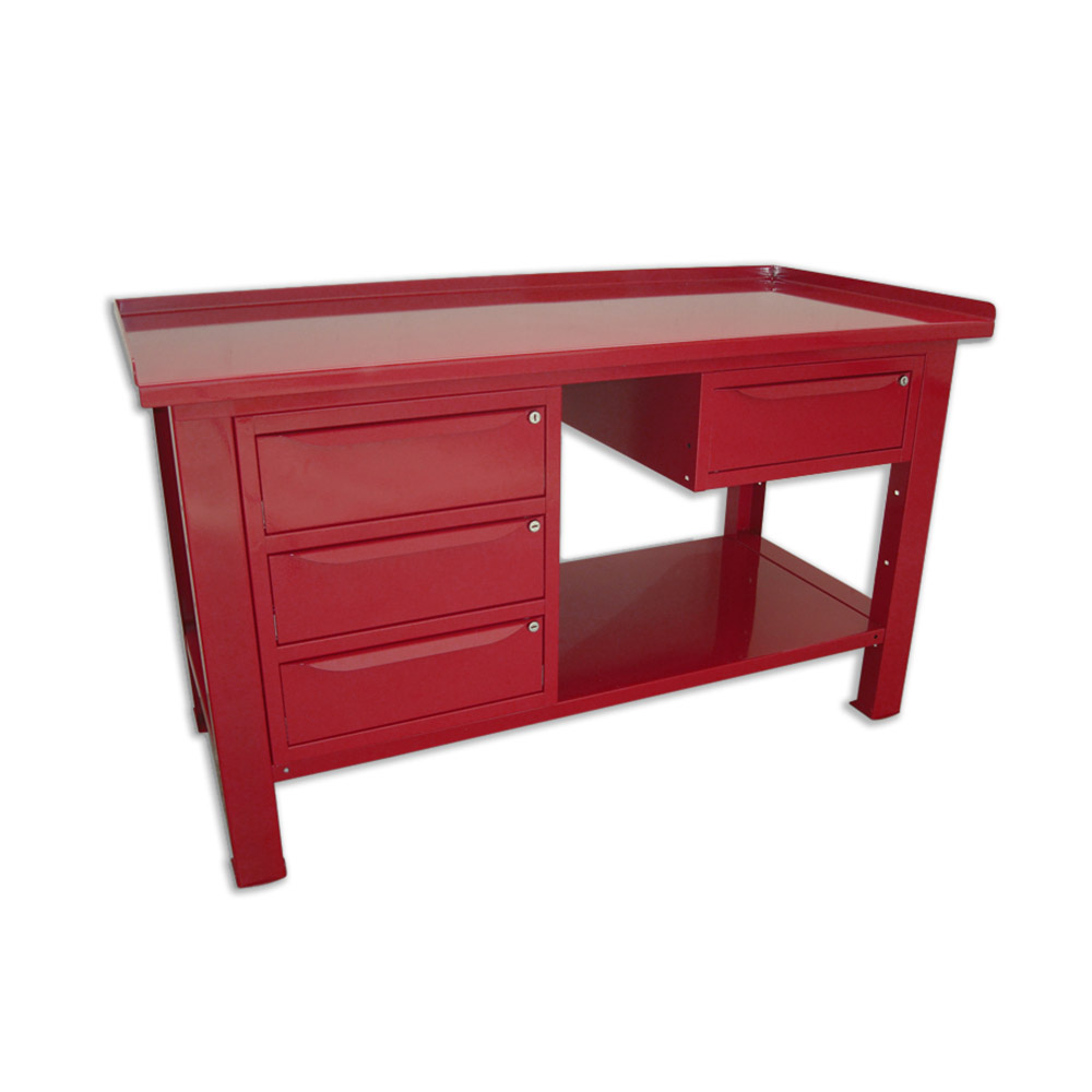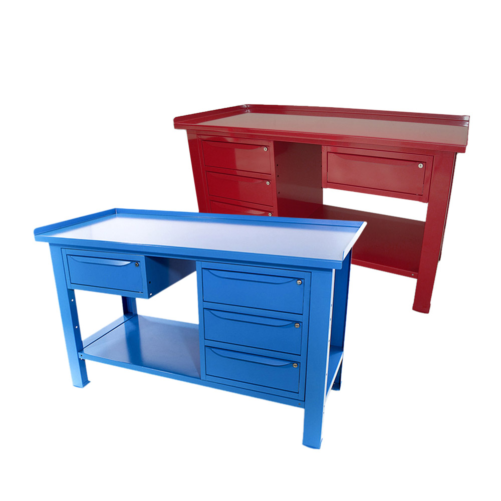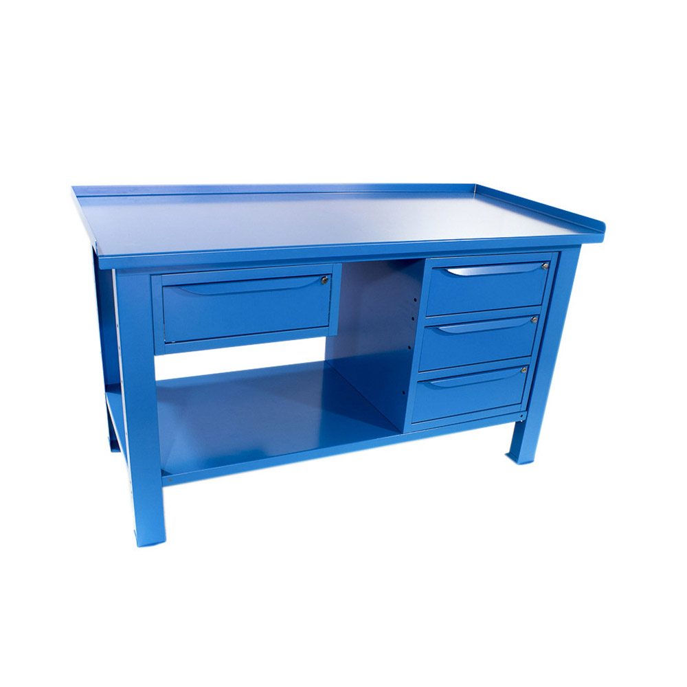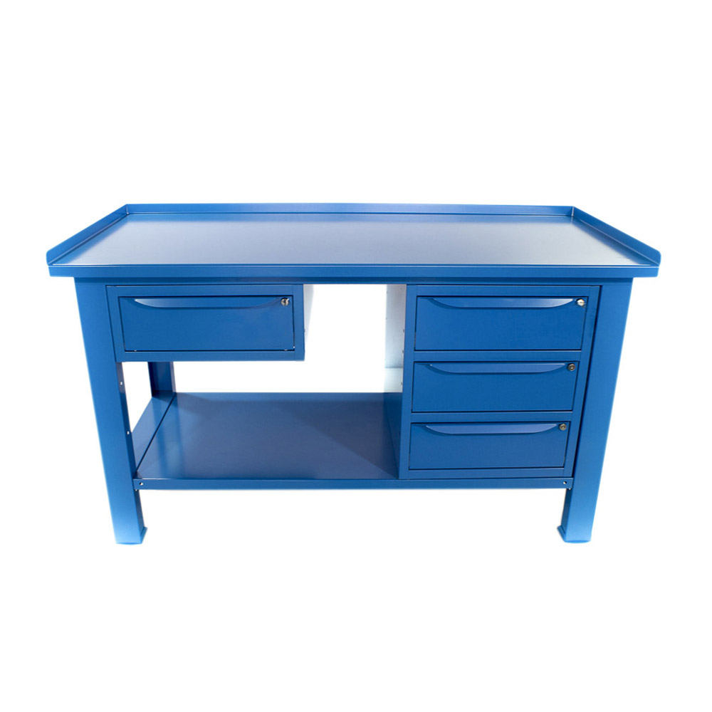 Banco da lavoro SOGI 1,5 metri con piano in acciaio + armadio a 3 cassetti + 1 cassetto - blu/rosso