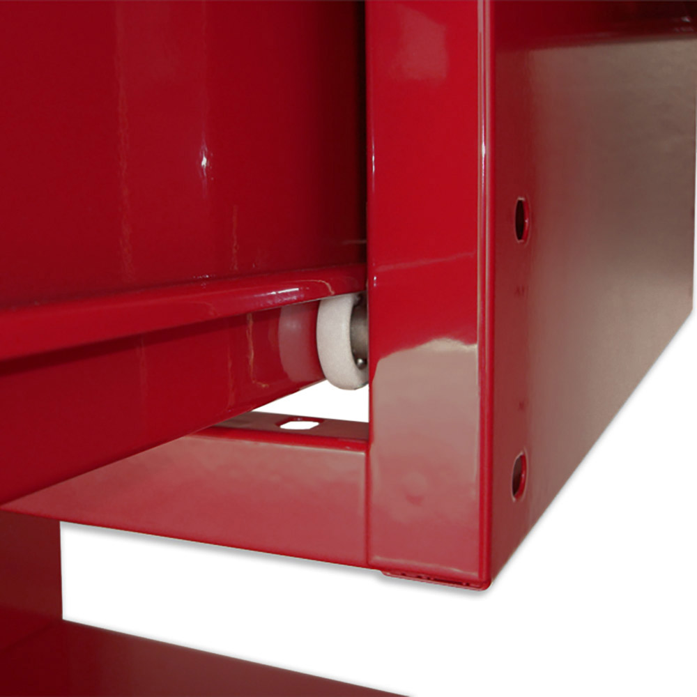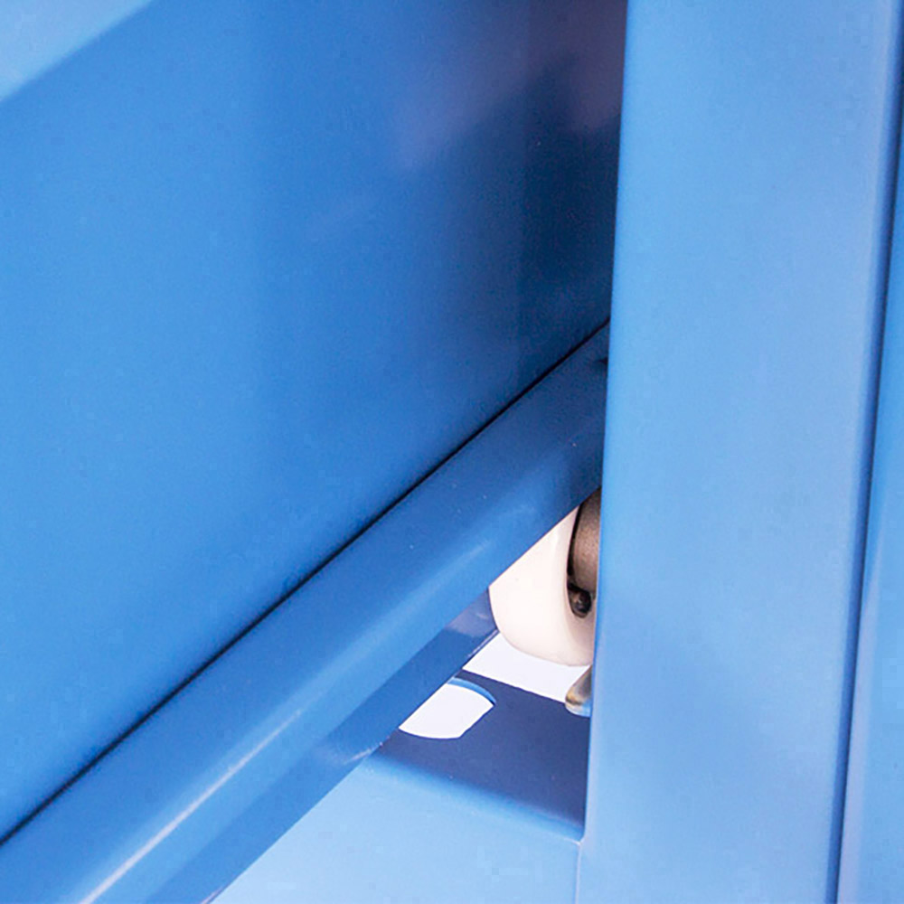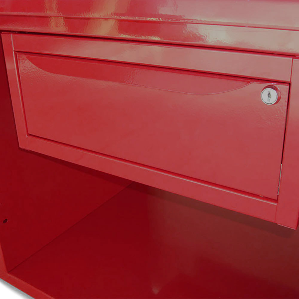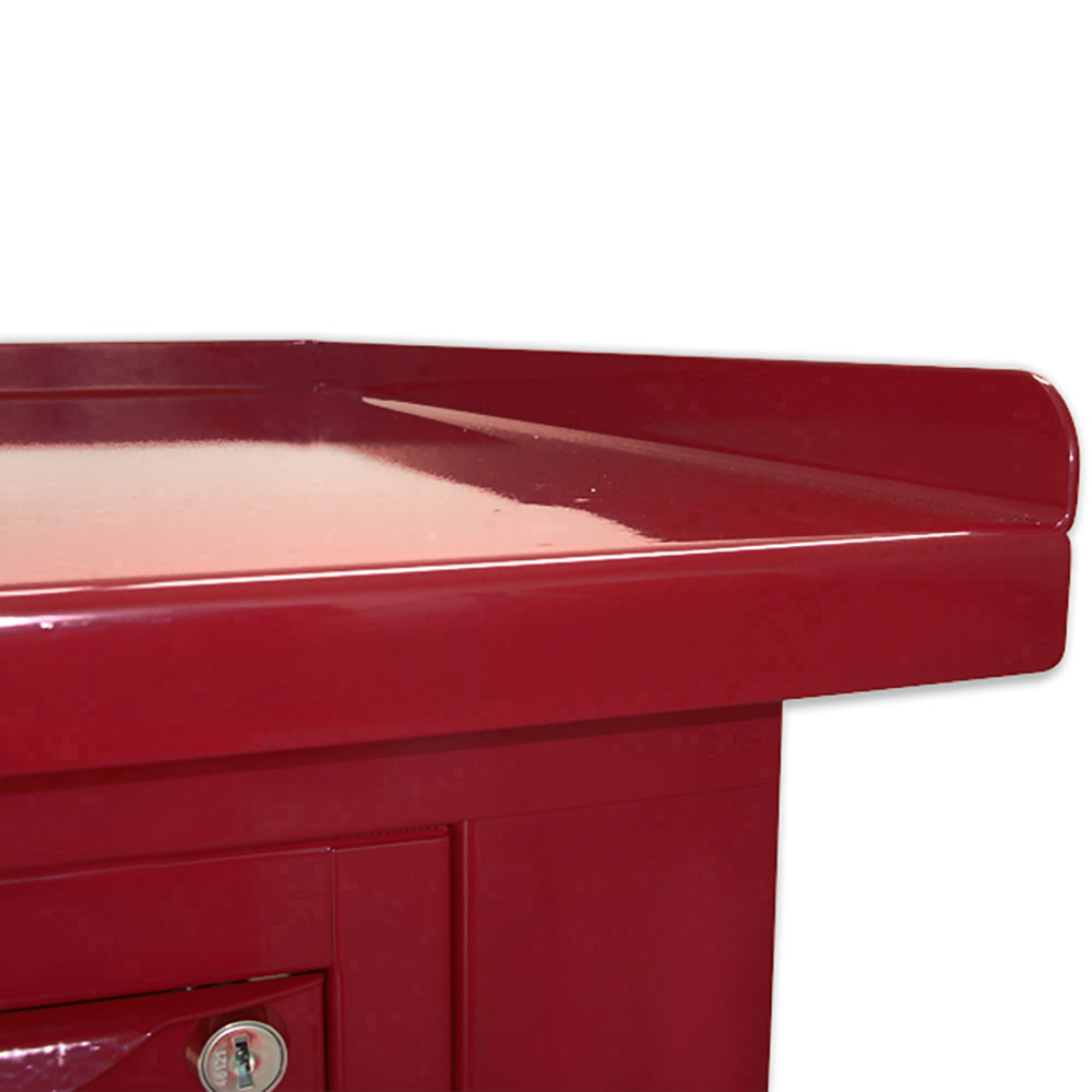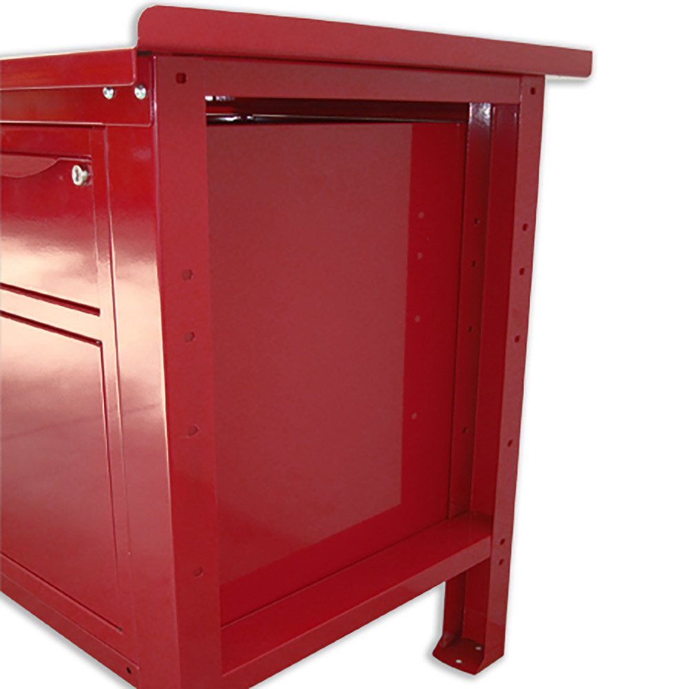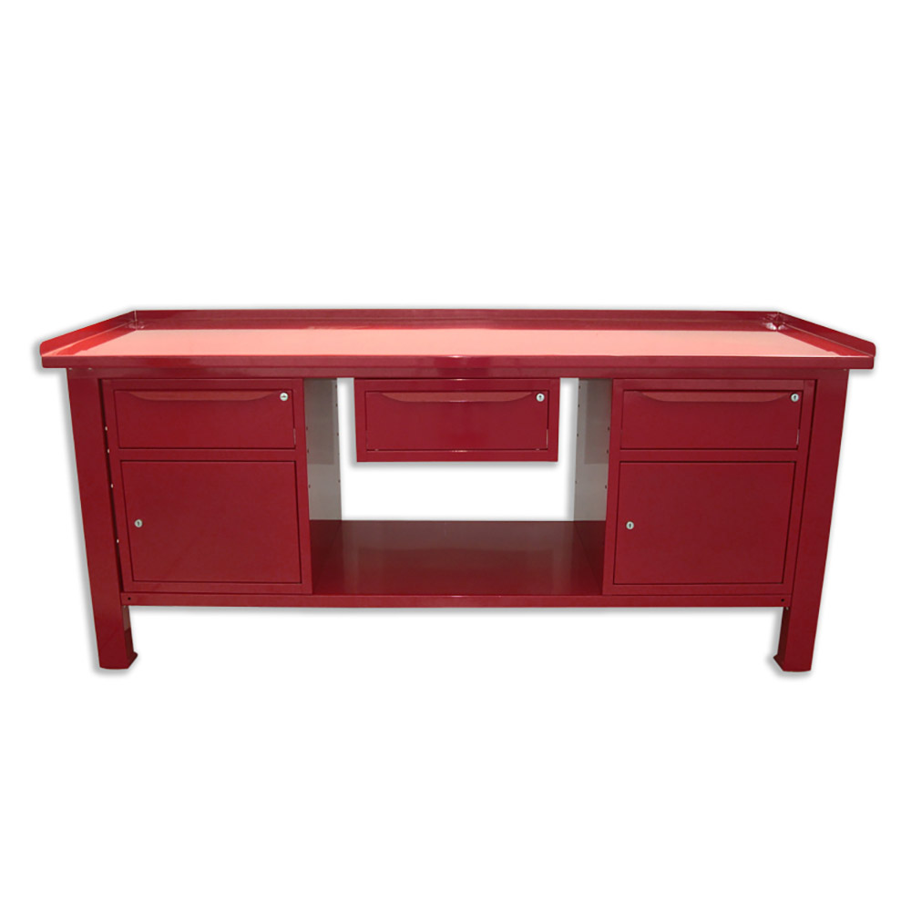 Banco lavoro SOGI 2m con piano in acciaio + 2 armadi con anta e cassetto + 1 casssetto - blu/rosso