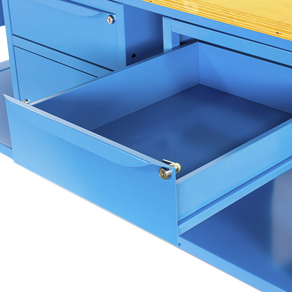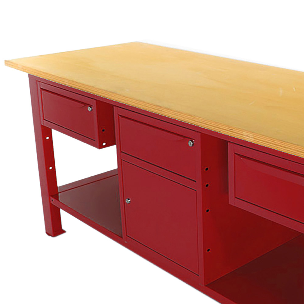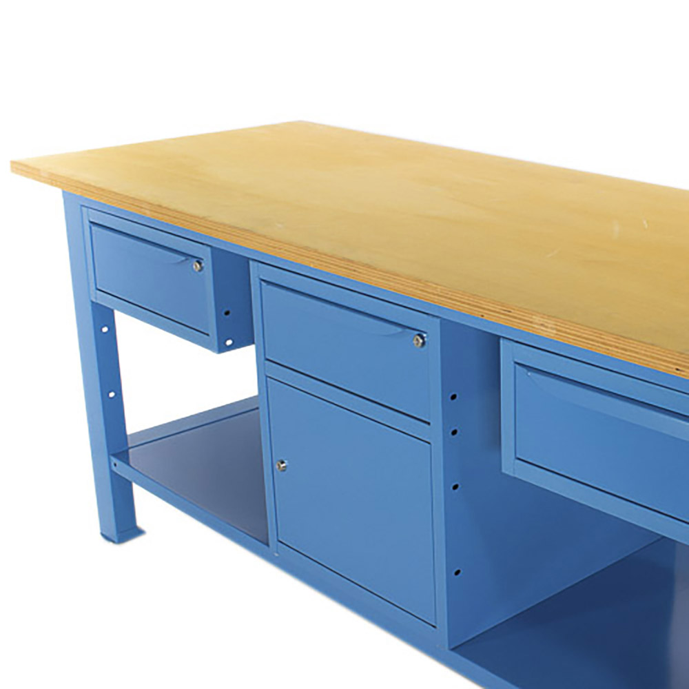 Banco lavoro SOGI 2m con piano in legno + armadio con anta e cassetto + 2 cassetti - blu/rosso