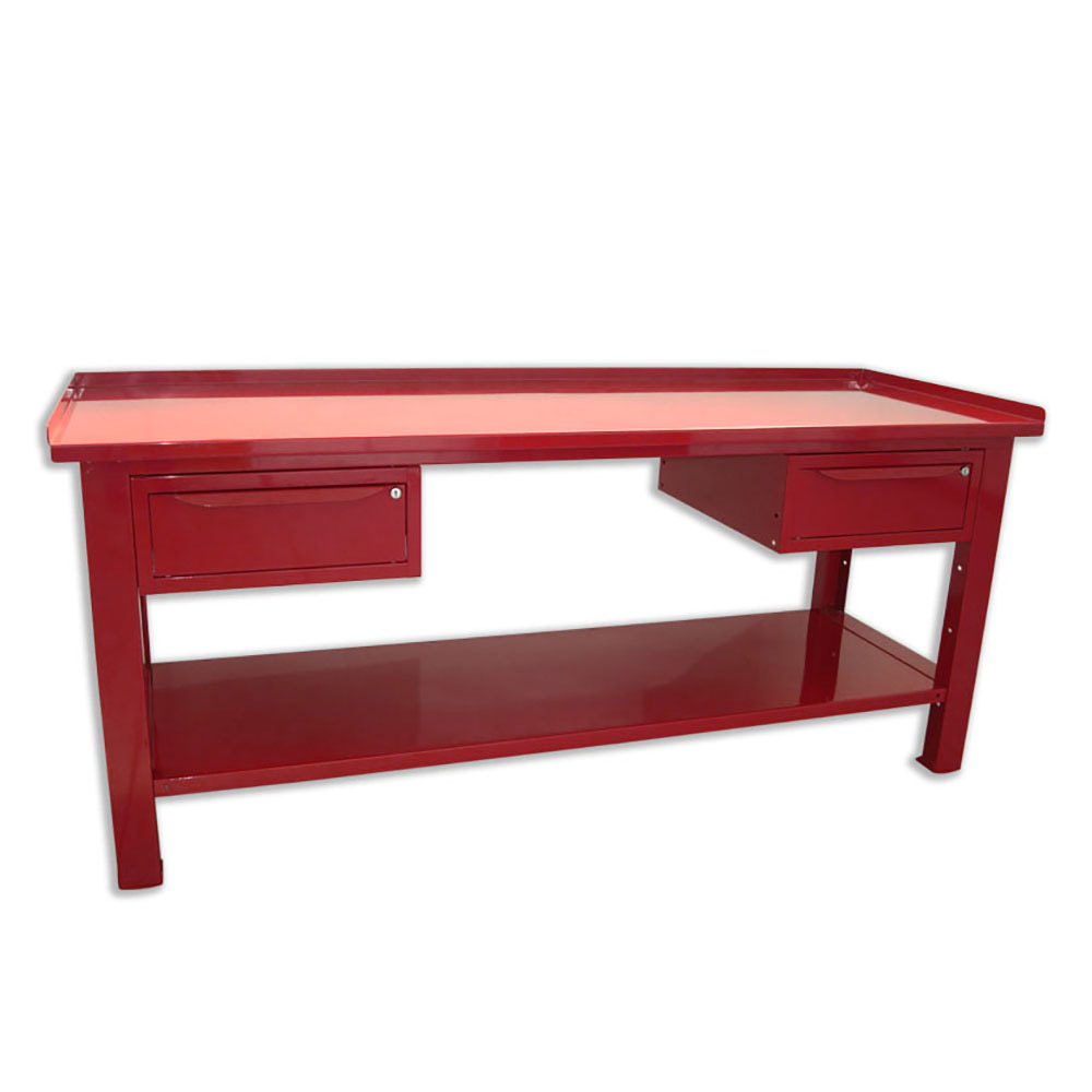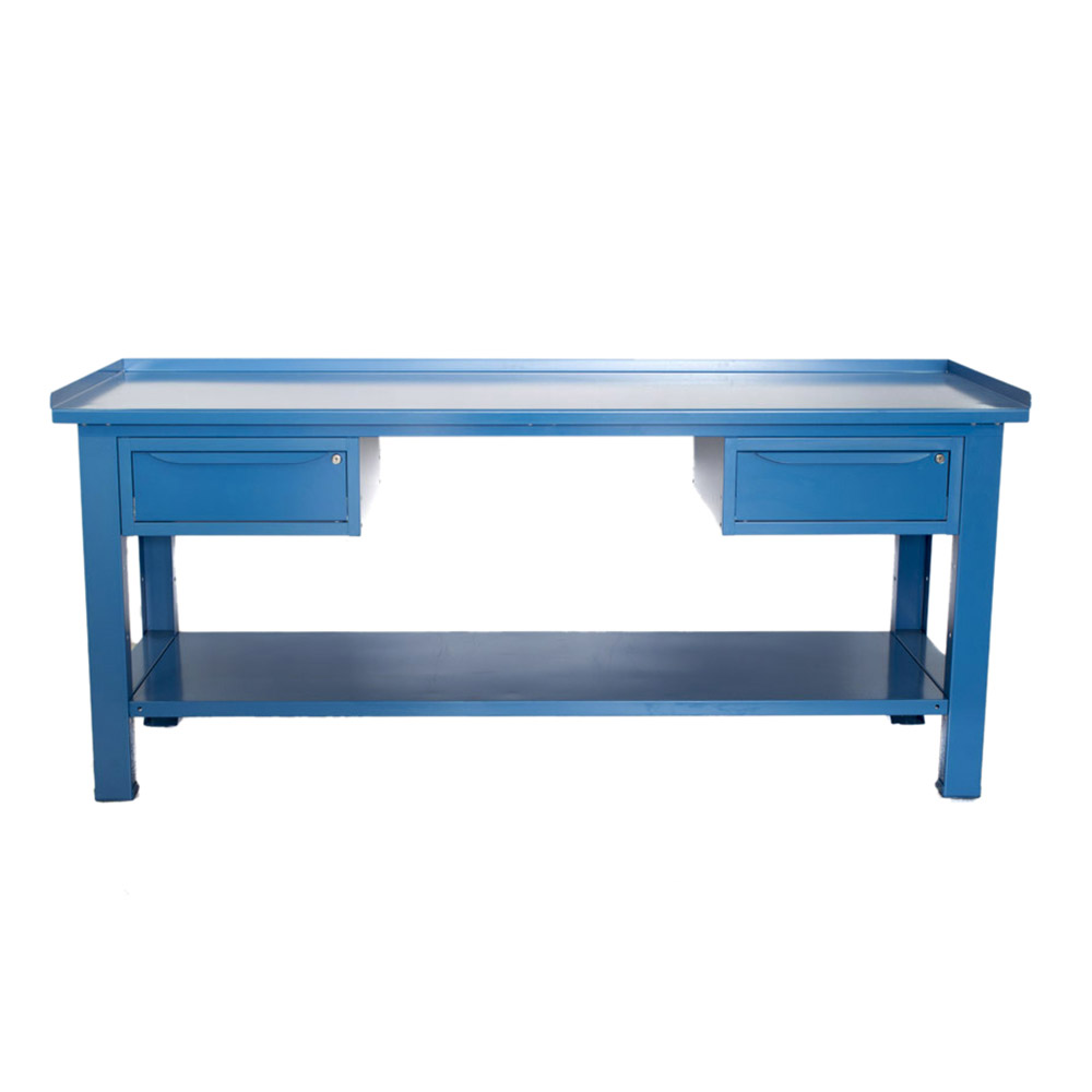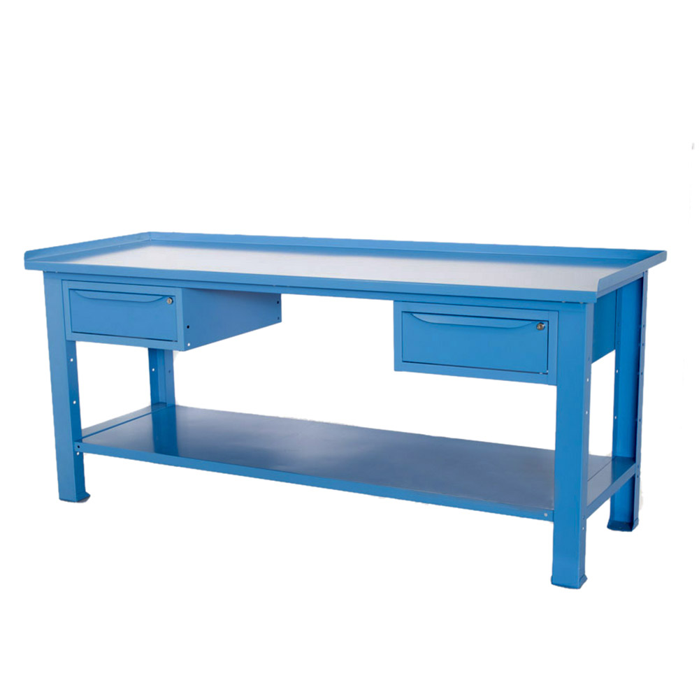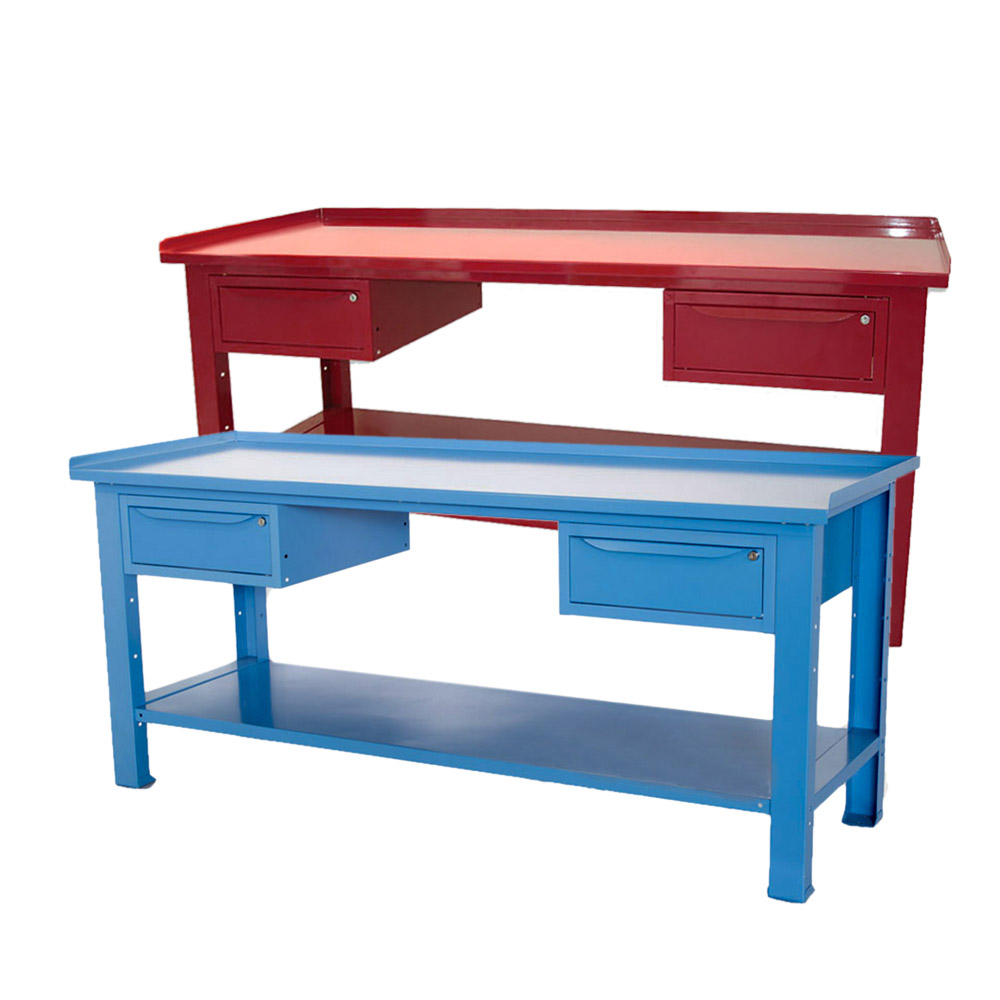 Banco da lavoro SOGI 2 metri con piano in acciaio portata 1000 kg + 2 cassetti - blu/rosso