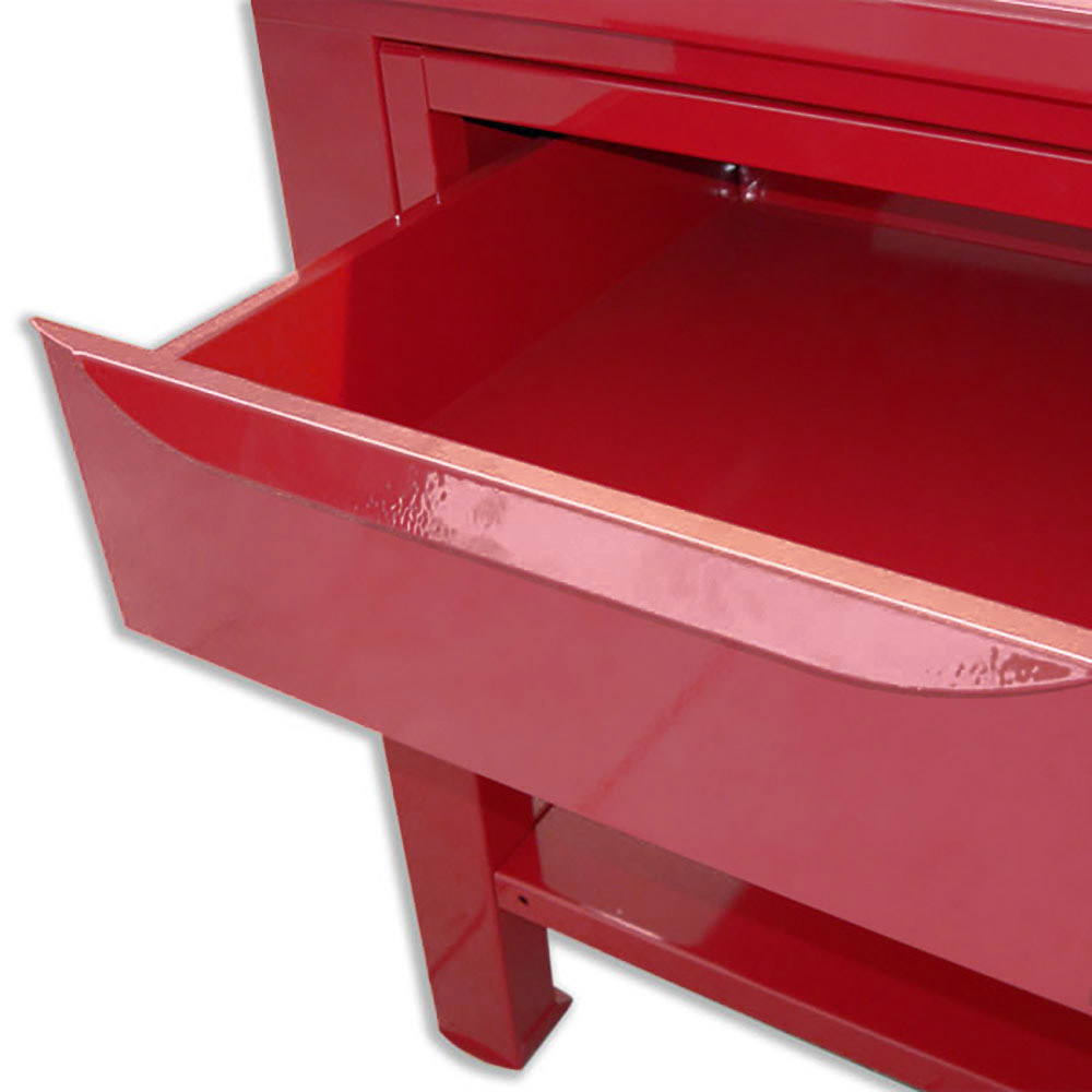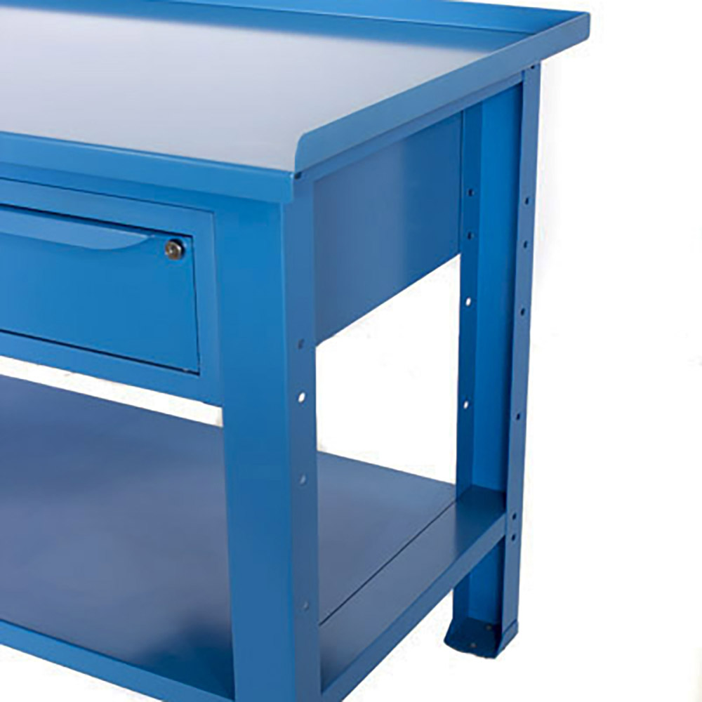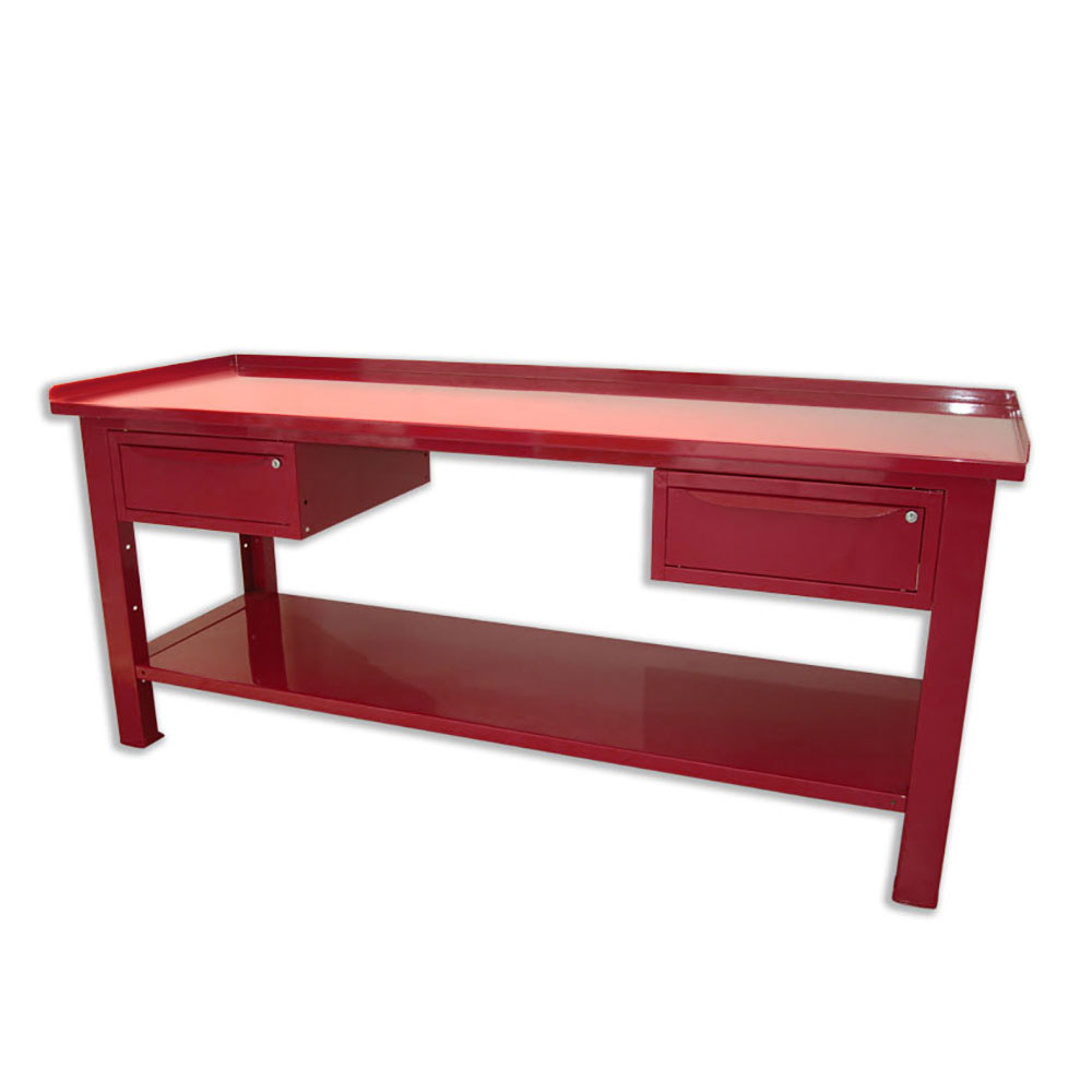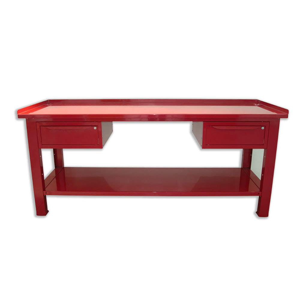 Banco da lavoro SOGI 2 metri con piano in acciaio portata 1000 kg + 2 cassetti - blu/rosso