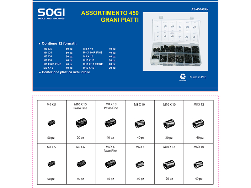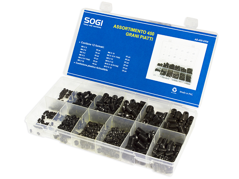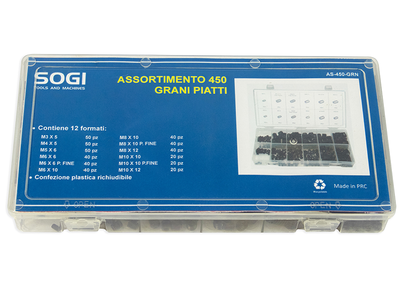 ASSORTIMENTO SET SERIE DI 450 GRANI PIATTI ACCIAIO DA M3 A M10 SOGI AS-450-GRN