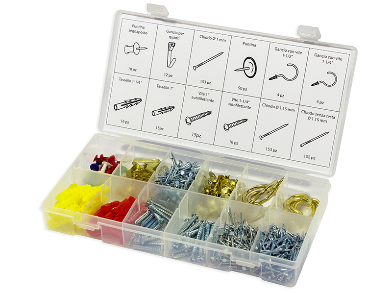 NUOVO ASSORTIMENTO SET SERIE DI 600 GANCI CHIODI VITI TASSELLI MURO PER CASA SOGI