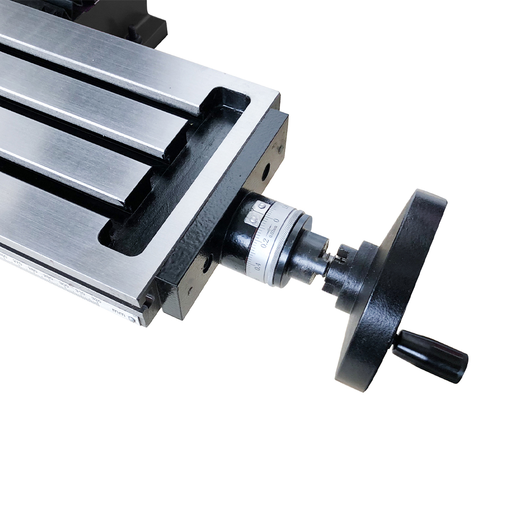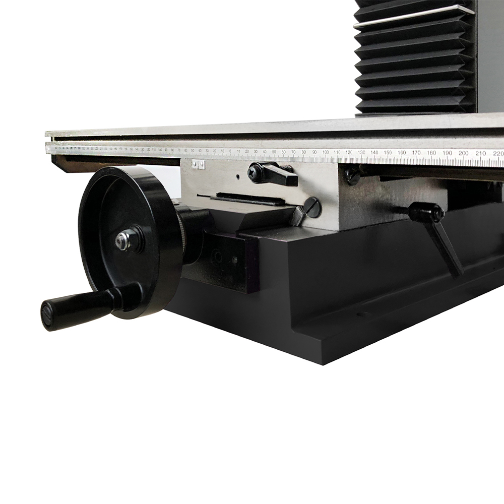 La fresatrice manuale SOGI S3-50 è provvista di volantini con noni graduati per gli spostamenti longitudinali e trasversali della tavola portapezzo, per l'avanzamento della testa e per la discesa/salita micrometrica del cannotto. Le guide di scorrimento a coda di rondine, così come la tavola portapezzo, sono rettificate e indurite: la presenza di lardoni conici regolabili incrementa la resa delle guide in termini di precisione e stabilità.