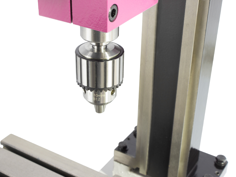 Il mandrino, montato su cuscinetti a rulli conici di elevata precisione, è azionato da un motore Brushless monofase da 250 W: l'assenza di spazzole riduce notevolmente gli oneri legati alla manutenzione, rendendo questa categoria di motori particolarmente affidabile e di largo impiego nel mondo delle macchine utensili. Tramite un semplice selettore collocato sulla testa a fresare, sarà possibile scegliere il verso di rotazione del mandrino (orario/antiorario).