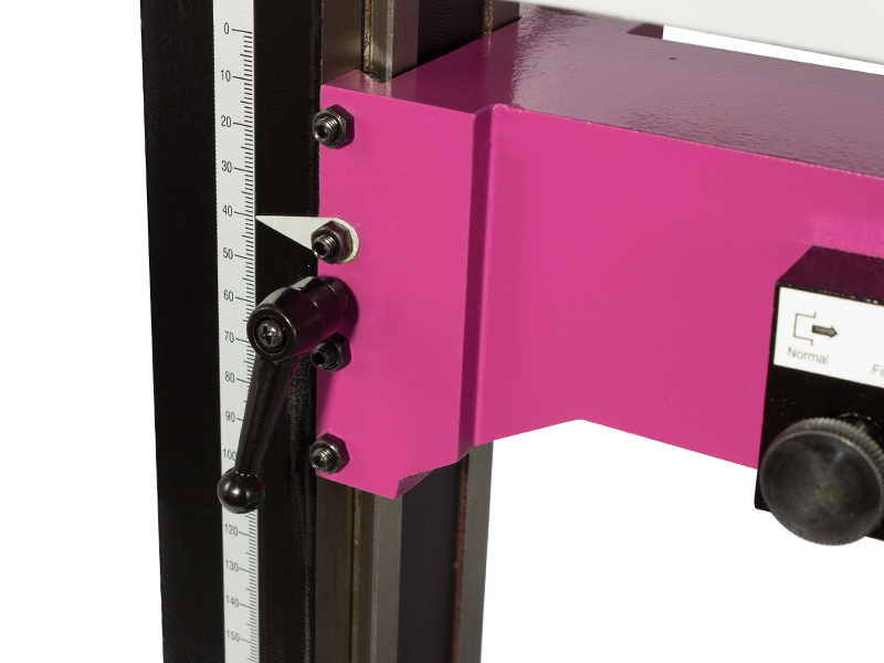 La testa della macchina consente una regolazione in continuo della velocità di tipo meccanico, un sistema robusto ed affidabile studiato per facilitare il passaggio dai bassi regimi di rotazione agli alti, leggibili su apposito schermo LCD. La testa è sorretta da un montante in ghisa fusa in blocco integrale rivestito con uno strato di vernice bicomponente, per garantire una corretta stabilità nelle varie condizioni di utilizzo.