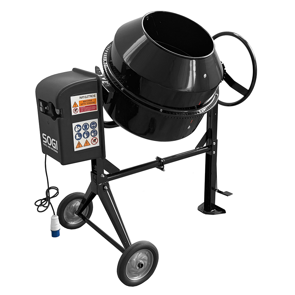 Betoniera elettrica a bicchiere SOGI BEM-200 - capacit 200 L - motore 900 W - per calcestruzzo, malta e intonaco - nera