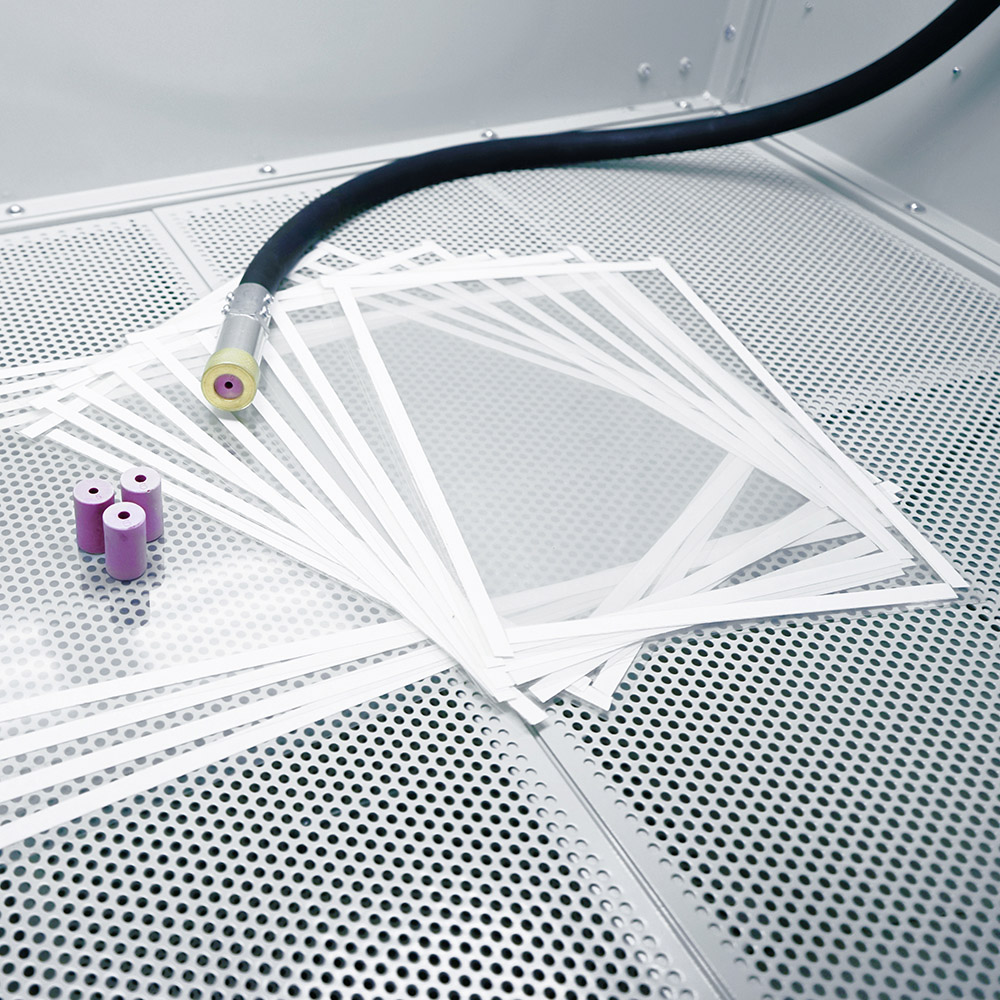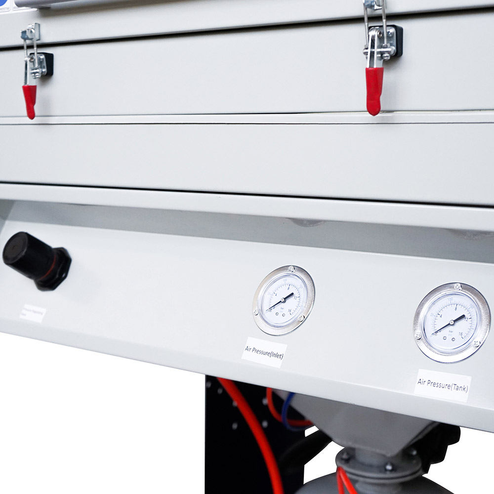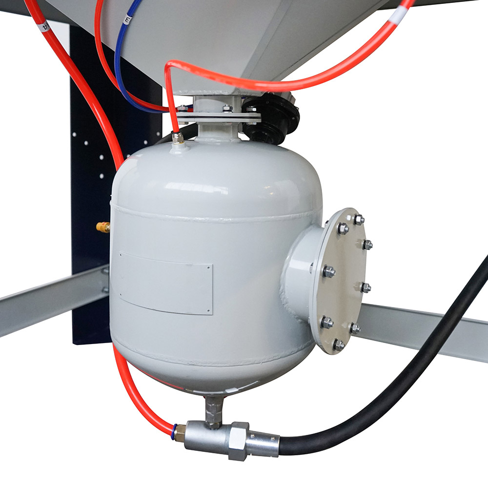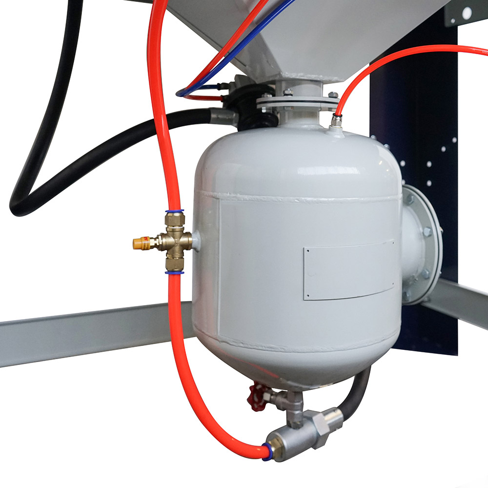 Sabbiatrice dotata di apposito serbatoio aria d'accumulo ideale per ridurre i tempi di sabbiatura ed il consumo d'aria