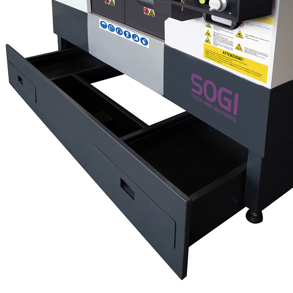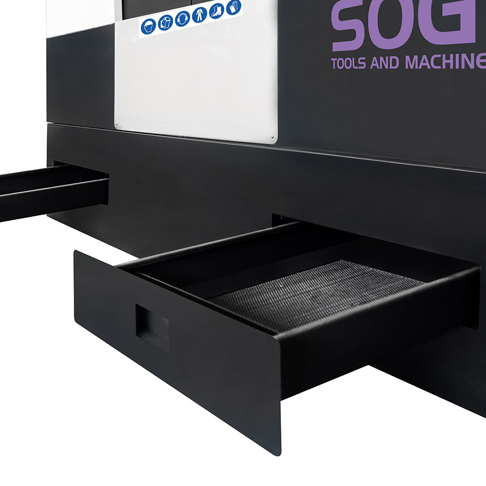 Il centro di lavoro 3 assi SOGI S4-80C è realizzato nel rispetto degli standard vigenti in materia di sicurezza: nello specifico, è completamente carenato con due porte frontali interbloccate e due finestre laterali fisse, realizzate in lamiera e policarbonato di alta qualità. Le dimensioni generose degli schermi protettivi garantiscono operazioni agevolate di carico/scarico pezzo e favoriscono l’ispezione visiva del pezzo in lavorazione.