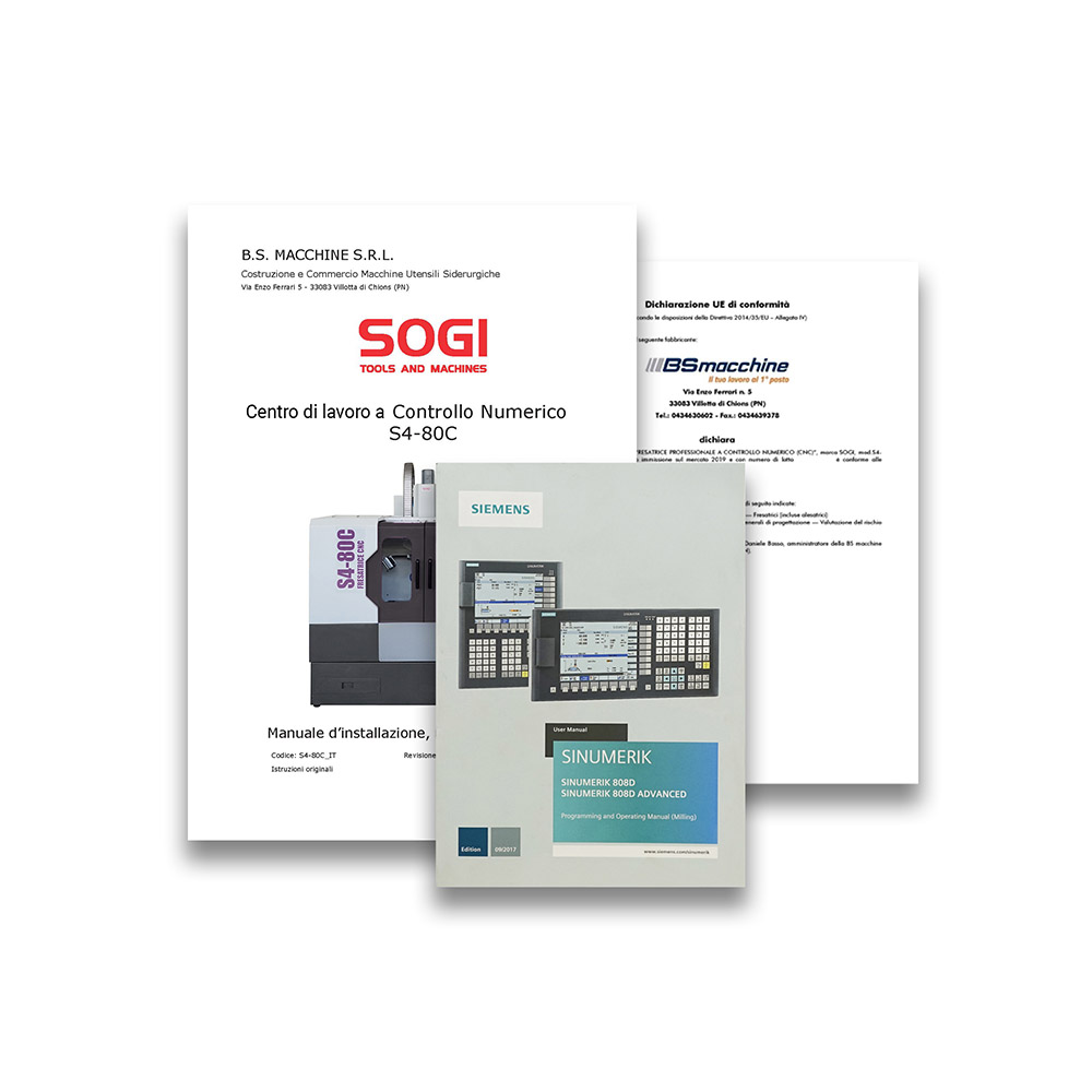A corredo della macchina, sarà fornita tutta la documentazione necessaria (manuale d'installazione, uso e manutenzione, manuali di programmazione e dichiarazione di conformità CE-UE). Scarica la nostra scheda prodotto in formato .pdf per maggiori informazioni!